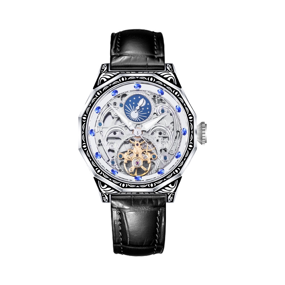 本篇笔记关联了VRQ 雕刻镂空陀飞轮月相全自动机械男表 黑壳蓝钻黑皮等商品,为用户提供真实的使用体验和购买参考。