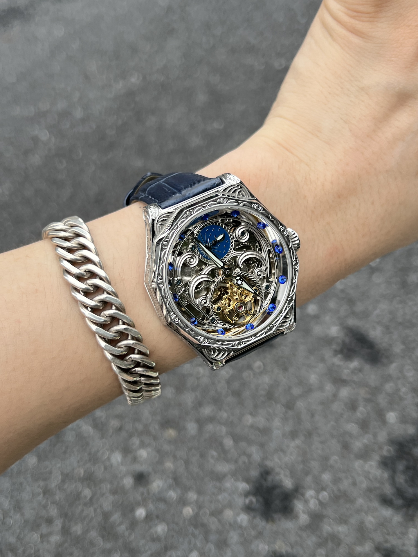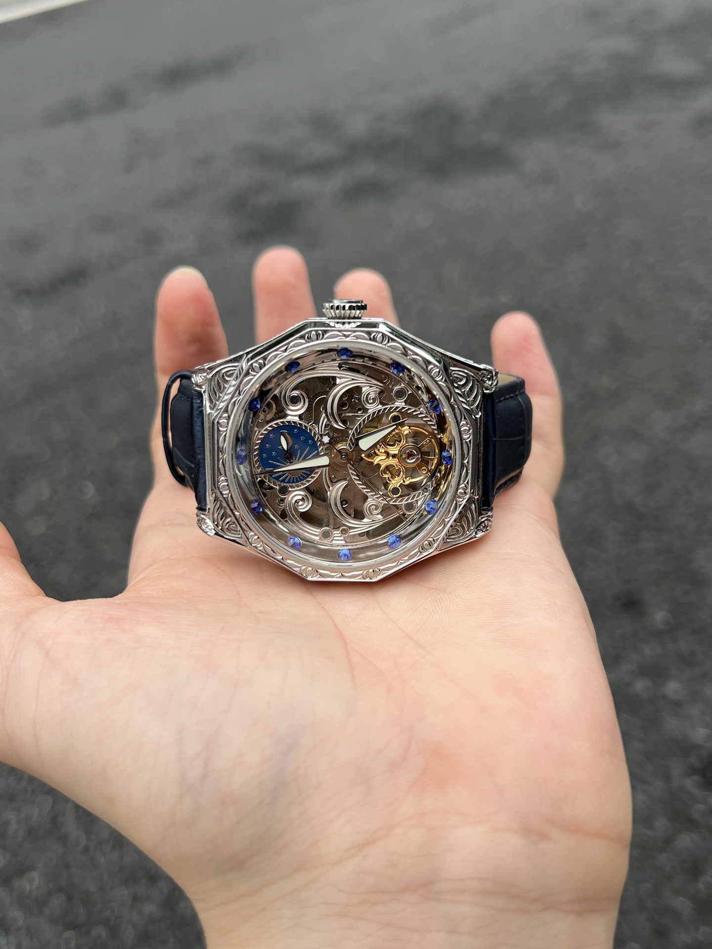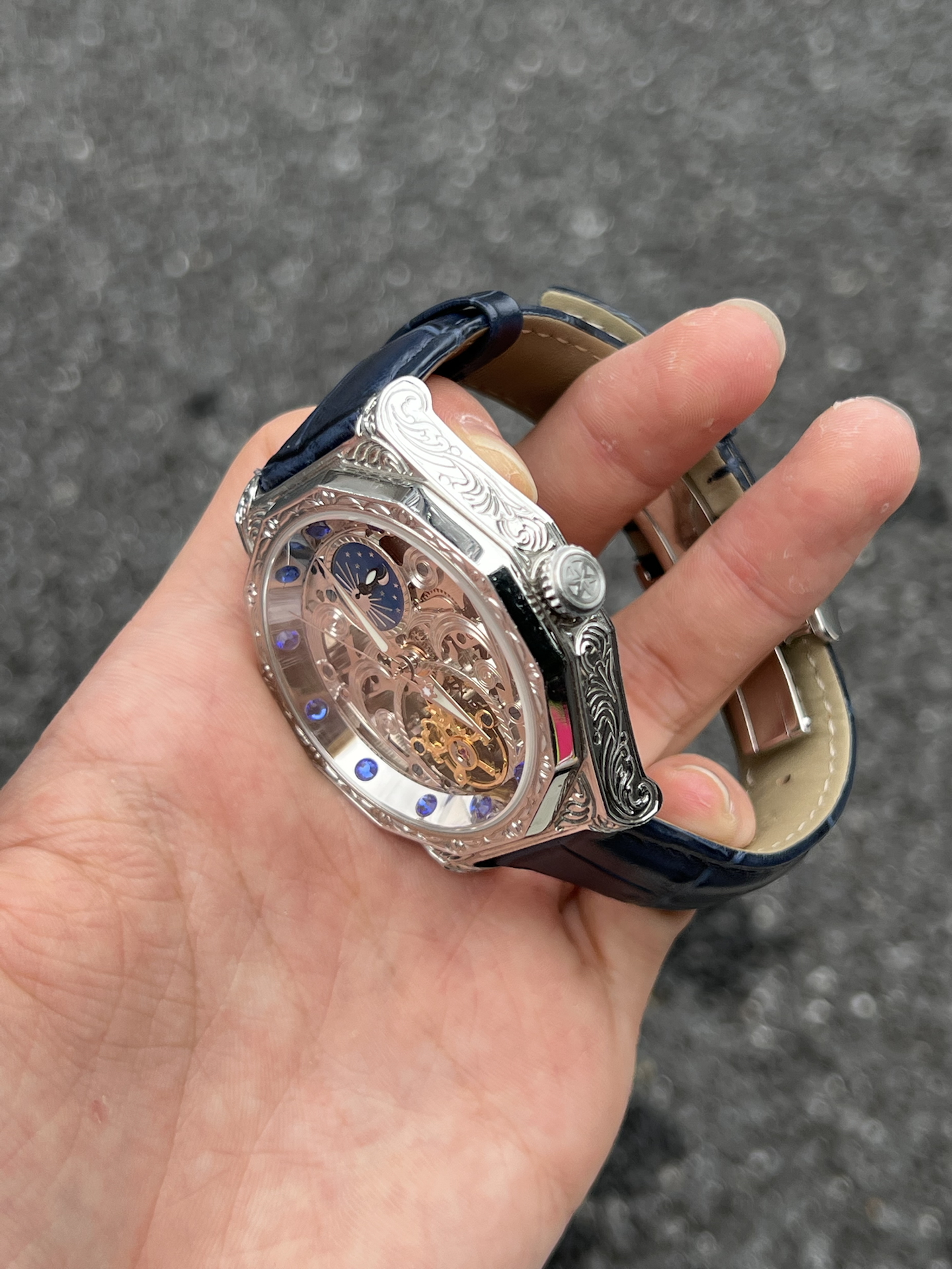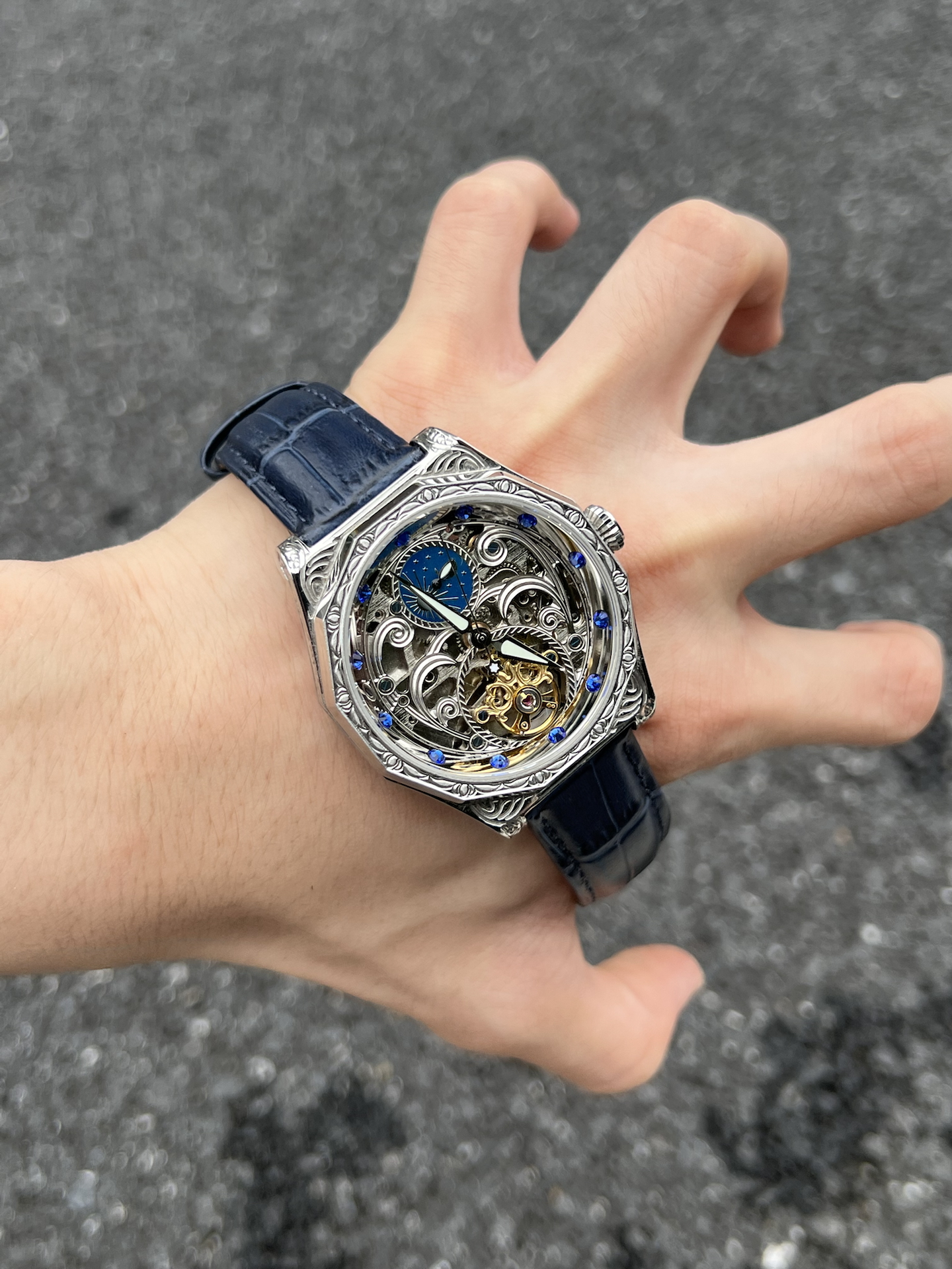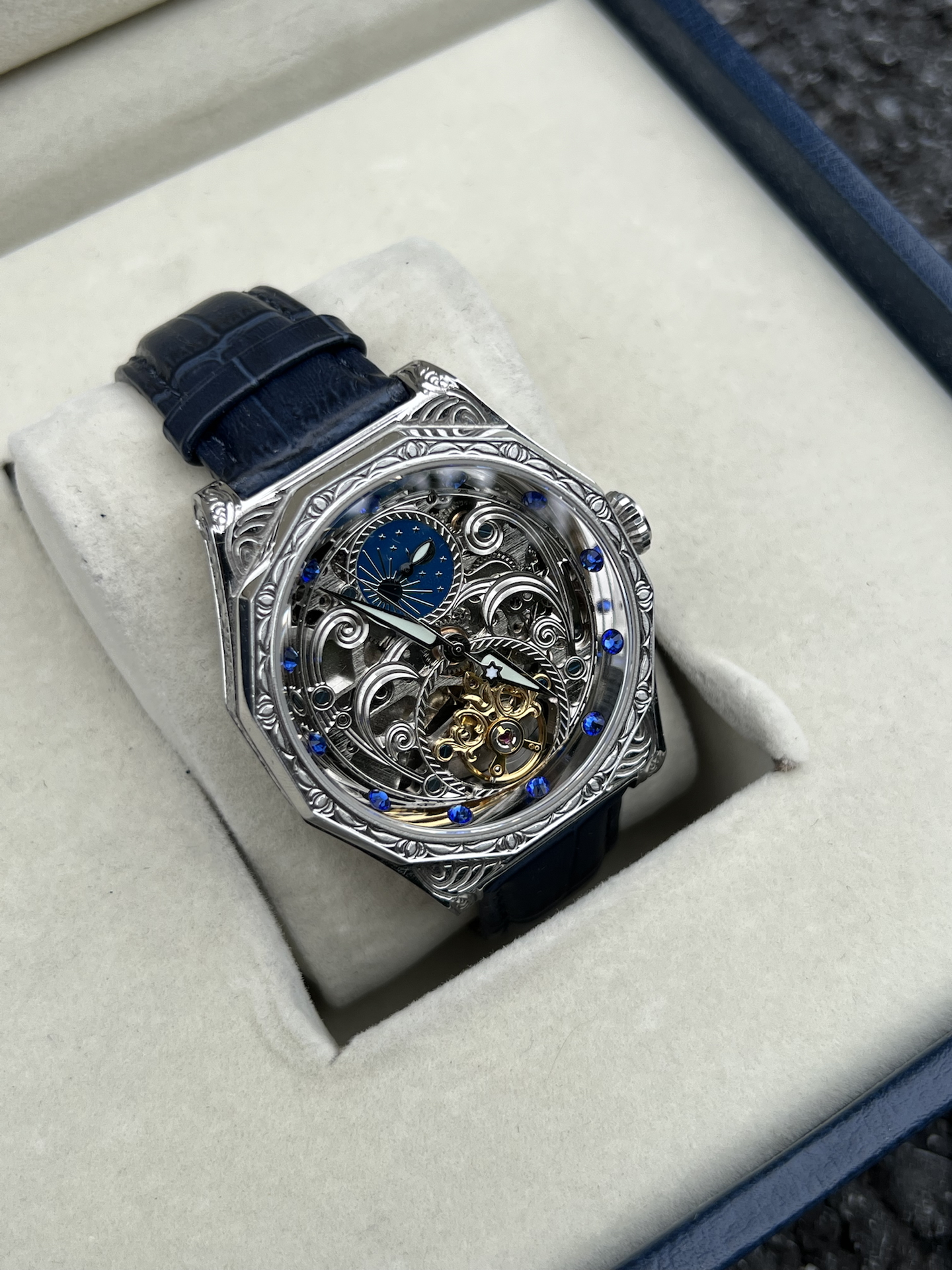 到手被这表惊喜到,镂空设计能看清机芯,蓝调装饰很特别。戴了段时间,走时稳定,皮质表带也舒服。日常搭配挺加分,朋友看到都问在哪入的,分享欲拉满 #晒晒晒高级感机械手表 #手动机械机芯 #机械表收藏家必入 #轻奢机械表入门 #分享高级感宝藏腕表