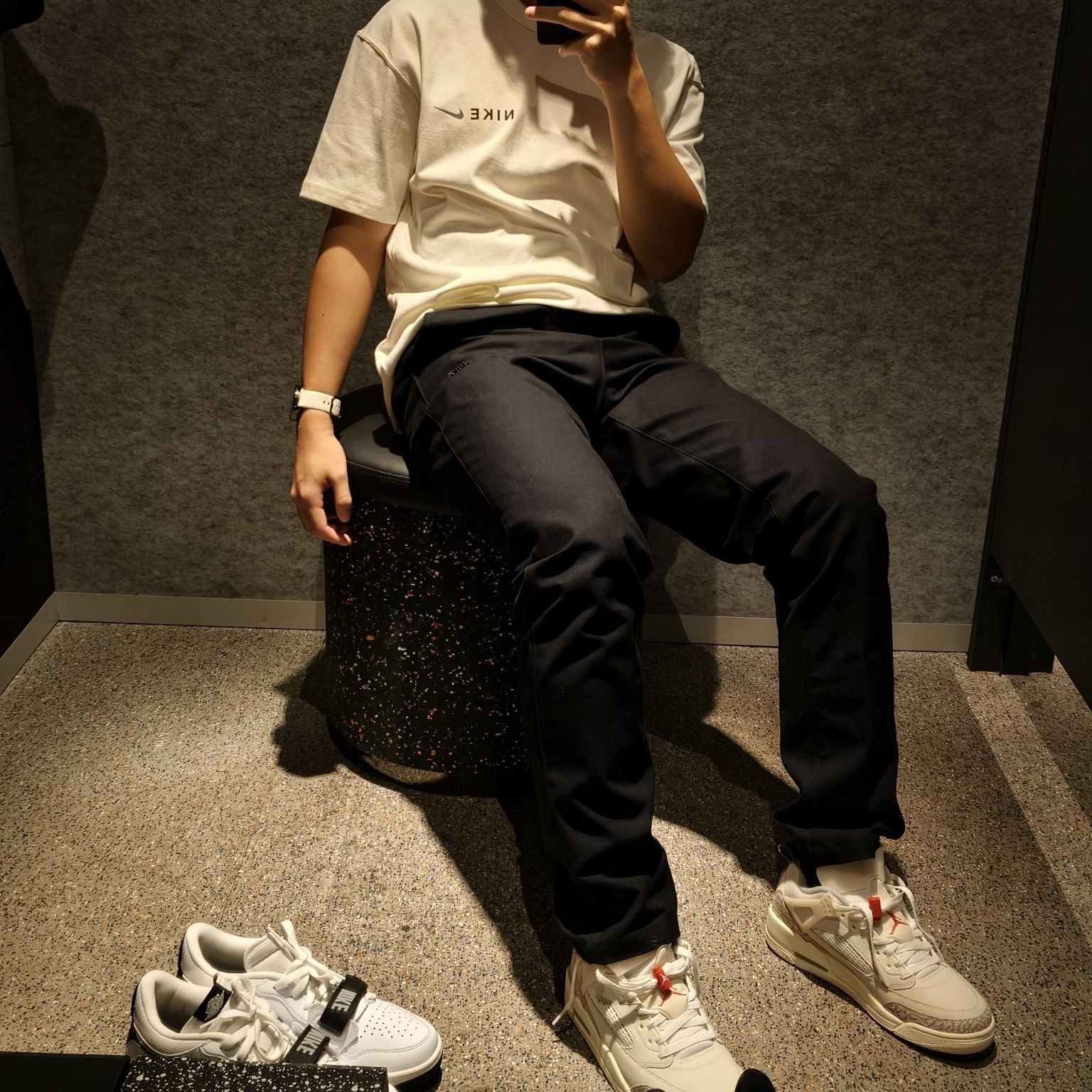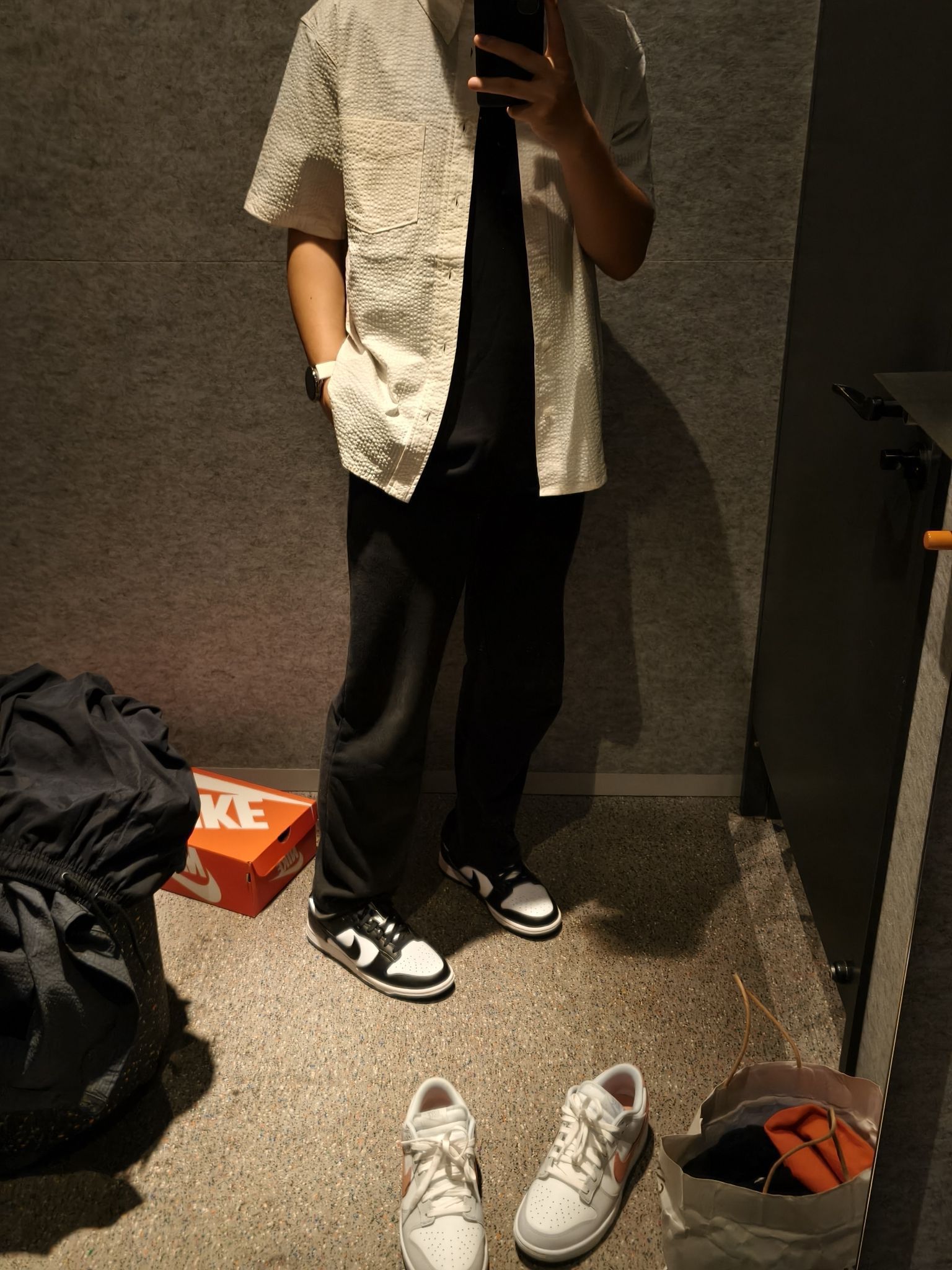 😲其实这帅哥的穿搭都是有迹可循的 夏天整点简约感 显瘦显高身上穿😎 细看裤子褶皱纹理 远看长腿神器 鞋子logo点缀彰显气质 黑白轮替永不腻 入秋运动必不可少的 上衣清爽透气nike跑步训练衣服 出汗不粘 飒飒飒 裤子松弛轻 跑起步来真的轻 运动鞋网孔设计让你不闷脚