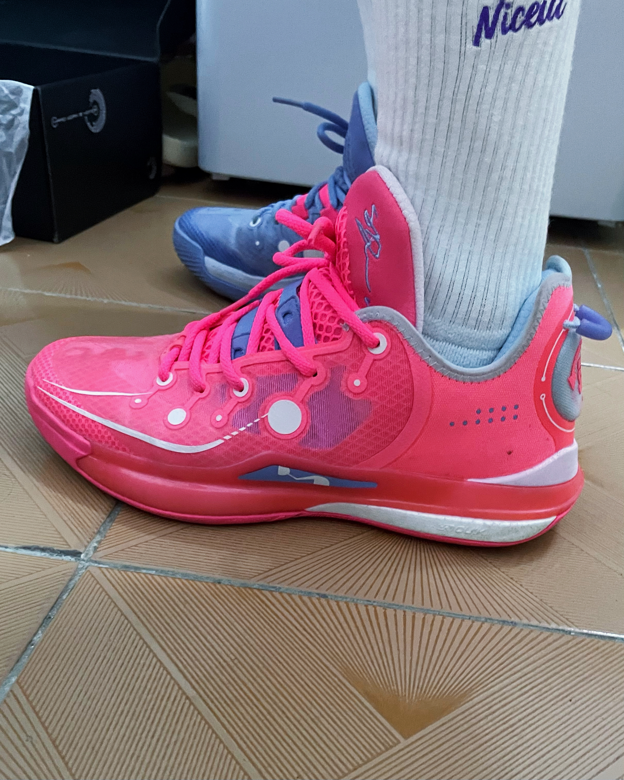对于我来说,对比过了很多球鞋,锋芒一代或者全城系列 利刃系列的球鞋,那些鞋子对宽脚党来说很不友好,打完球下来卡这旁边脚趾超级痛,但是DVD2,完全帮我解决了这个人焦虑,并且颜值也深得我心,并且还是2字开头,真的是为数不多的平价好鞋。