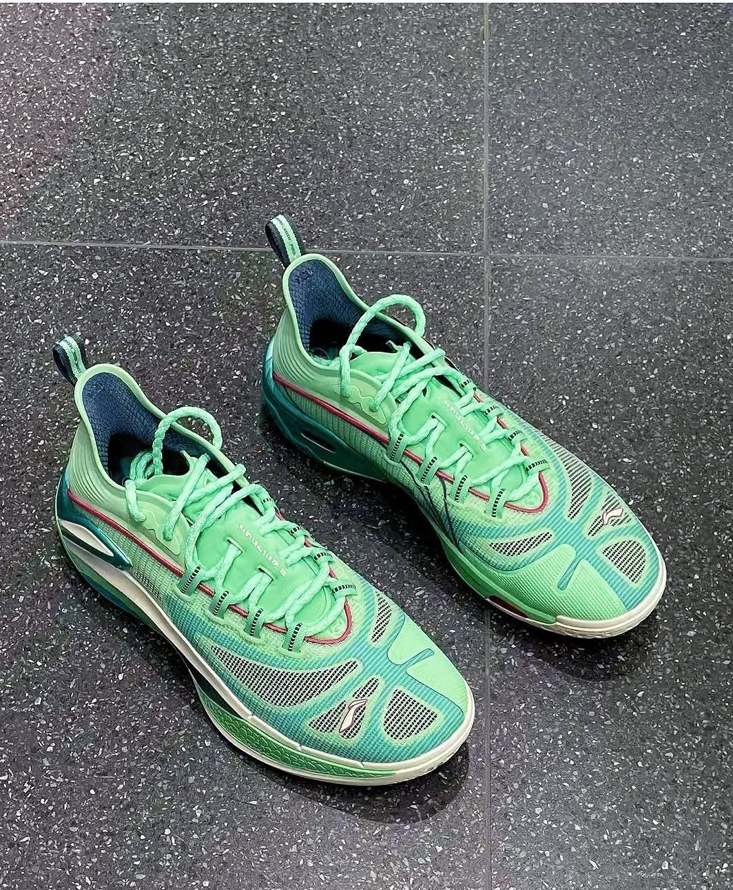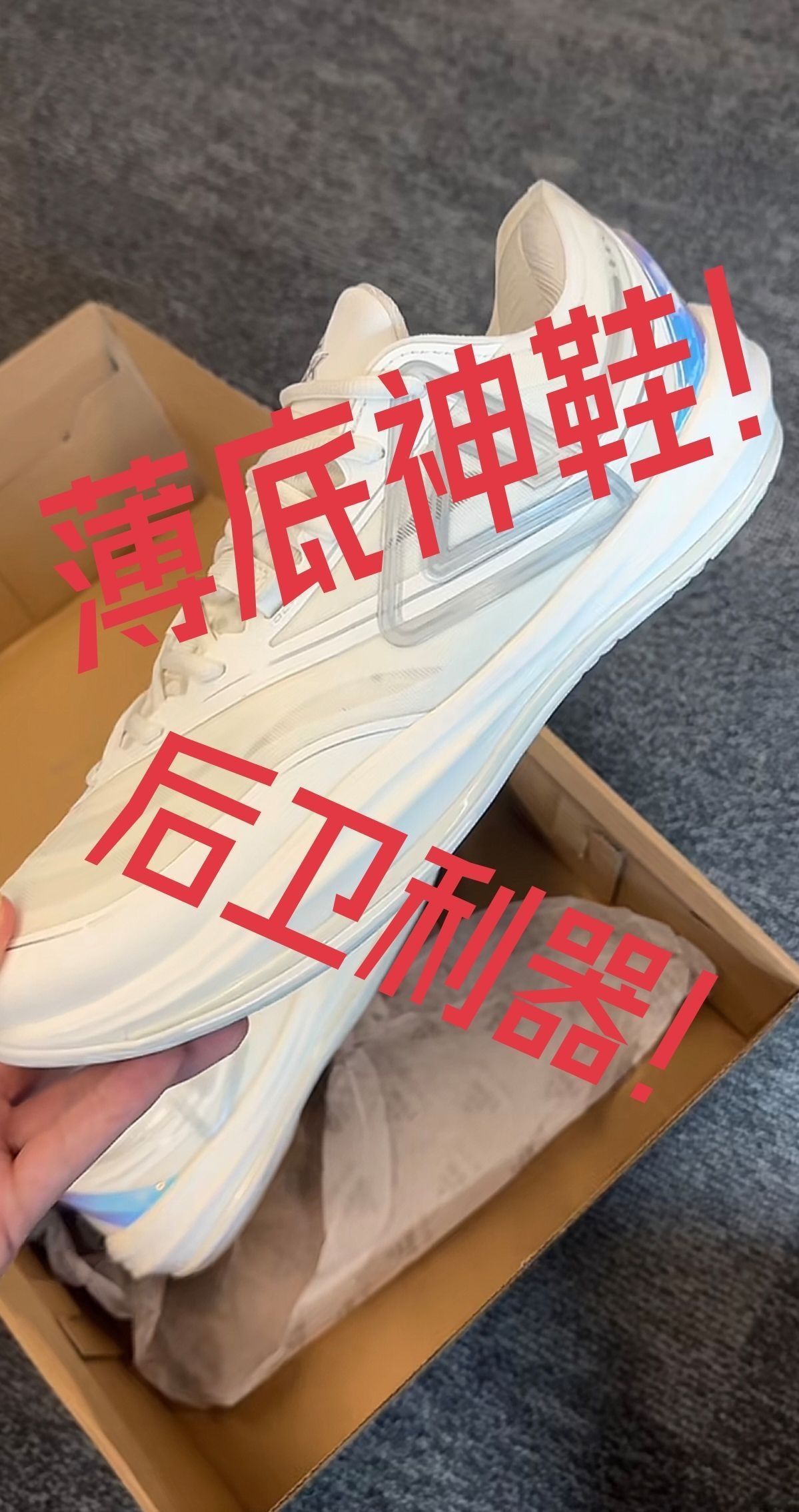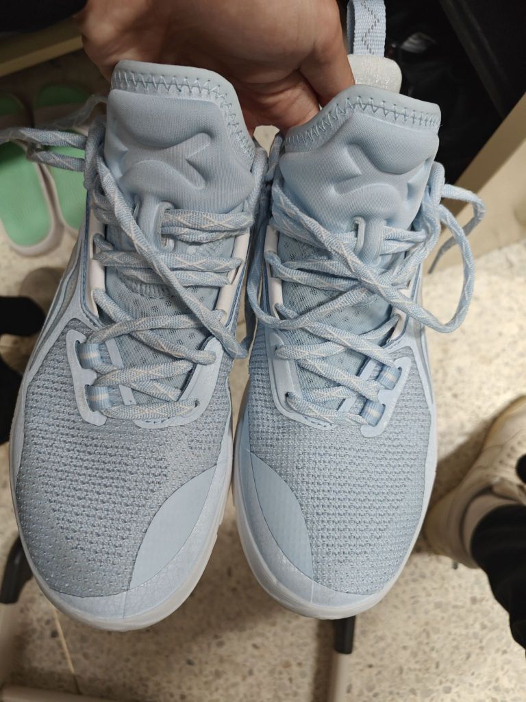 这双鞋是我打球时的“老搭档”了。第一次上脚就觉得贴合感特别好,编织鞋面软乎乎的,跑跳的时候脚被裹得很稳,不会晃。鞋底的反馈也很利落,急停或者变向时,能明显感觉到脚下的支撑力,打完半场球脚也不觉得累。 平时偶尔穿它出街也不违和,灰白的纹理自带一种低调的质感,配运动裤或者休闲裤都挺搭。虽然已经穿了小半年,但鞋面没怎么变形,鞋底的纹路也还很清晰,属于是“实战舒服、日常好搭”的全能款。