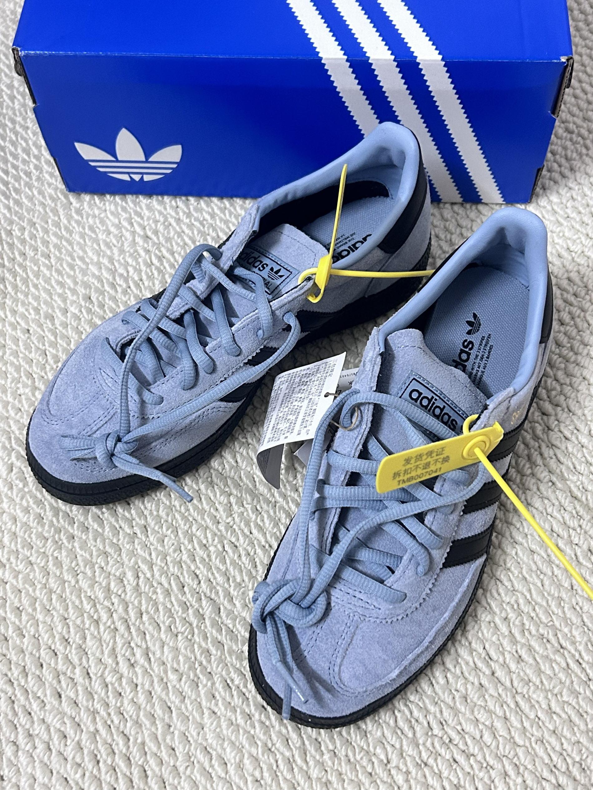 本篇笔记关联了【王安宇同款】 adidas Originals Handball Spezial 薄底鞋 T头鞋 德训鞋 板鞋 简约百搭复古轻便防滑耐磨 质感蓝/黑色/金色等商品,为用户提供真实的使用体验和购买参考。