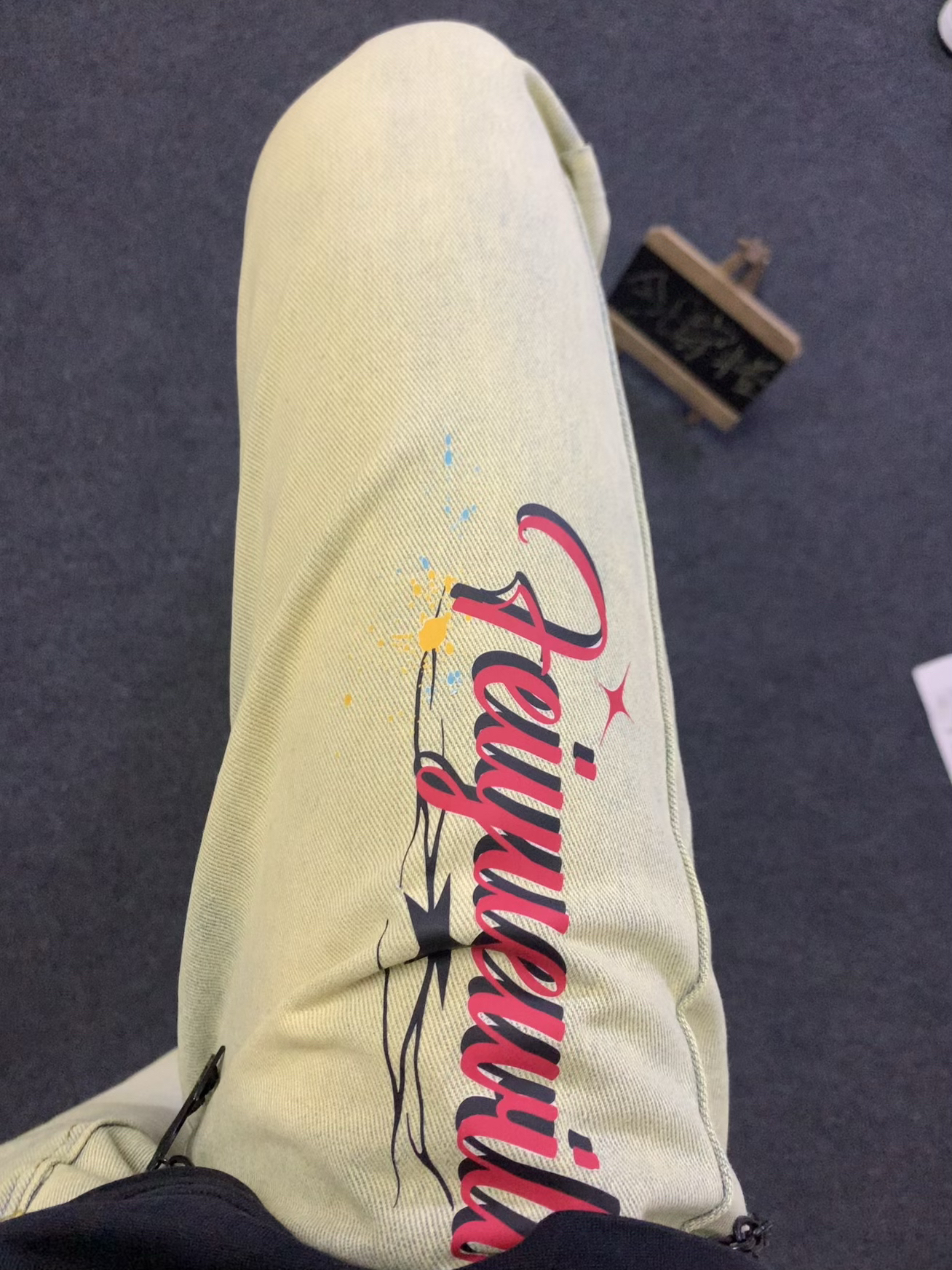我觉得还好呀,符合秋天的感觉 让人眼前一亮的颜色 可能比较小众吧哈哈 不过还是很有高街感的 微喇的版型配上这个美式印花 显瘦还有个性 实在符合我了嘻嘻 日常出门再搭配上一双板鞋 ootd穿搭不就来了~