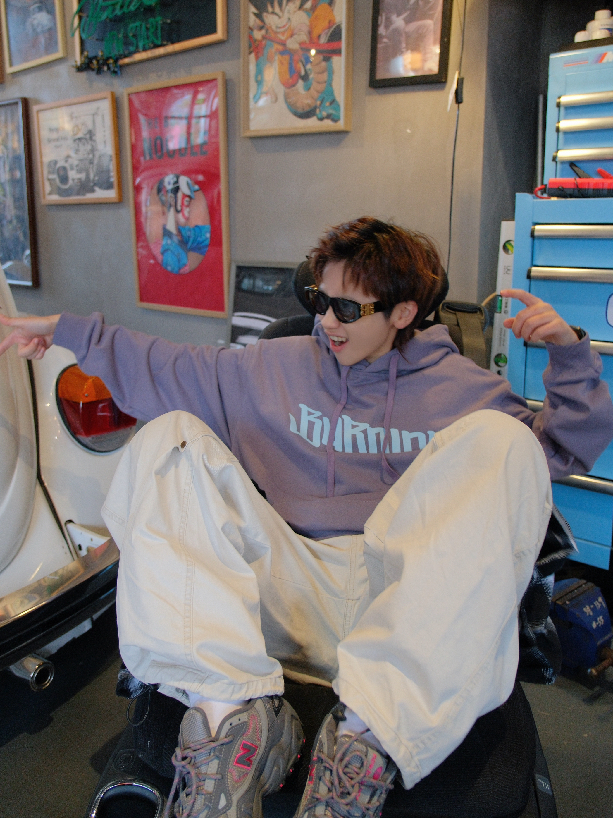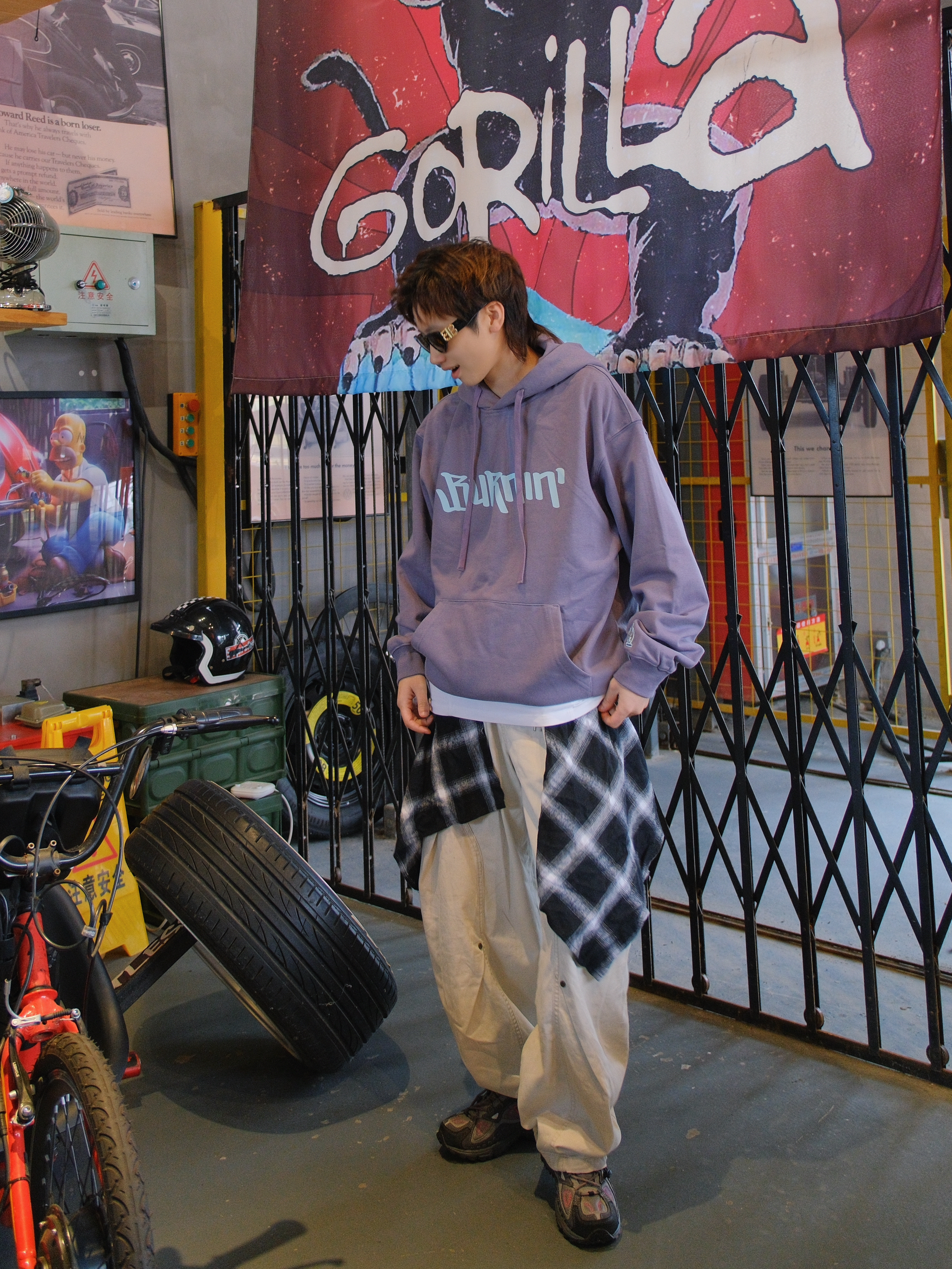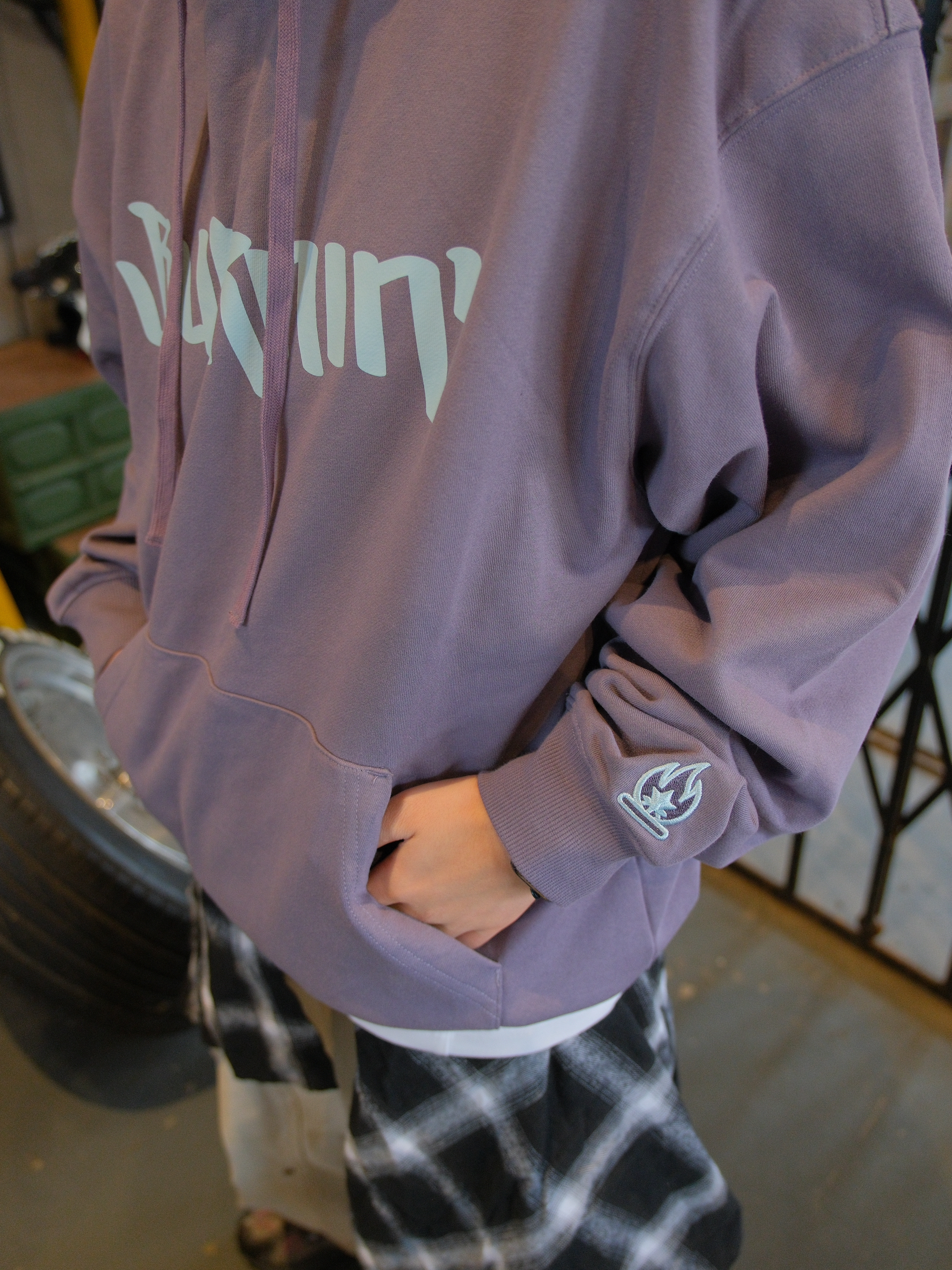 又到了穿卫衣的季节 今日份浅紫色系穿搭来了哦 带一点灰调,上身不张扬 蓝色的字母logo和袖口火苗标就很有个性 带薄绒刚好最近降温拿出来,单穿也保暖 下面搭配米色工装裤 和同色系的灰紫色运动鞋 这一身少年感穿搭紫定行 尺码参考:163cm/46kg 上身S码
