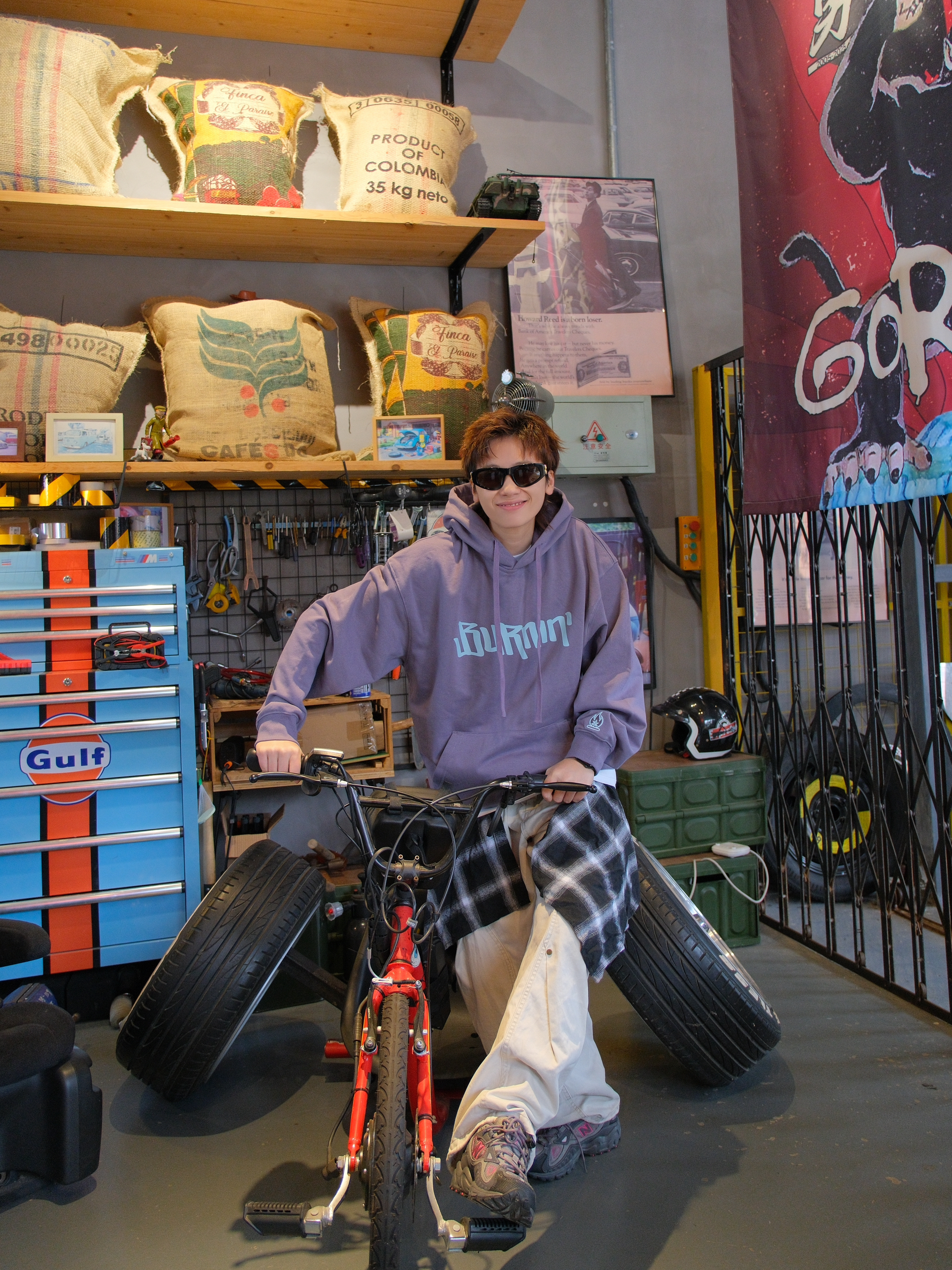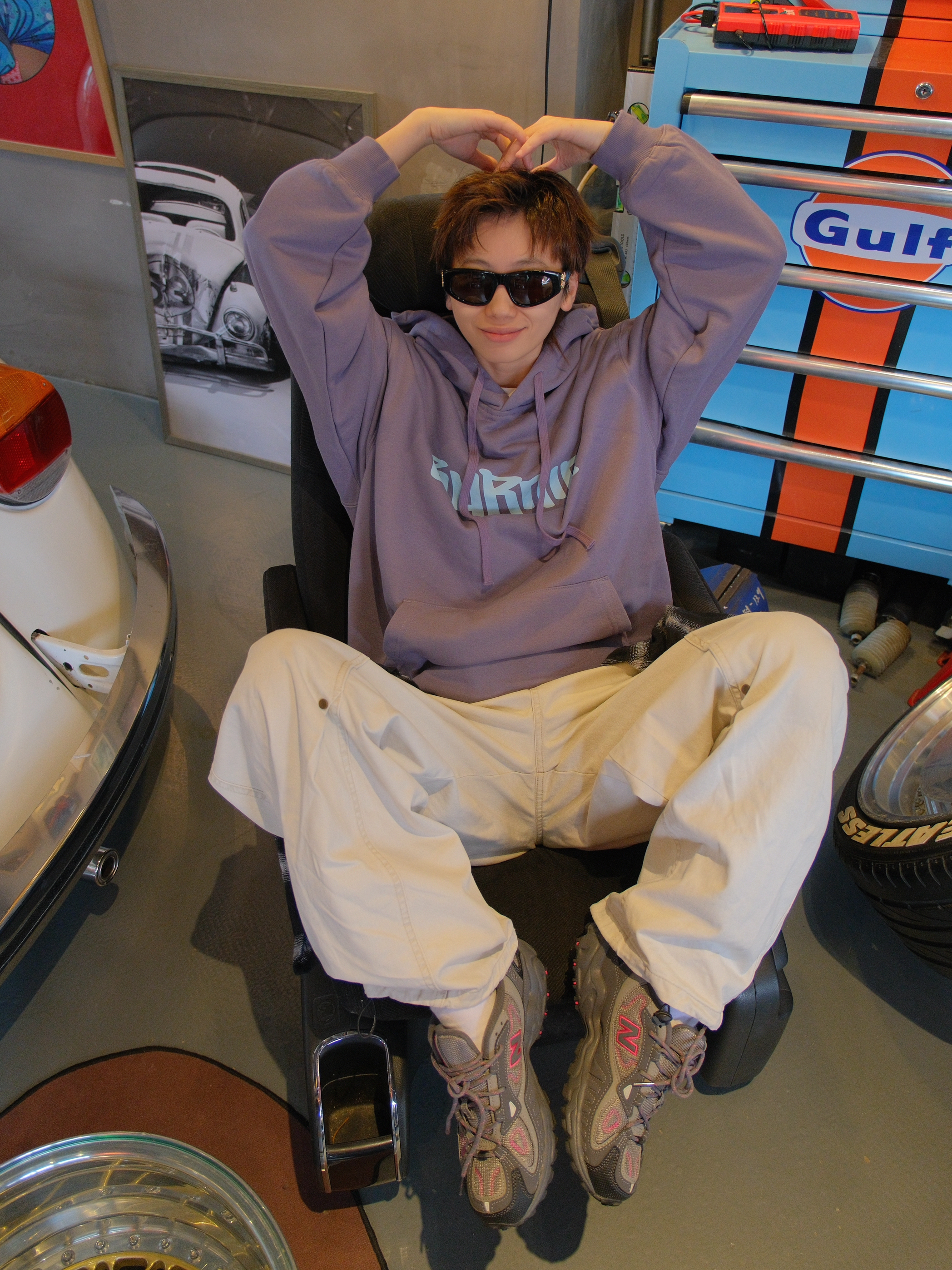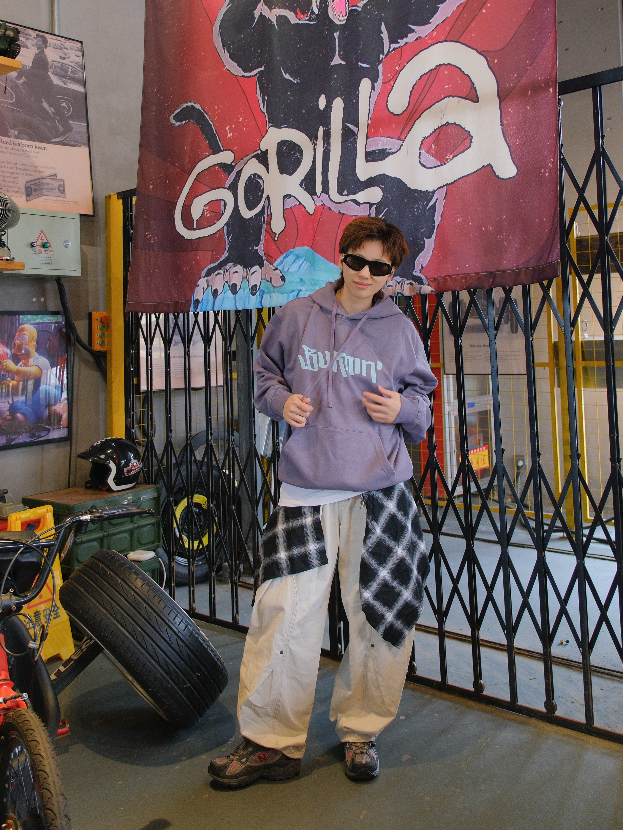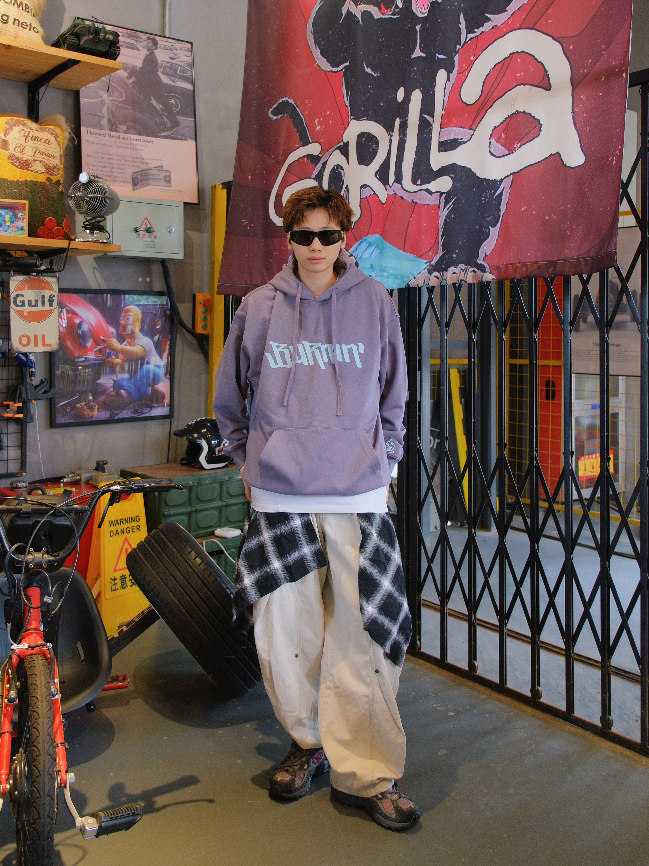 又到了穿卫衣的季节 今日份浅紫色系穿搭来了哦 带一点灰调,上身不张扬 蓝色的字母logo和袖口火苗标就很有个性 带薄绒刚好最近降温拿出来,单穿也保暖 下面搭配米色工装裤 和同色系的灰紫色运动鞋 这一身少年感穿搭紫定行 尺码参考:163cm/46kg 上身S码