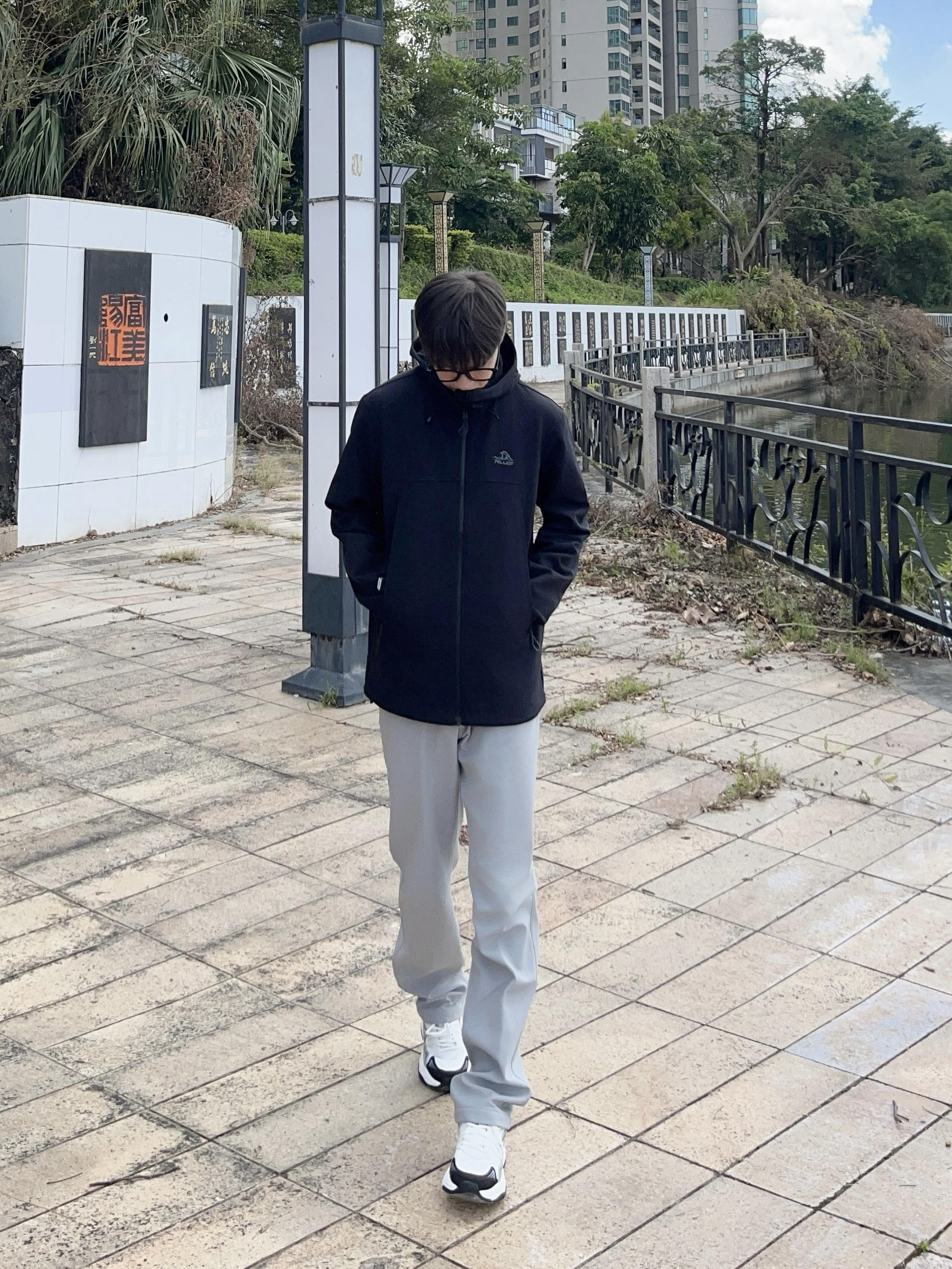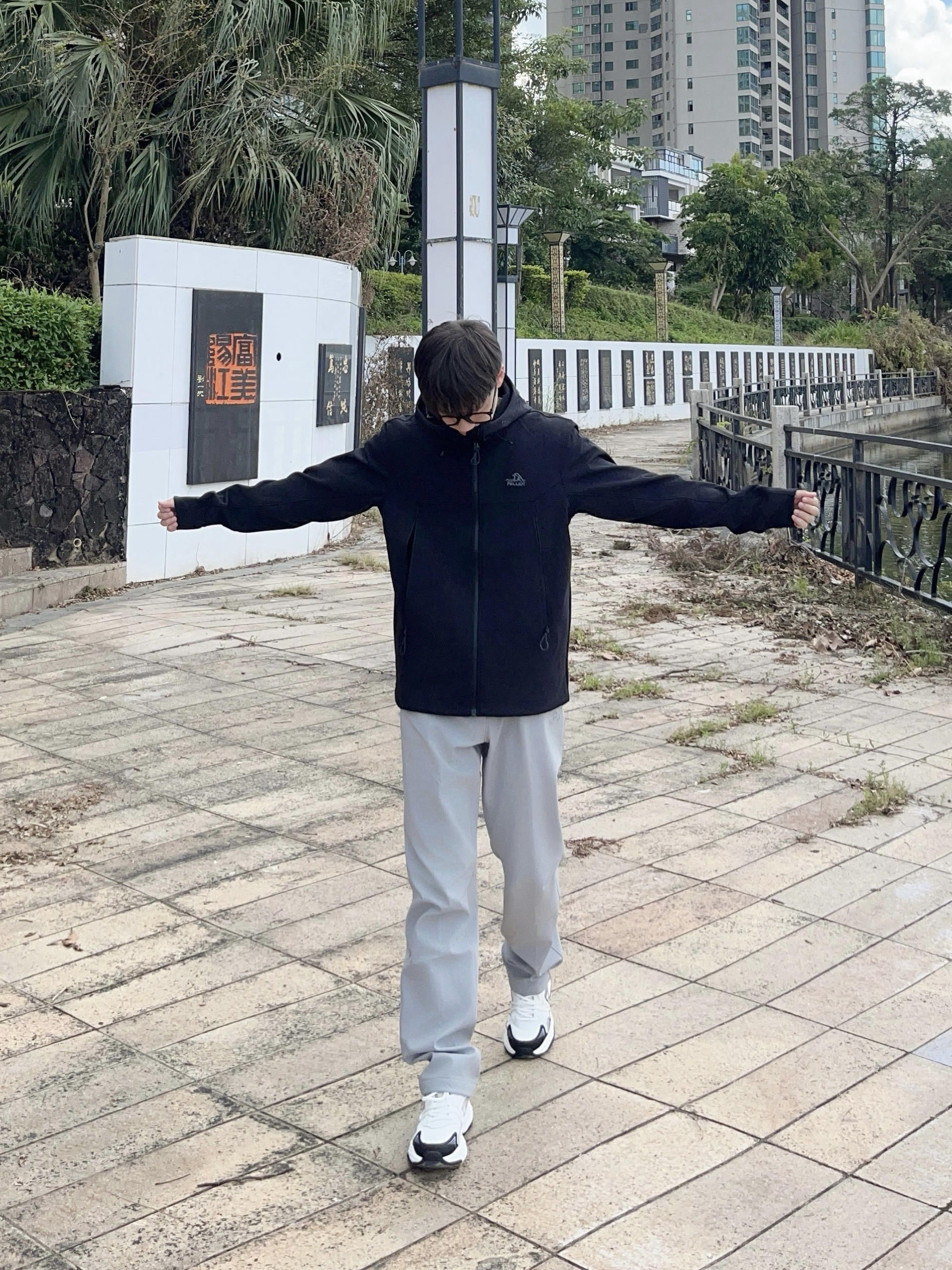 今天是户外山系风出街👀 - 衣服是 PELLIOT 风盾漫幕黑软壳衣👔 软壳设计质感满满 上身版型宽松又舒适 / 再搭配一条 PELLIOT 烟灰色休闲裤👖 防风耐磨面料舒适透气 还有防泼水效果💦 - 一套搭配下来 初秋户外出行休闲又百搭🔥