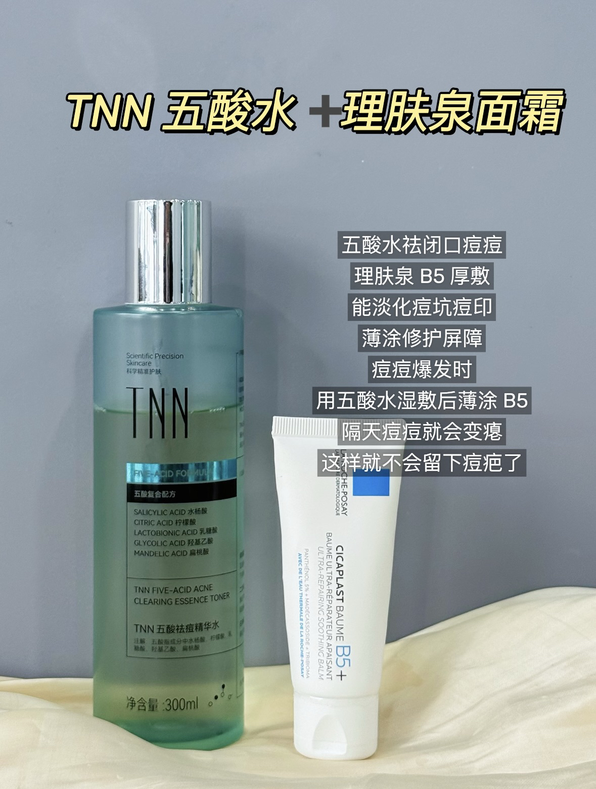 一、万能打底核心:TNN五酸水 • 质地特点:透明绿瓶清爽水状,含5种酸类复合配方(水杨酸+柠檬酸+乳糖酸+羟基乙酸+扁桃酸),精准覆盖控油、疏通毛孔、淡化痘印。 • 隐藏技巧: ◦ 日常擦拭:化妆棉逆毛孔方向轻擦T区,减少黑头闭口生成。 ◦ 急救湿敷:痘痘红肿时浸湿化妆棉湿敷3分钟(仅耐受皮),隔天痘痘干瘪。 ◦ 妆前控油:白天护肤第一步轻拍全脸,底妆持妆力提升50%! ...
