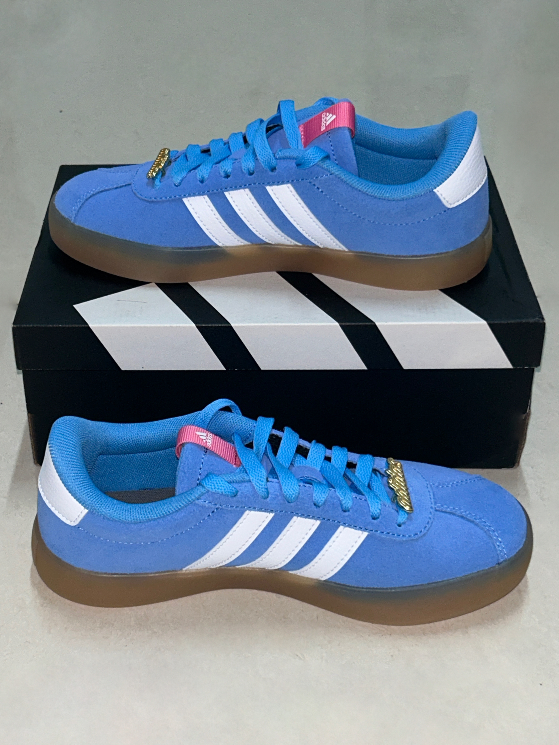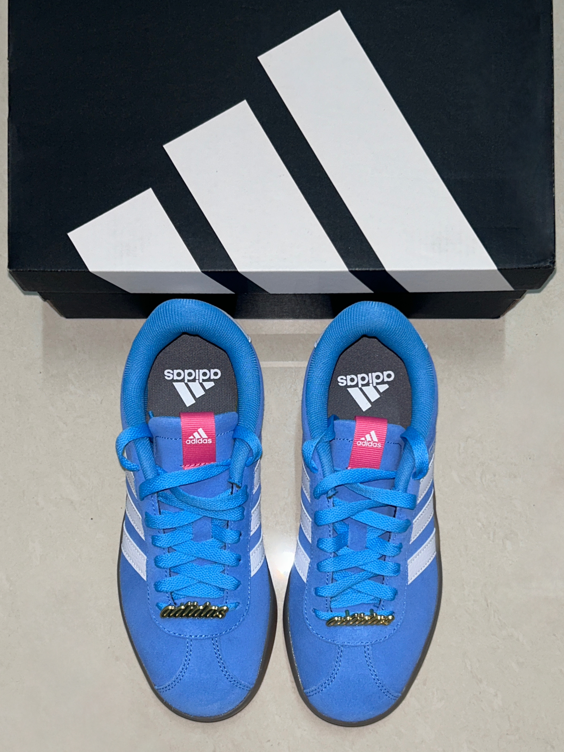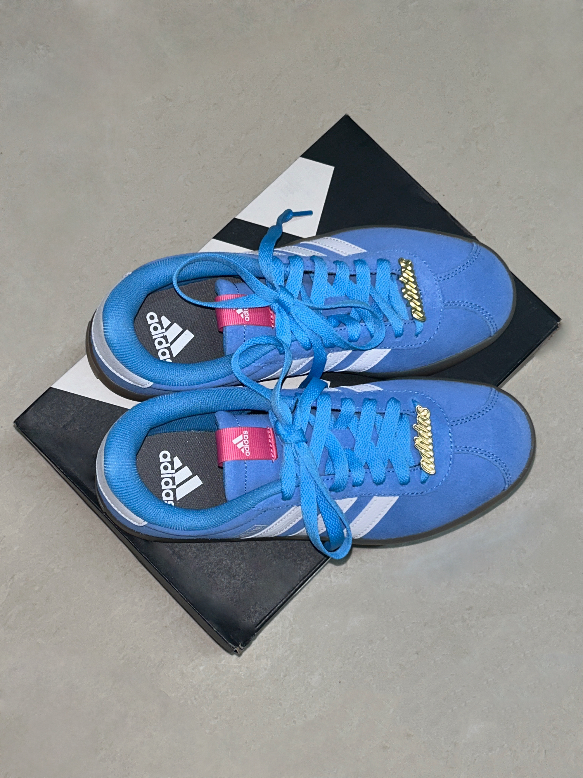 这款阿迪真的是300左右到性价比之王了💥 蓝鞋身➕粉logo➕金属鞋花 撞色设计超哇塞👍小巧思给整个鞋增添设计感✨ 穿在身上超吸睛🎊给全身搭配一个闪光点❕