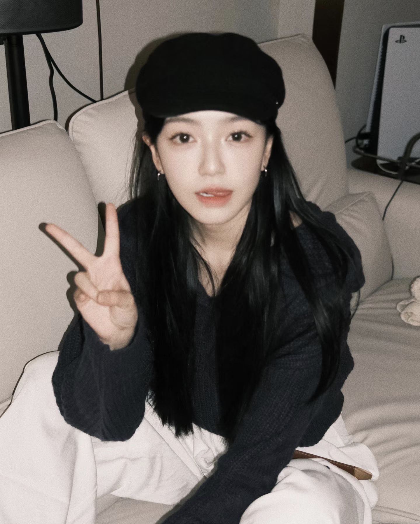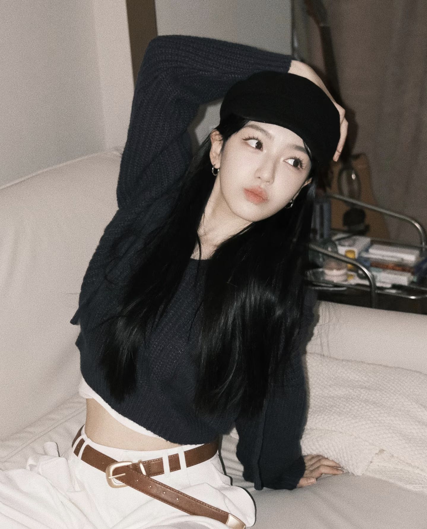 不必费心copy博主的穿搭公式!这身深蓝毛衣+白裤子的配色方案,自带高级滤镜——软糯的坑条毛衣裹住初冬的寒意,贝雷帽斜戴露出肩发丝,皮质腰带悄悄勾勒比例,单手扶耳时镜头感瞬间拉满。谁说随性不能有细节?衣橱里常青单品的搭配灵感,往往就藏在这样「不刻意」的日常里。 💡 种草TIP:毛衣的绒感与贝雷帽的毛呢材质呼应,金属皮带扣成为点睛之笔,浅色背景更能突出服装层次。