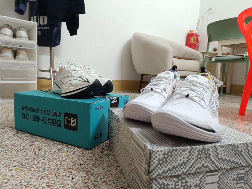 这两双都是在识货上选好买的赤兔八Pro从拼多多下单鞋盒全皱了然后球鞋音速13不错鞋盒外还有一个箱子里面没有出现皱纹和破坏总体来讲不错就是包装还得升级