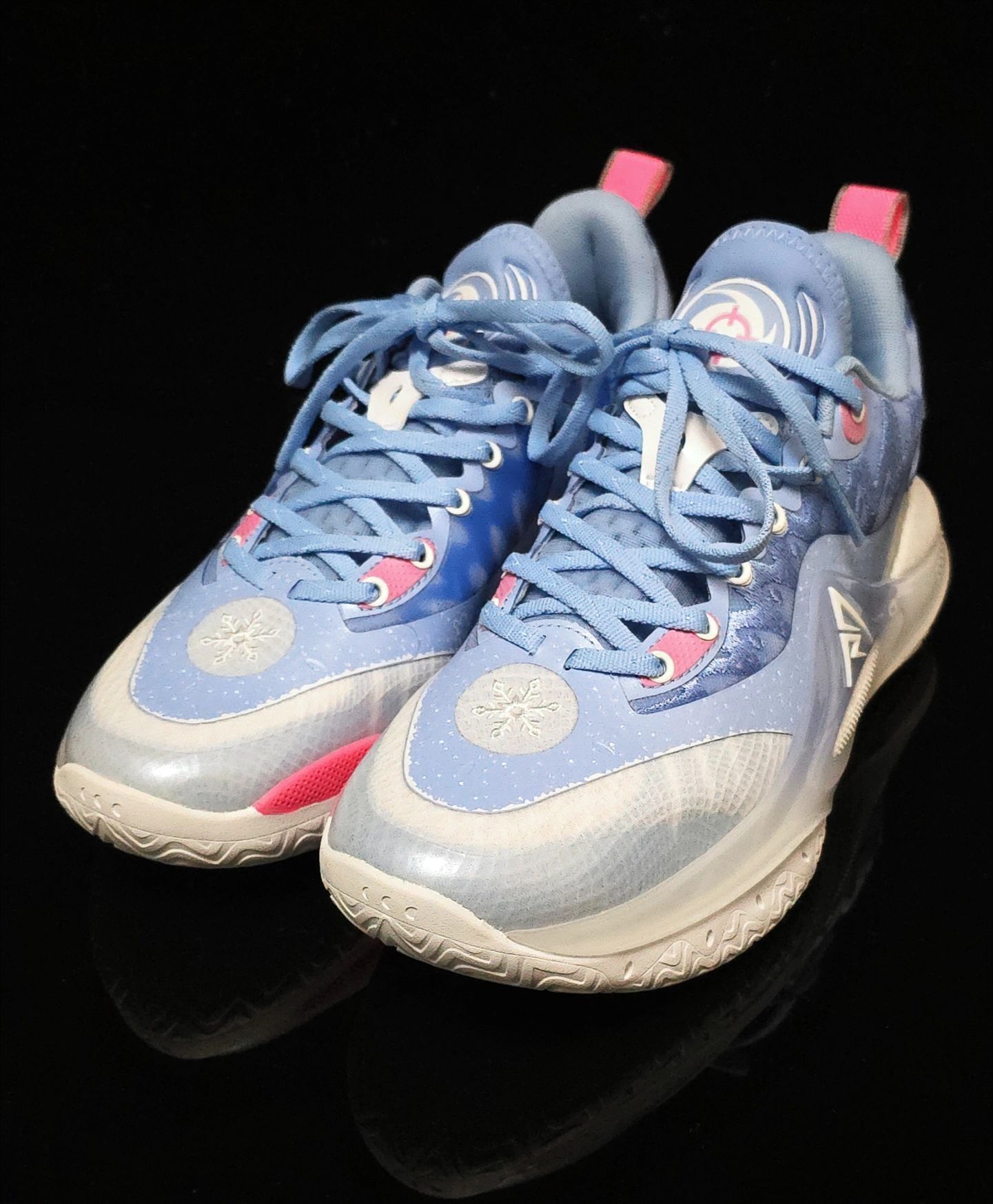 里弗斯AR2雪人~以冬季冰雪为主题,鞋身采用半透明雪花图案装饰,内侧印有雪人形象,外底、鞋眼及鞋跟拉环点缀粉色细节,整个颜值还是很有特点的~ 优点:1是颜值不错,价格实惠,同价位中配置很高~2是各项性能均衡,没有特别明显短板~ 缺点:1场地感不明显,前掌响应不足~2重心偏高,不够灵活~