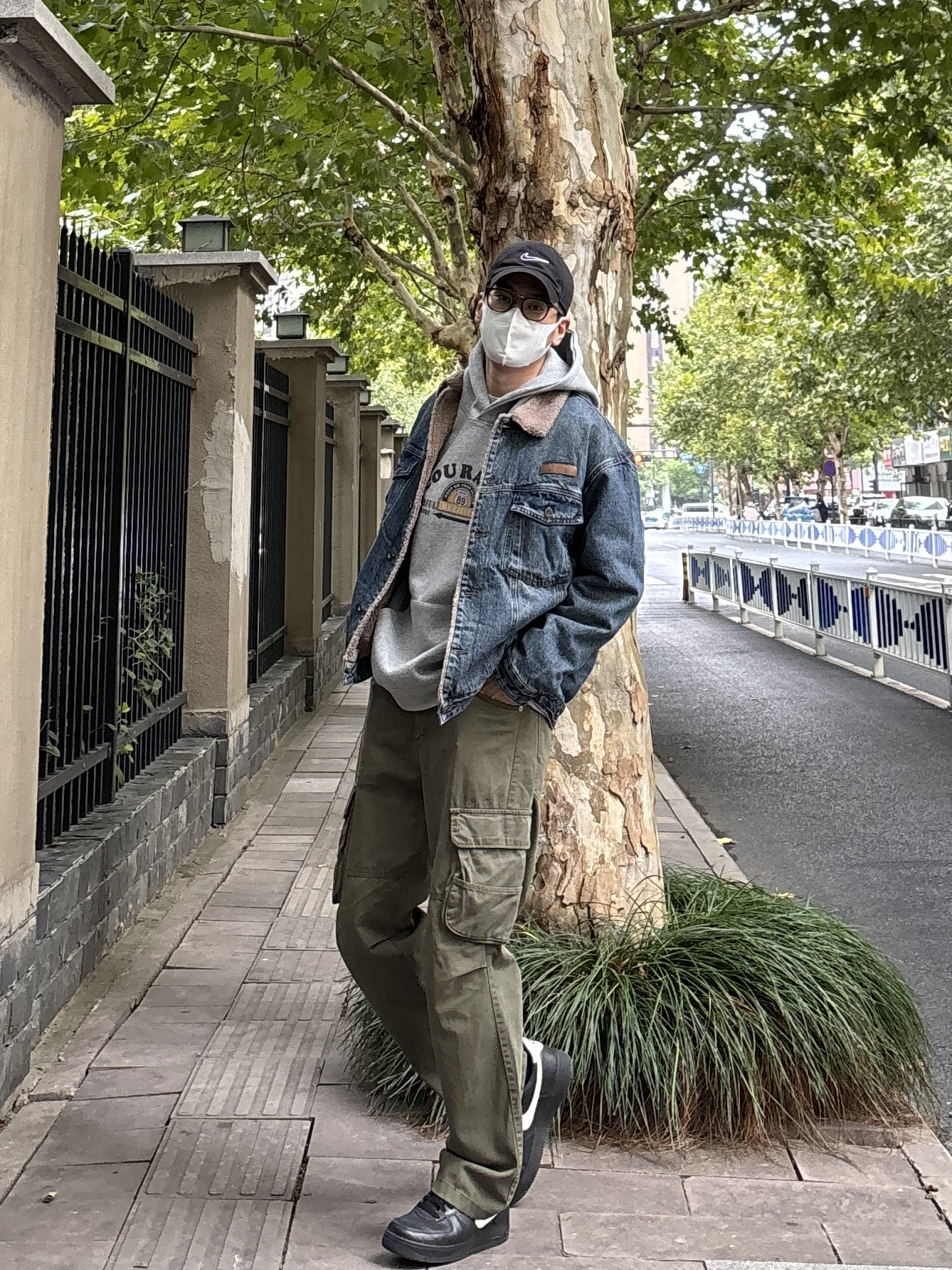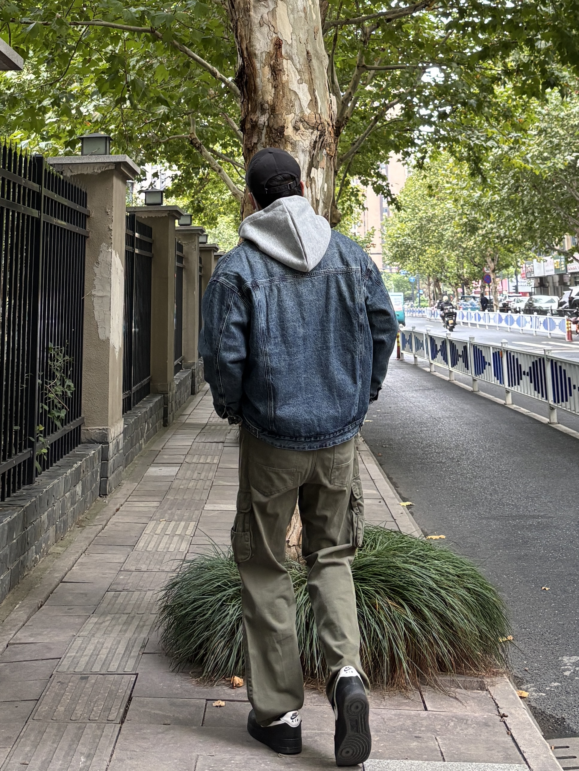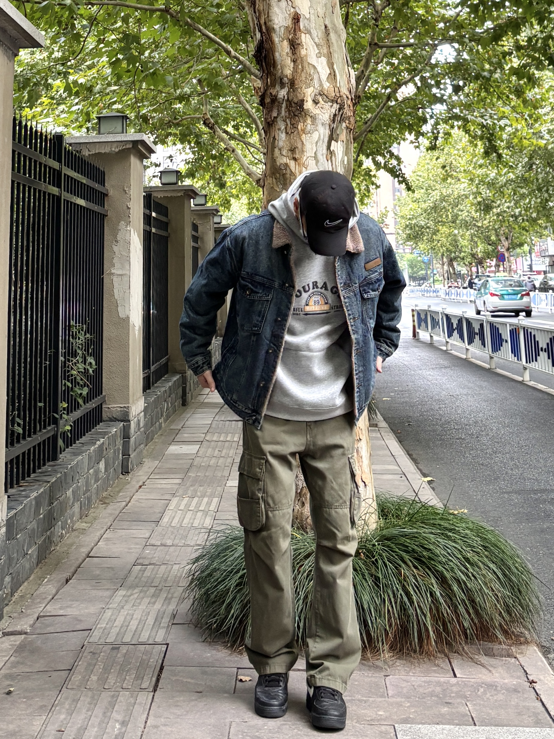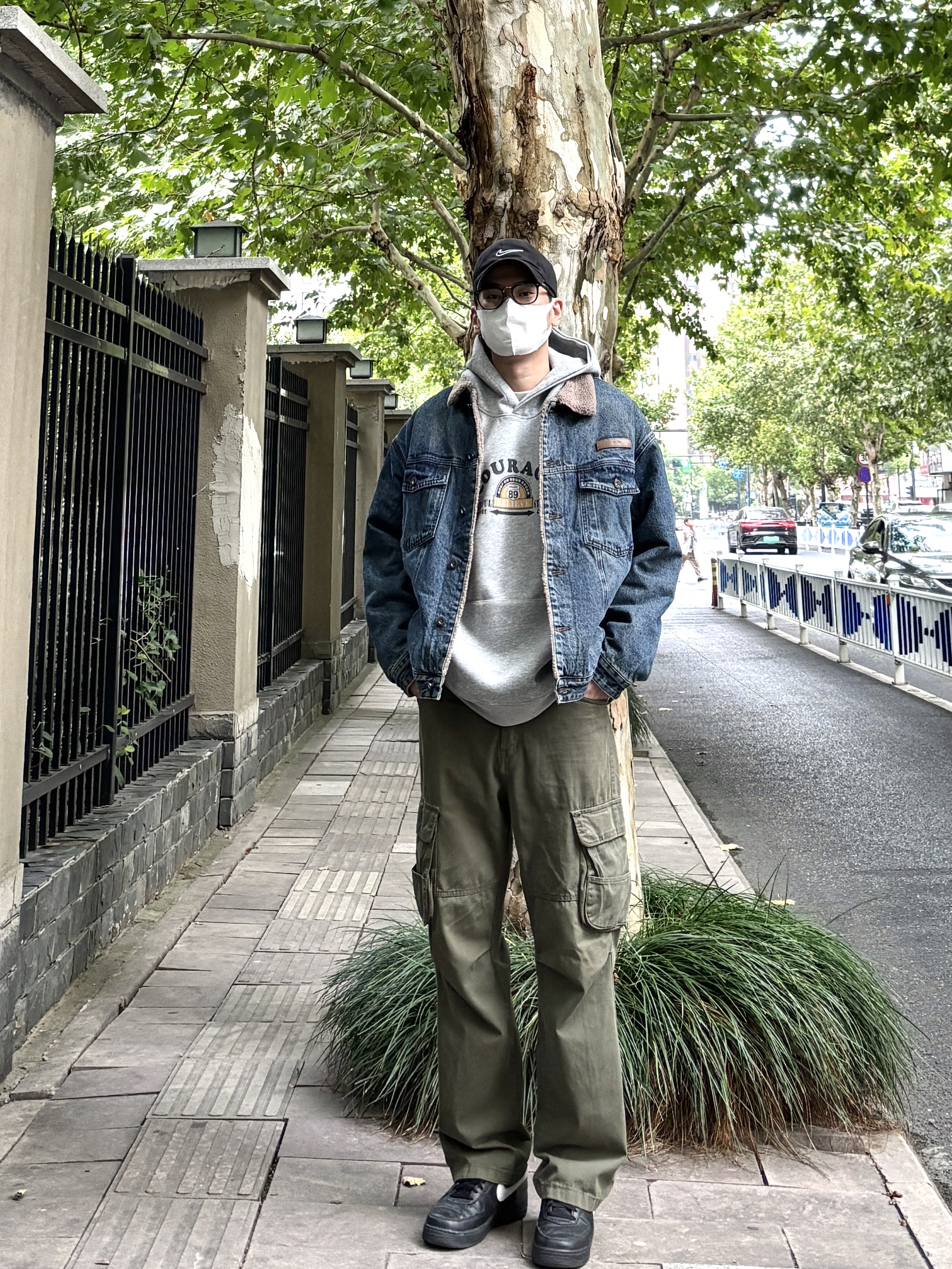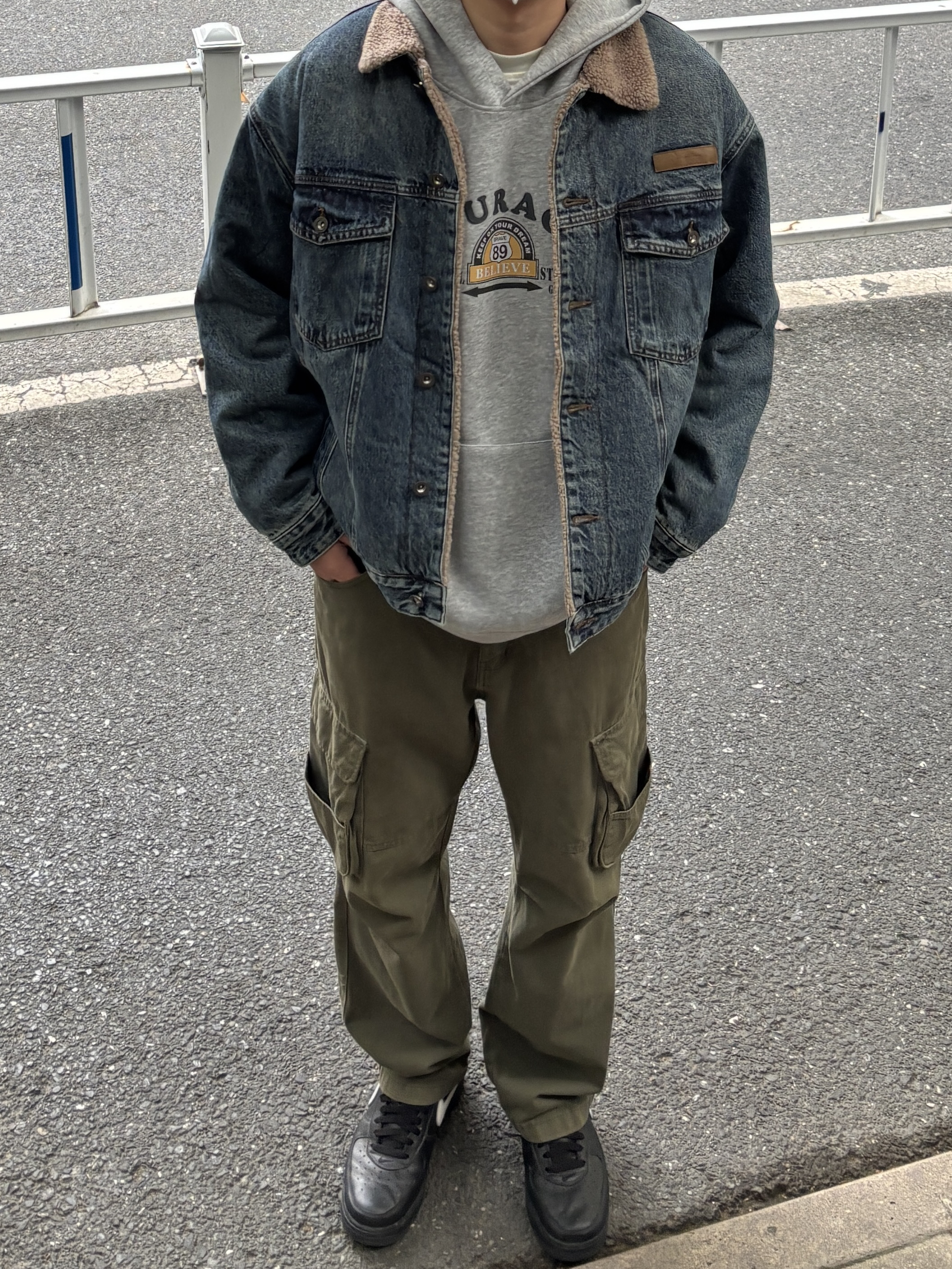 天气渐冷,牛仔外套简直太适合秋冬了。随意搭配都好看 今天上身选择灰色连帽卫衣搭配蓝色羊羔绒牛仔外套,裤子搭配一条军绿色直筒休闲工装裤。 秋日冬citywalk 这样穿,帅气值拉满。 - 今日穿搭 衣服裤子都来自:NICE LILI 鞋子:AF1