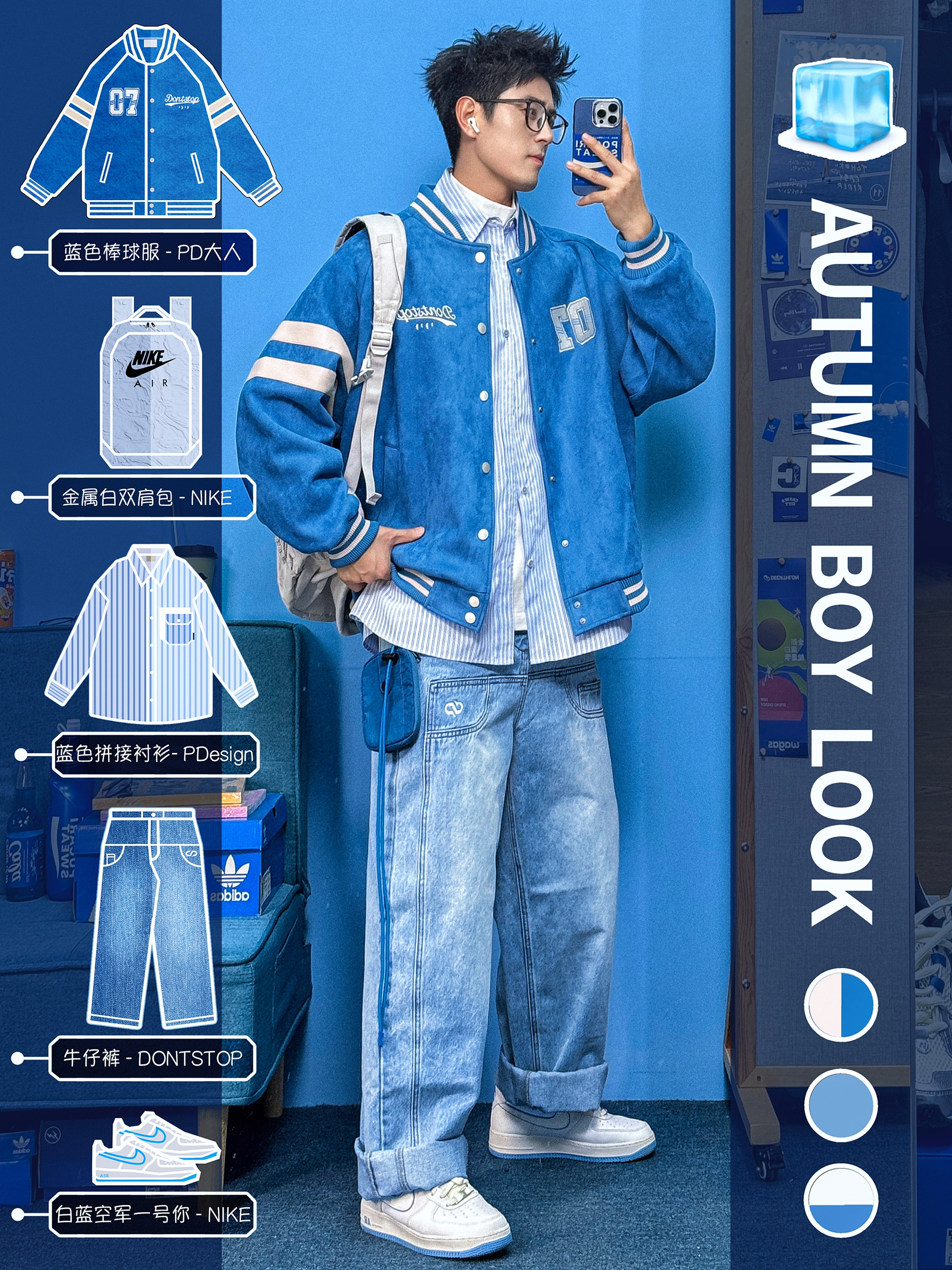 天冷了!是真的冷了!又到了“叠穿”的季节!就是喜欢“叠穿”!今天分享3套“少年感”蓝色系穿搭!💙💦…快艾特你男朋友过来抄作业吧!!!📝💤… — 1⃣️:【灰蓝】双色搭配!💨💦… 2⃣️:【蓝蓝】同色系穿搭!🔵❄️… 3⃣️:【蓝白】干净穿搭!!☁️💤… —