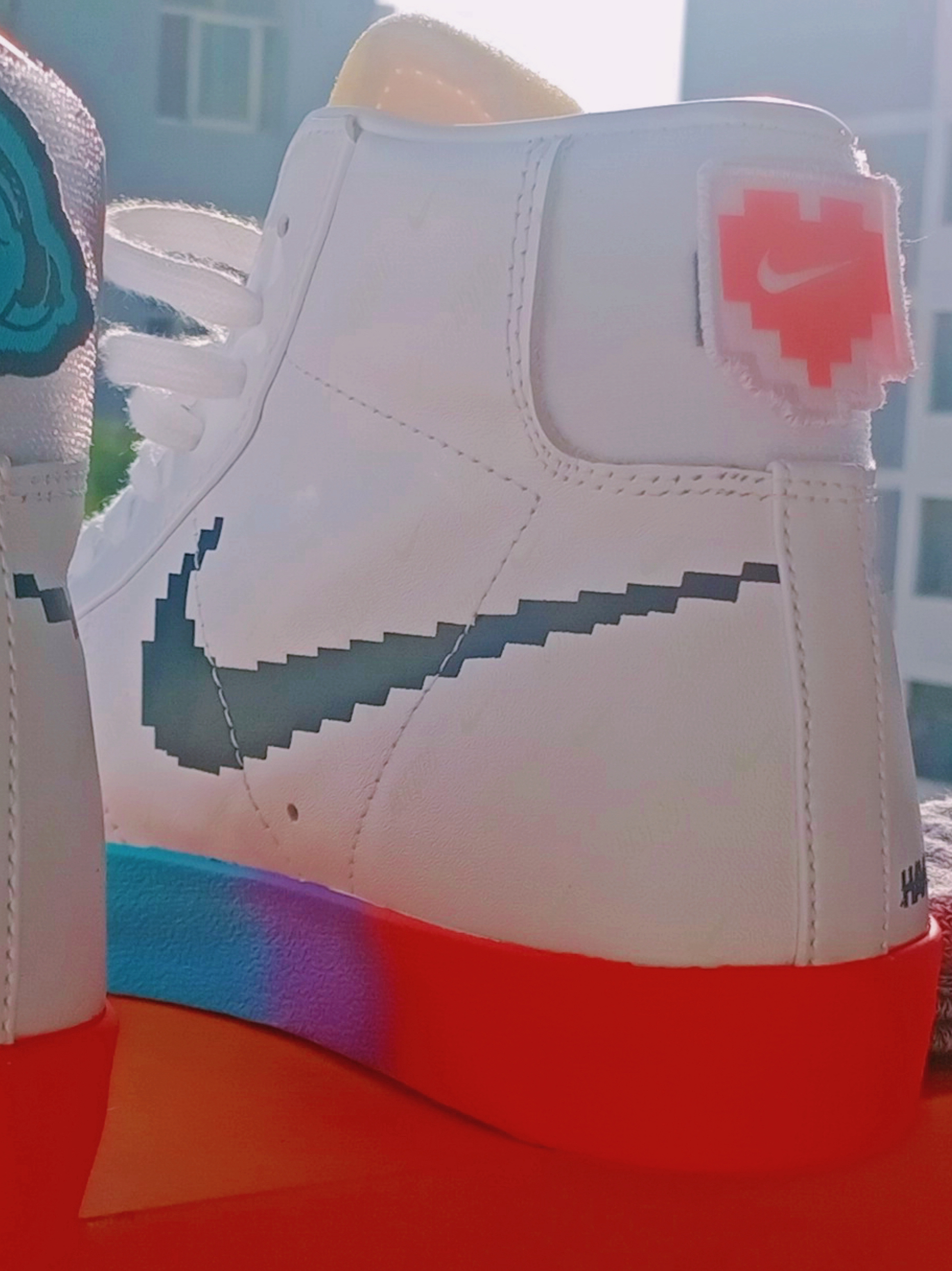 本篇笔记关联了Nike Blazer 板鞋 经典复古防滑舒适百搭 电玩像素/英雄联盟/白蓝红喷漆/白色等商品,为用户提供真实的使用体验和购买参考。
