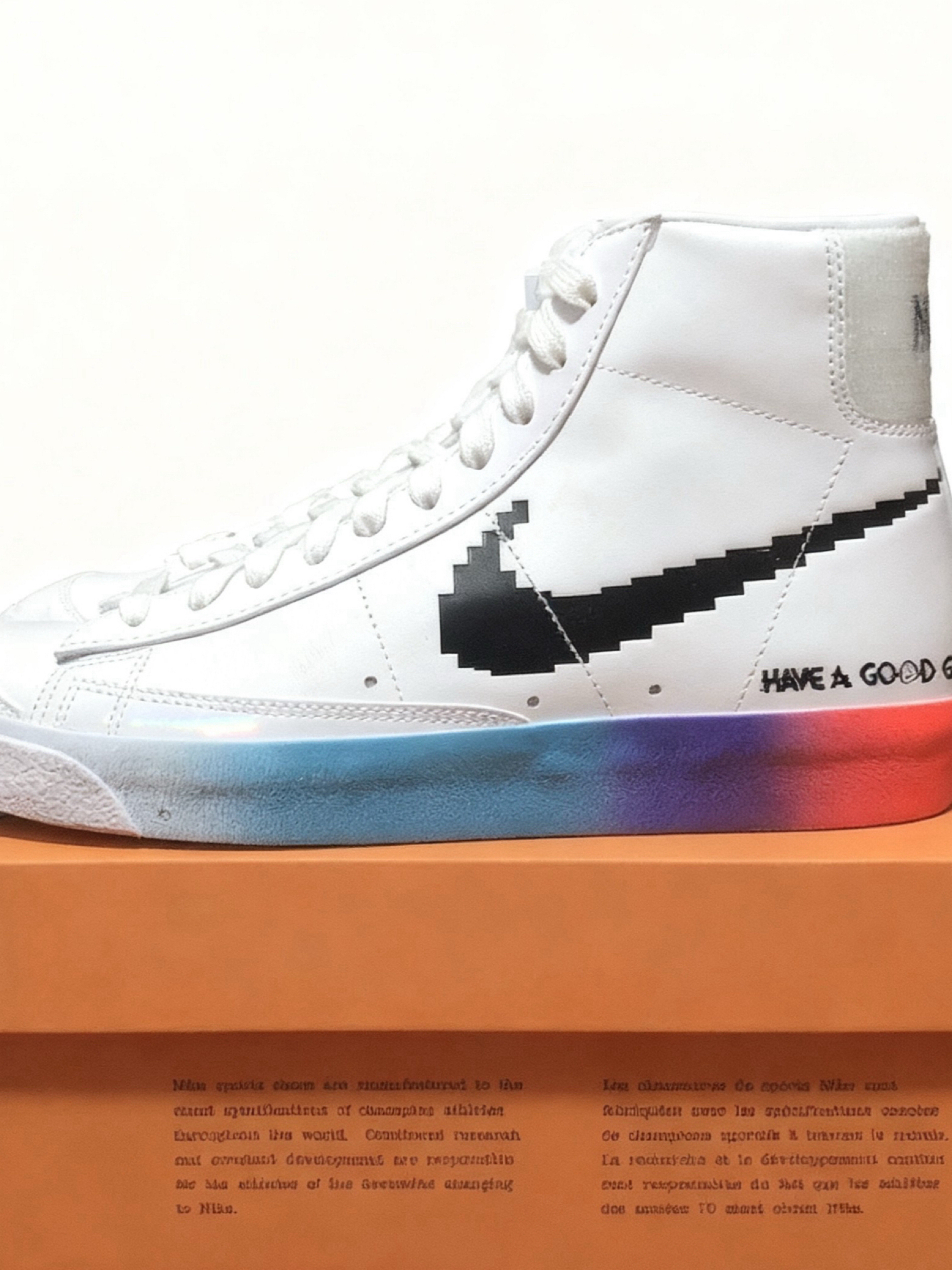 👟球鞋名称:Nike Blazer Mid '77 Vintage "Have A Good Game" 🔍分享理由:好看又好穿 🤔整体感受:这双鞋给人的第一感觉是充满潮流与游戏跨界的活力感!像素化的Swoosh标志瞬间把人拉回复古游戏的记忆里,“HAVE A GOOD GAME”的字样更是直白地传递出玩趣氛围,仿佛穿着它就能踏入虚拟赛场。鞋身底部的渐变色彩又添了几分活泼跳脱,既保留了Nike...