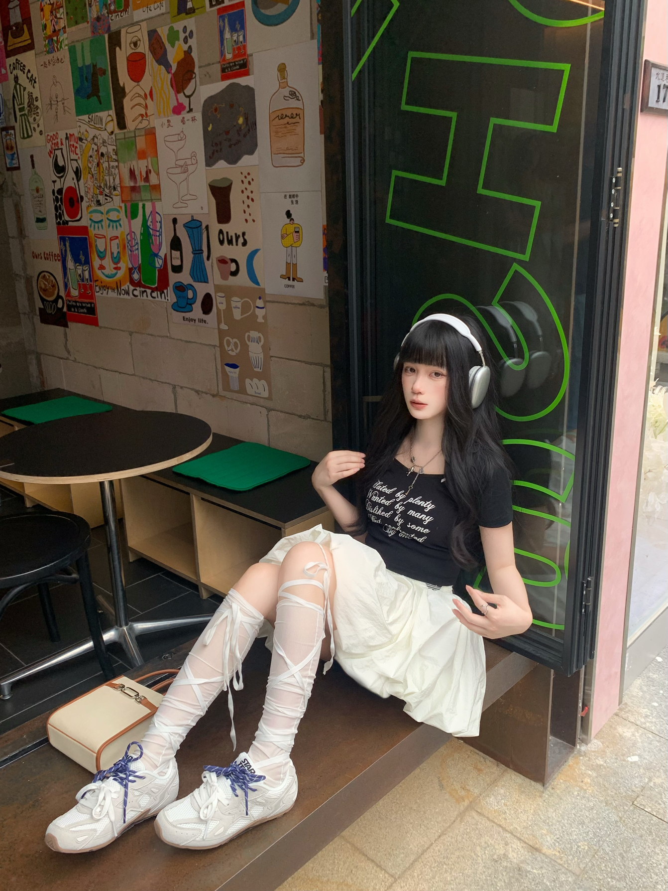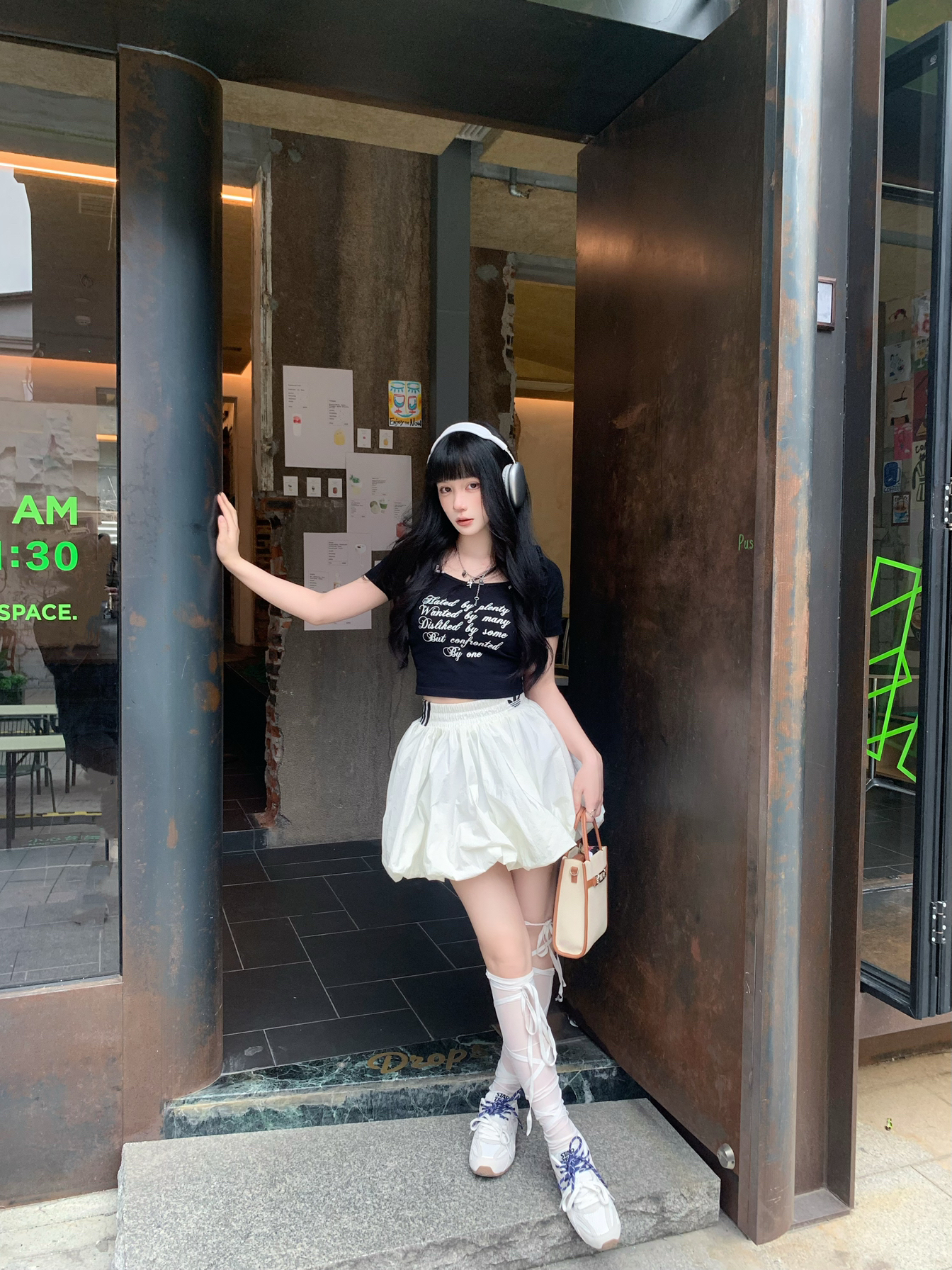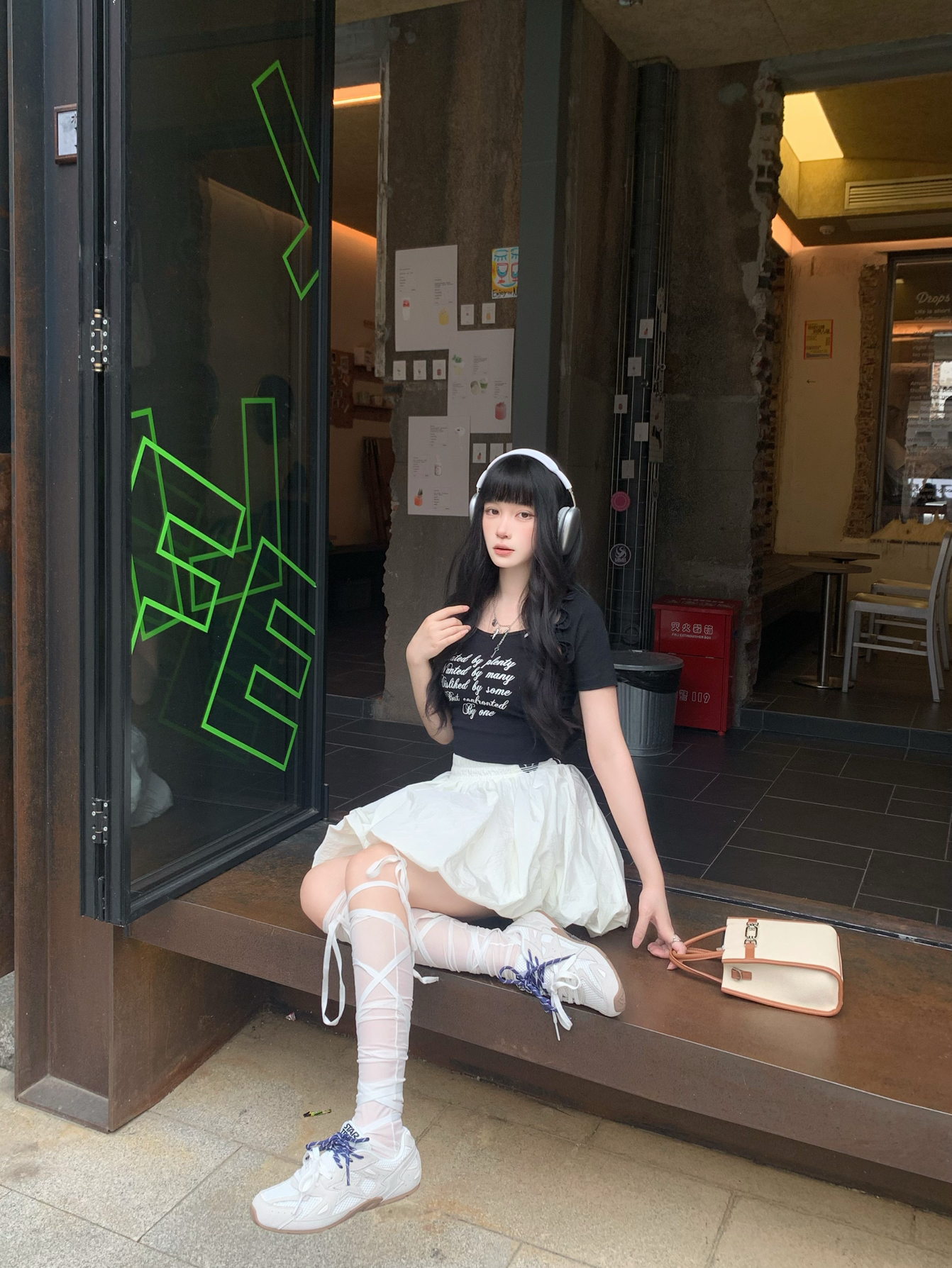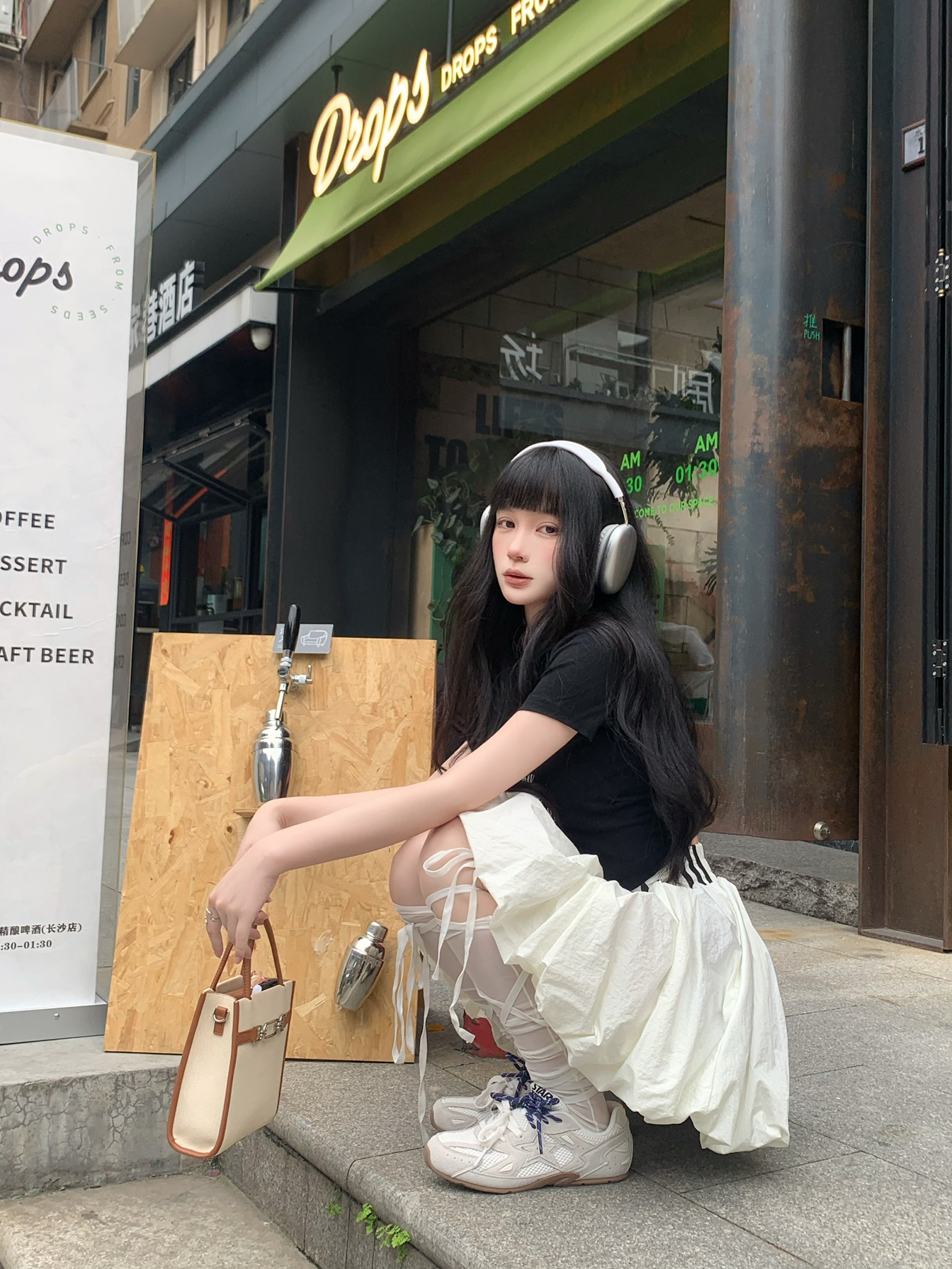 街头吸晴还得是芭蕾风 黑色短袖搭配白色蓬蓬裙俏皮可爱☺️ 搭一双蕾丝长袜➕STARTER芭蕾德训鞋就是点睛之笔👟 上脚轻便透气 行走间自在舒适~ 统一色调的拼接与整体穿搭色调相呼应