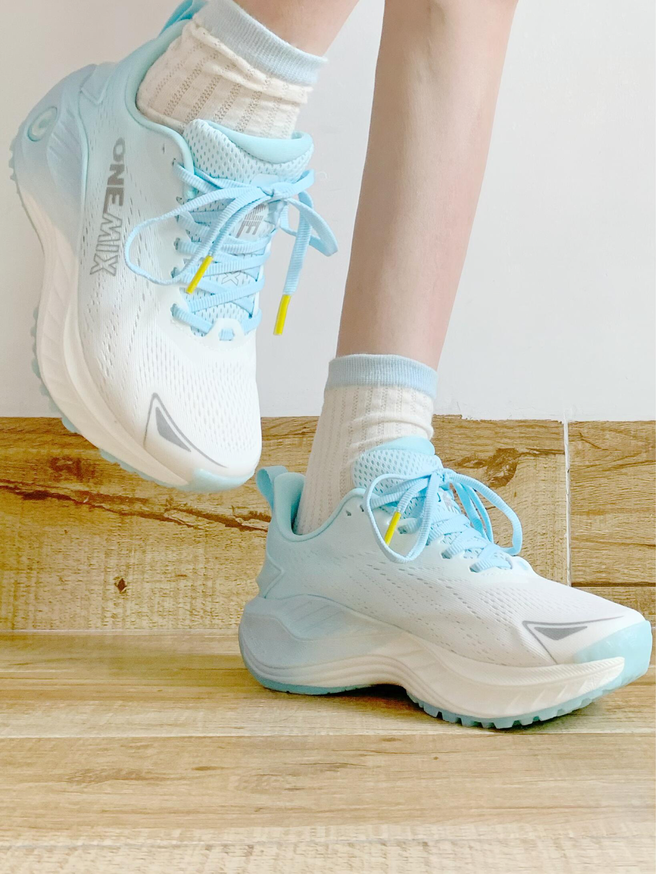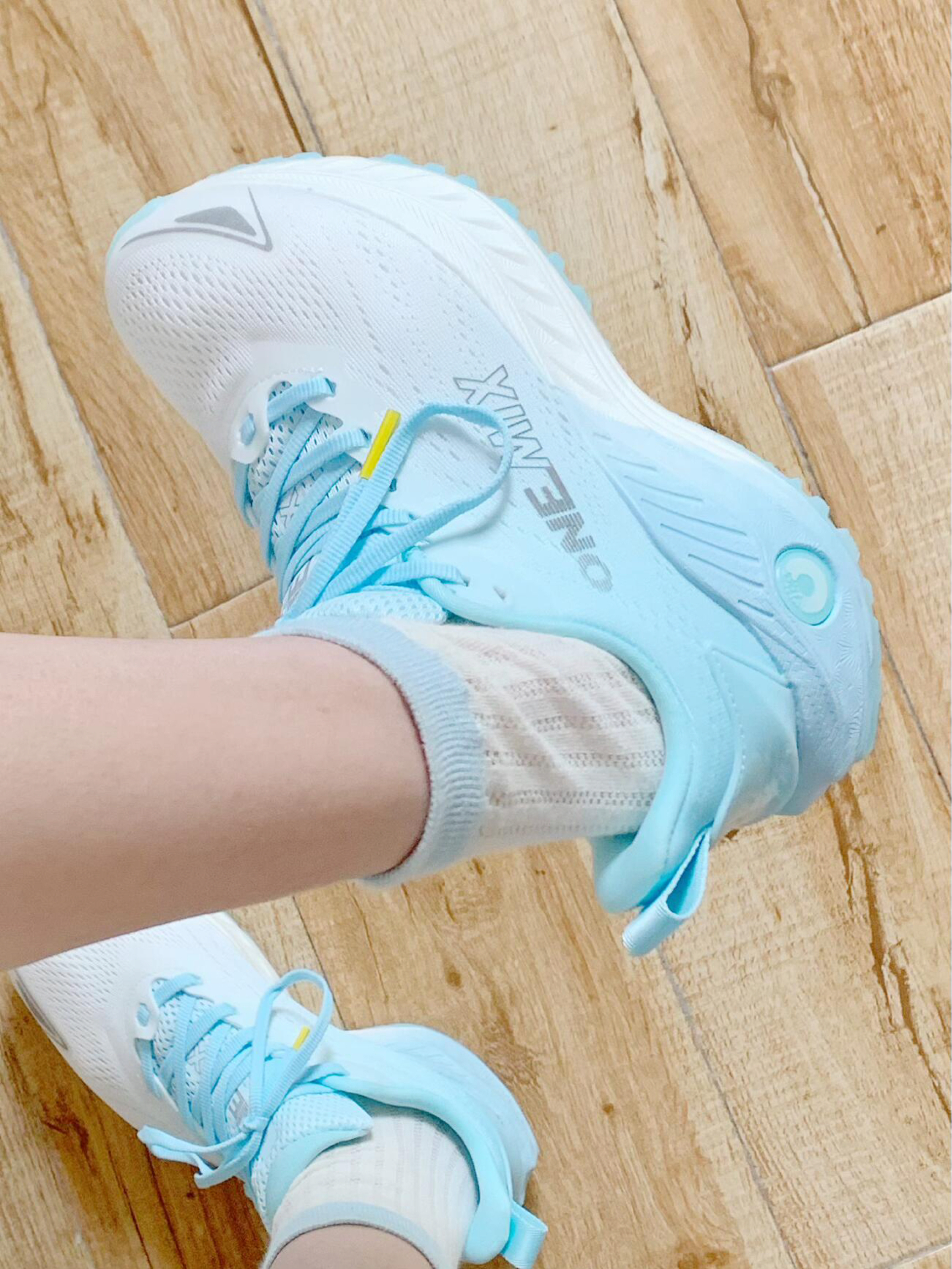本篇笔记关联了ONEMIX/玩觅 碳板 增高 软底回弹 超轻 网布透气 缓震 系带 慢跑 马拉松 跳操 跑鞋 海盐白/蓝色等商品,为用户提供真实的使用体验和购买参考。