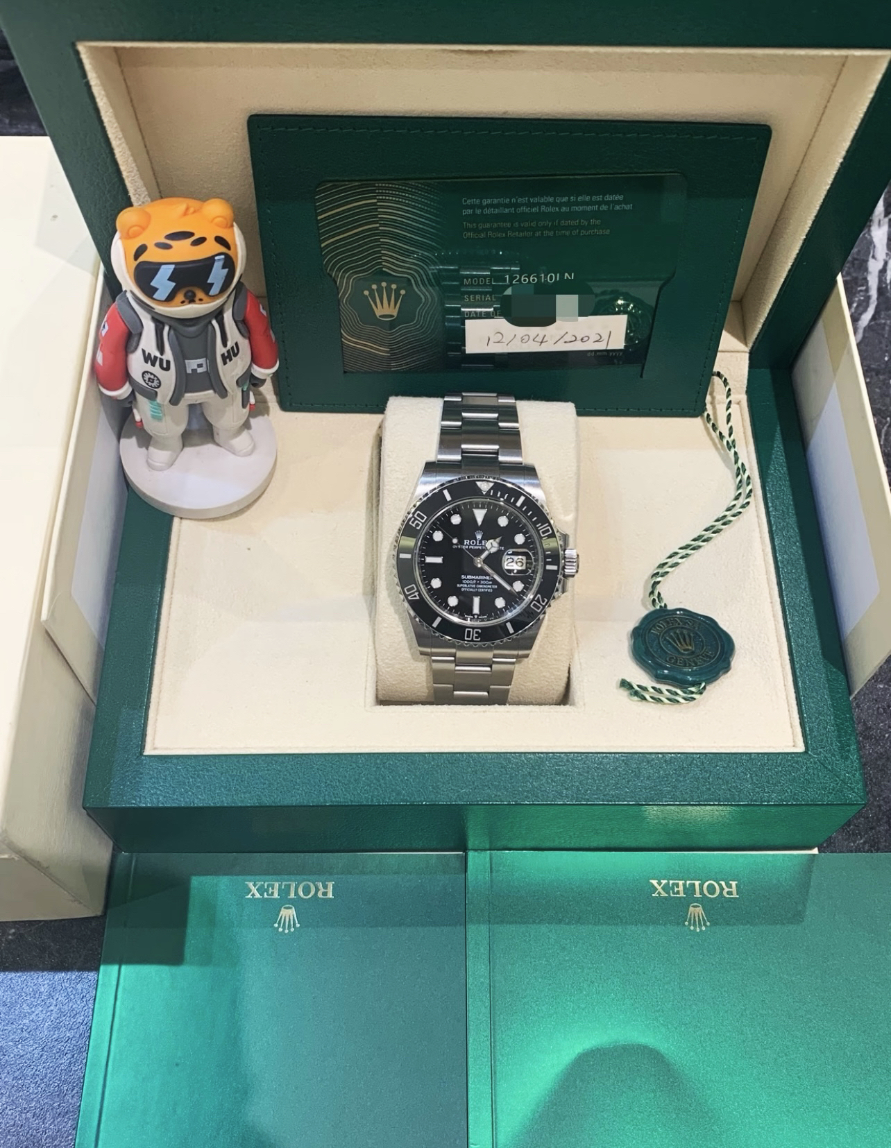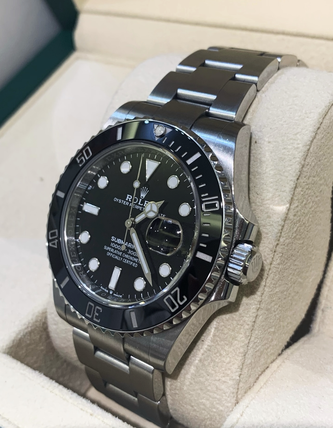 Rolex SubmarinerDate41-126610LN劳力士潜航者系列41mm,绰号“黑水鬼”。这只腕表作为劳力士运动表,入门款级别的标杆腕表,是大部分劳力士手表玩家在最开始都会入手的一款腕表。低调的黑色表盘和三点钟位置的日历窗让这只表可以轻松日常通勤并且配合各种穿搭,而“拉丝磨砂”的表链处理使得这只表十分耐磨耐用。最后就是“陶瓷Eit代”的劳力士的颜色处理,这只更大的 41mm的“黑水鬼...