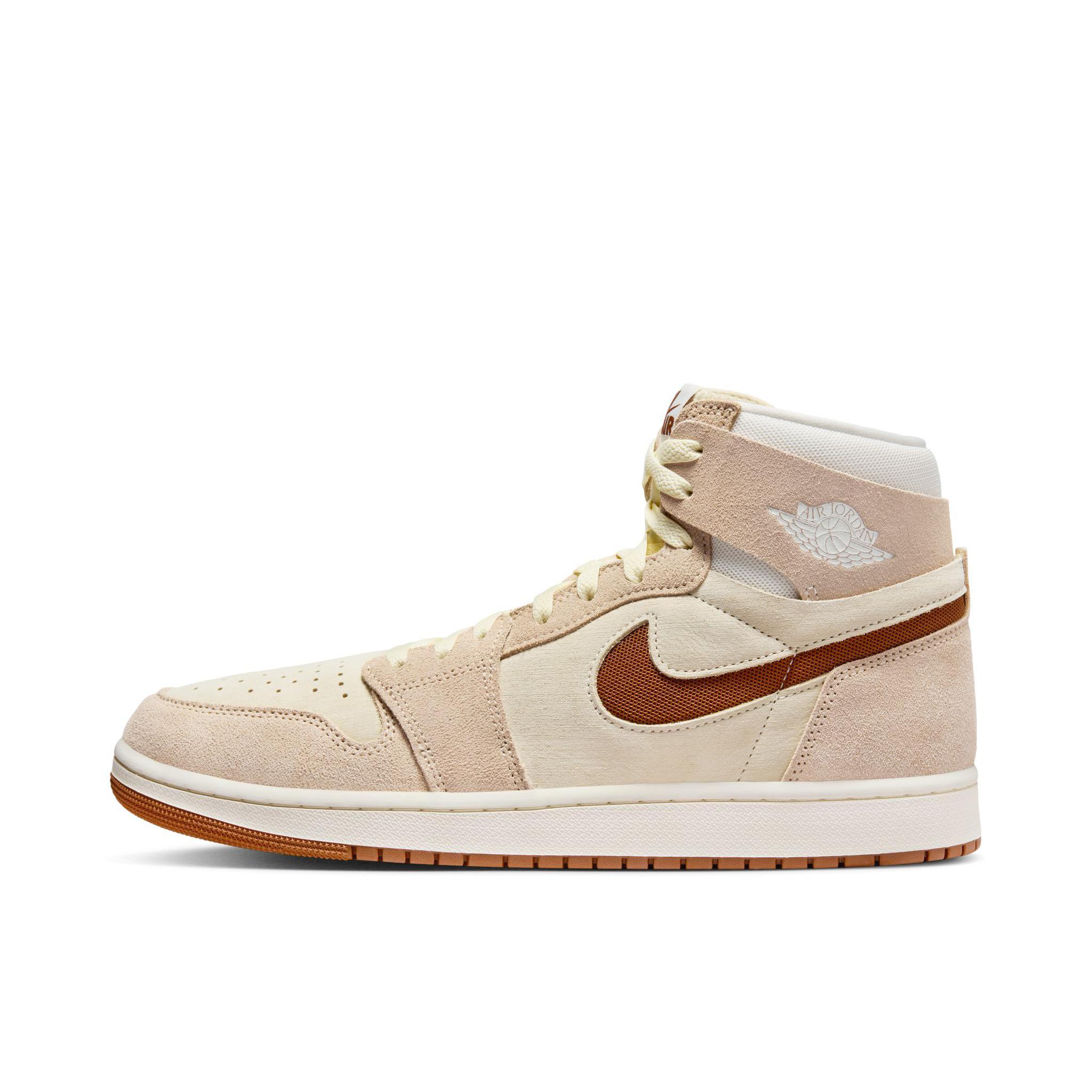 🔥 当芝加哥传奇鞋型邂逅温柔米粽 这双AJ1高帮宛如被岁月浸染的复古胶片 低饱和度中性色调 自带高级滤镜 磨砂皮革与荔枝纹交织 每一道褶皱都是故事 ▫️复古老爹鞋色调灵感 米棕渐变鞋身 像是90年代篮球馆木地板与旧皮球的色彩复刻 ▫️做旧泛黄中底+油蜡感鞋带 刻意保留的岁月痕迹 新鞋穿出收藏级质感 ▫️珊瑚橘跳色缝线暗藏鞋舌 打破单调的巧思细节 点亮整体穿搭