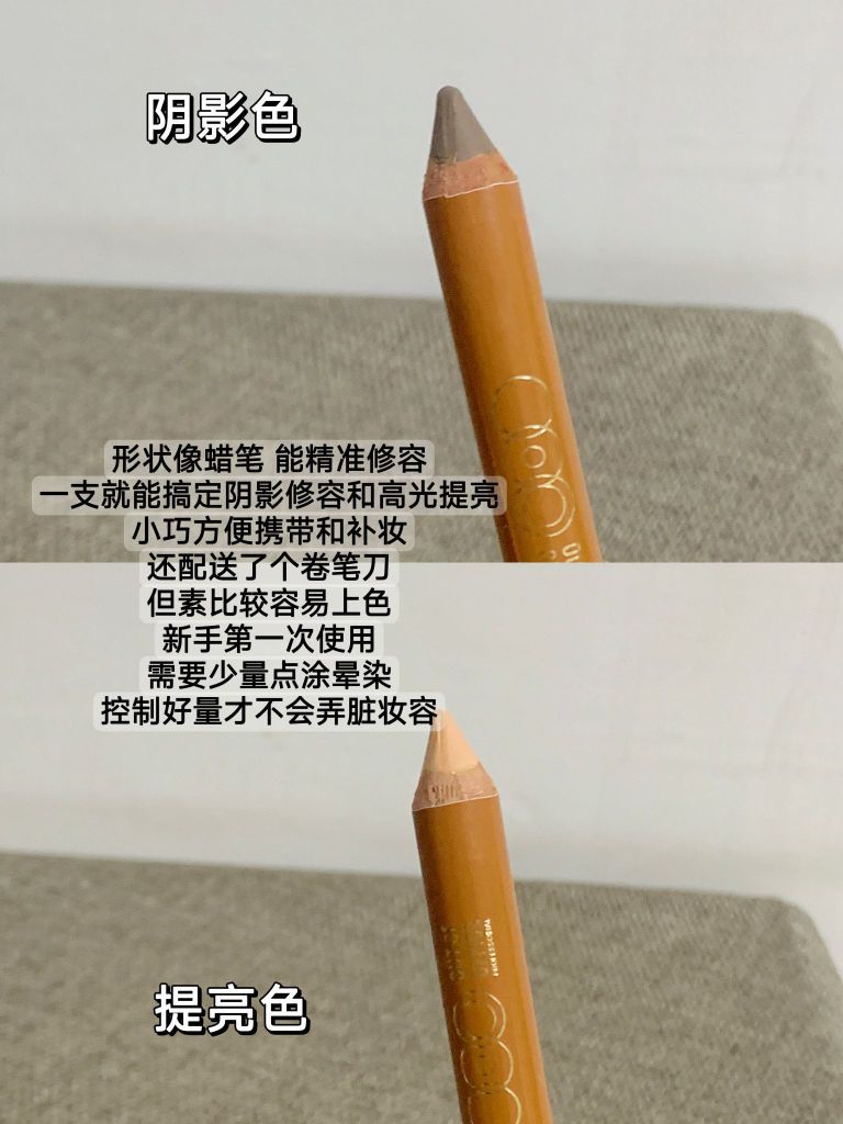 这两个都是我自己用滴修容啦 新手比较推荐粉状的修容,就是橘朵的那盘 容易上手好晕染 等熟练了,可以试试双头修容蜡笔 会打开新世界!!能精准修容~ 但素显色度高,所以新手不会画修容就容易弄脏 可以根据自己的需求来选择