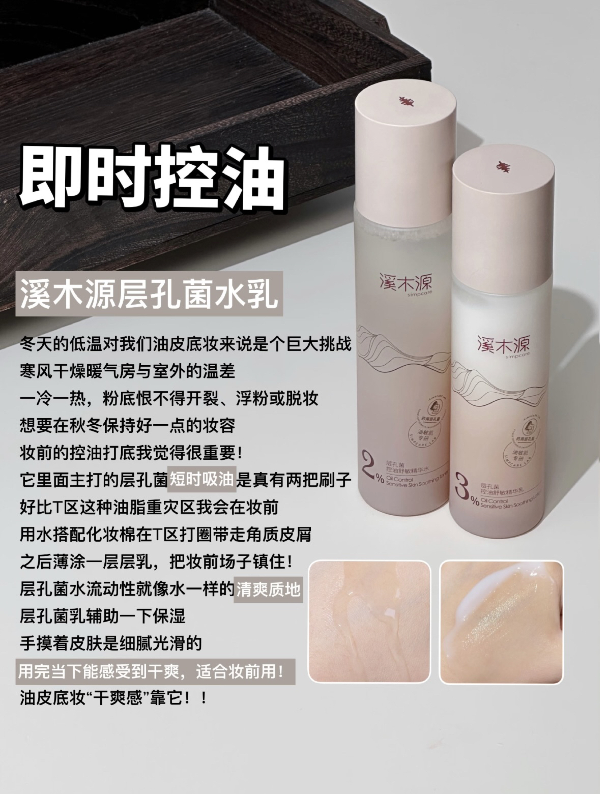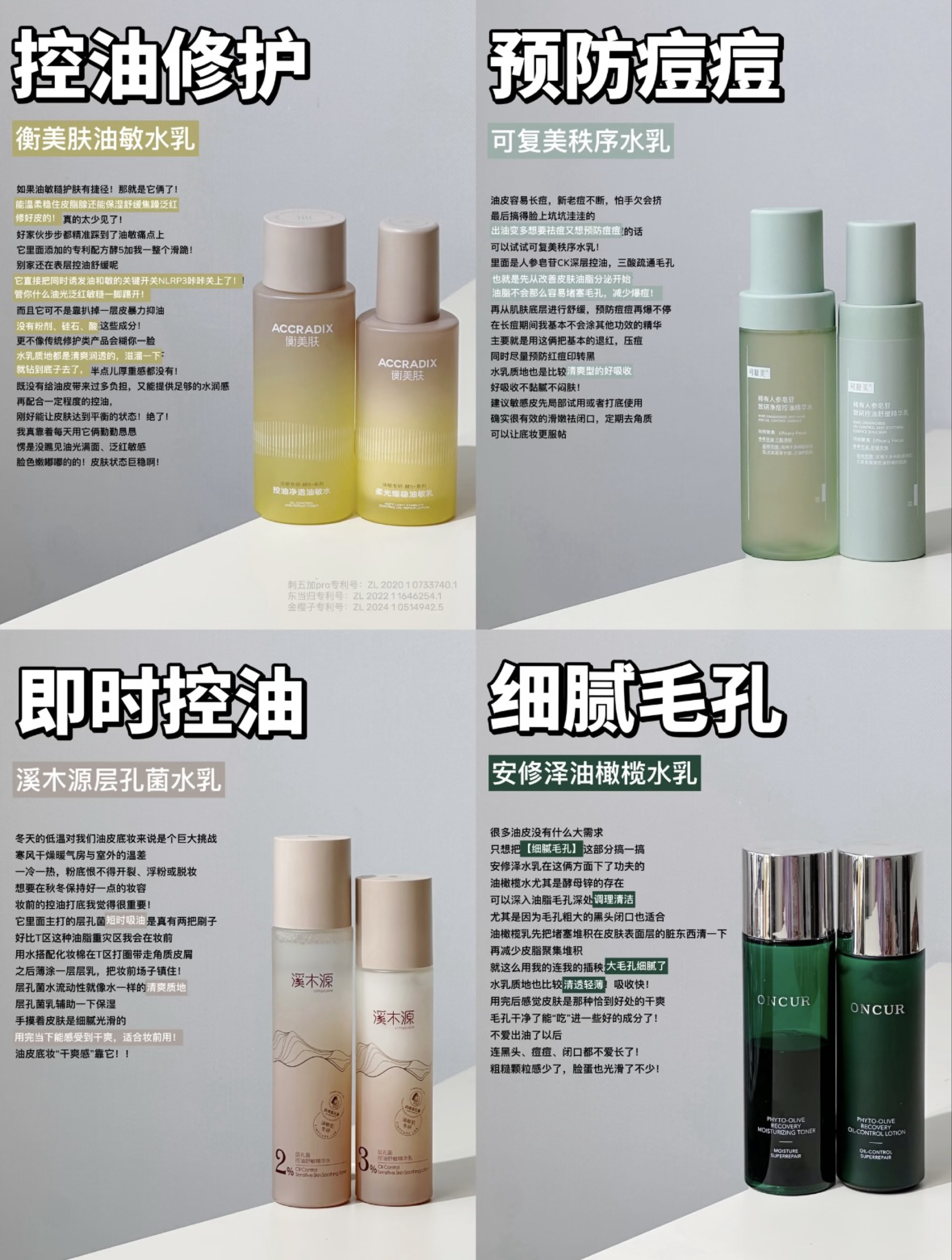 衡美肤油敏水乳 → 敏感油皮、外油内干肌 专利植物成分(刺五加PRO+东当归+金樱子)温和调节炎症通路,适合一油就泛红的脆弱肌,质地清爽润透,不给油皮增加负担。 可复美秩序水乳 → 痘痘反复的油痘肌 人参皂苷CK+三酸配方从源头抑制油脂氧化,适合有痘印、闭口困扰的熟龄油皮,水质地清凉,乳液成膜快。 溪木源层孔菌水乳 → 秋冬混合皮、妆前需求党 层孔菌短时吸油力强,乳液保湿不黏腻,适合温差...