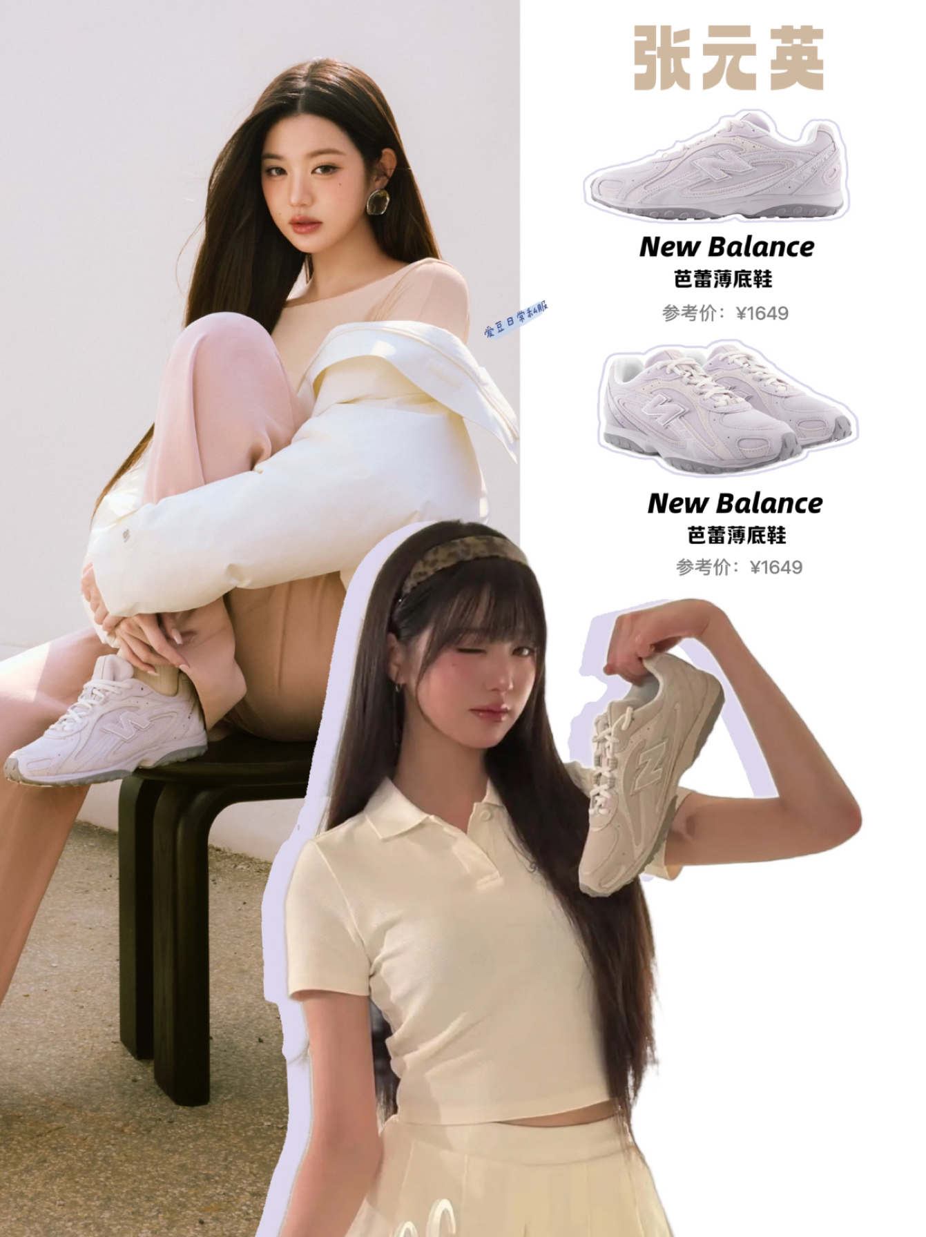 被张元英种草了New Balance 芭蕾鞋,上脚简直就是真香警告‼️淡淡的浅咖配色搭配上复古芭蕾的鞋型又奶又酷的味道这不就来了!搭配简约的百褶裙秒变清冷学姐,张元英同款运动少女风轻松拿捏住了! CR:@张元英