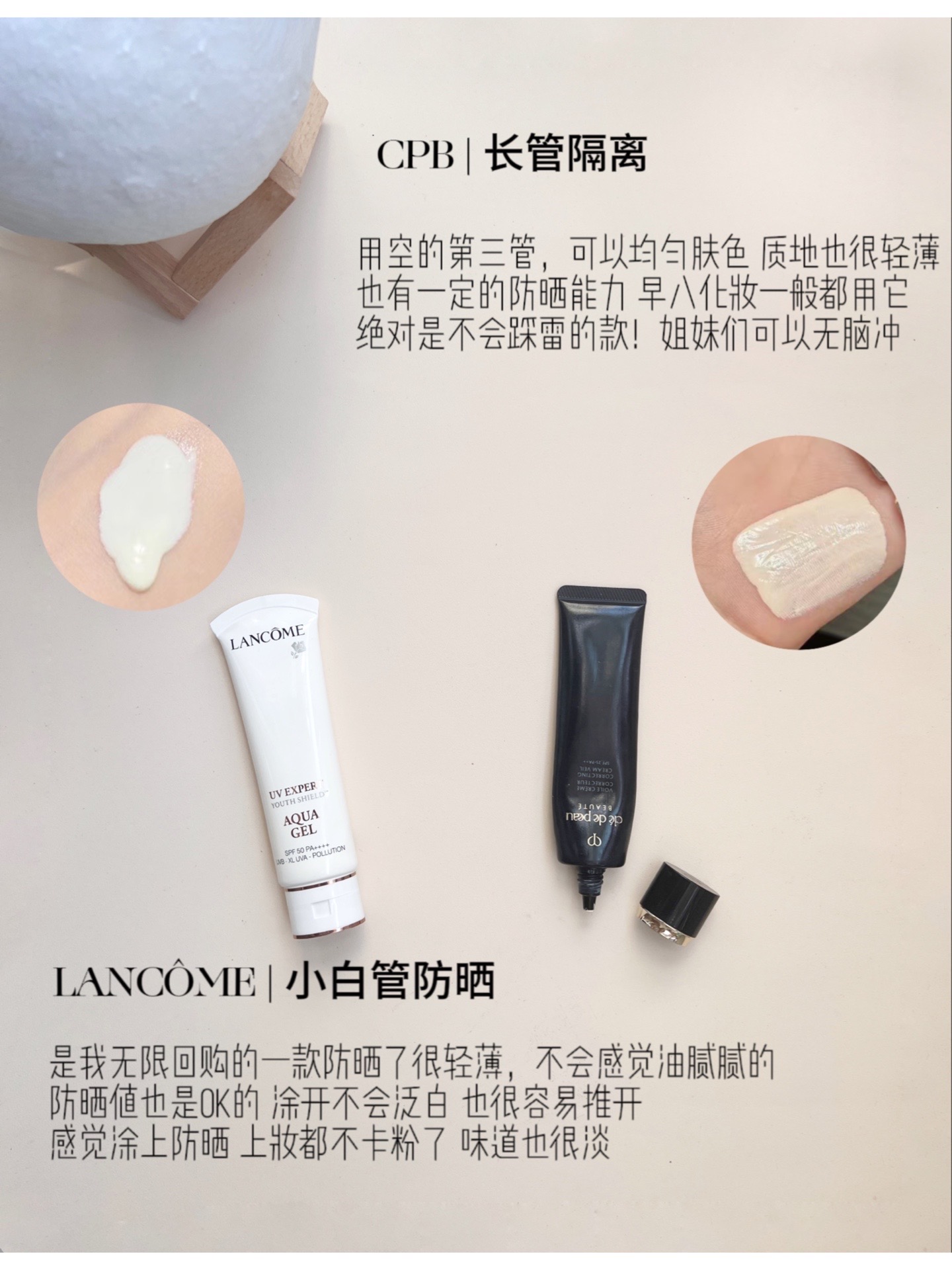 本篇笔记关联了Lancome/兰蔻 小白管轻透修颜水漾长效防晒霜 轻薄隔离贴妆清透 清爽版 SPF50/PA++++、LA MER/海蓝之谜 奇迹面霜 淡纹抗老紧致焕颜舒缓保湿滋润修护 经典面霜、Kryolan 三色遮瑕盘 滋润修饰提亮 40g 三色盘等商品,为用户提供真实的使用体验和购买参考。
