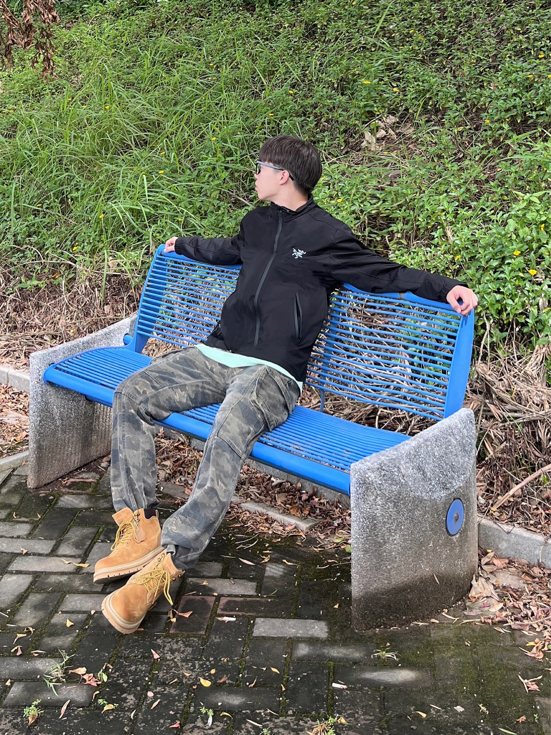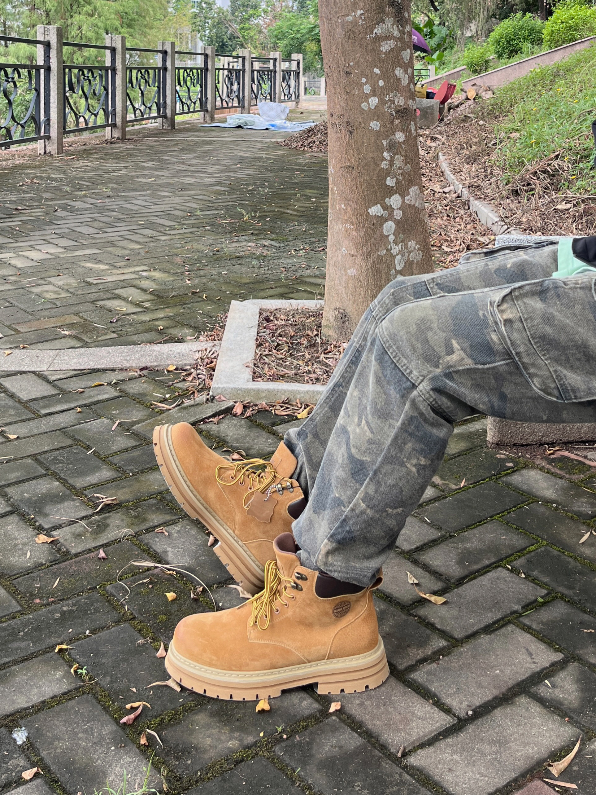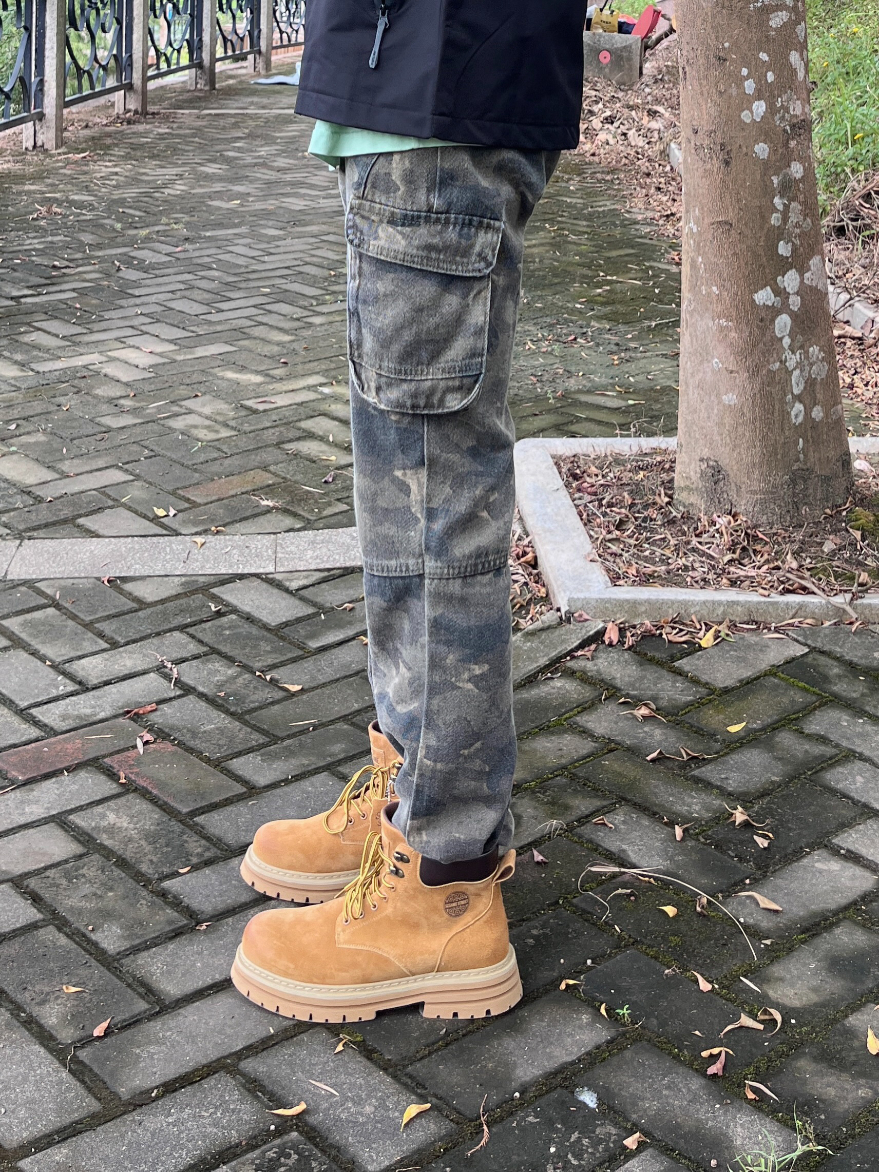 今日份秋日出街上脚 SESAME STREET 的马丁大黄靴🥾 棕黄配色颜值复古时尚 - 皮革面料质感满满 脚感也很舒适透气🔥 搭配上休闲运动外套👔和迷彩工装裤👖 / 一套搭配下来 秋日出行百搭又好看🚶