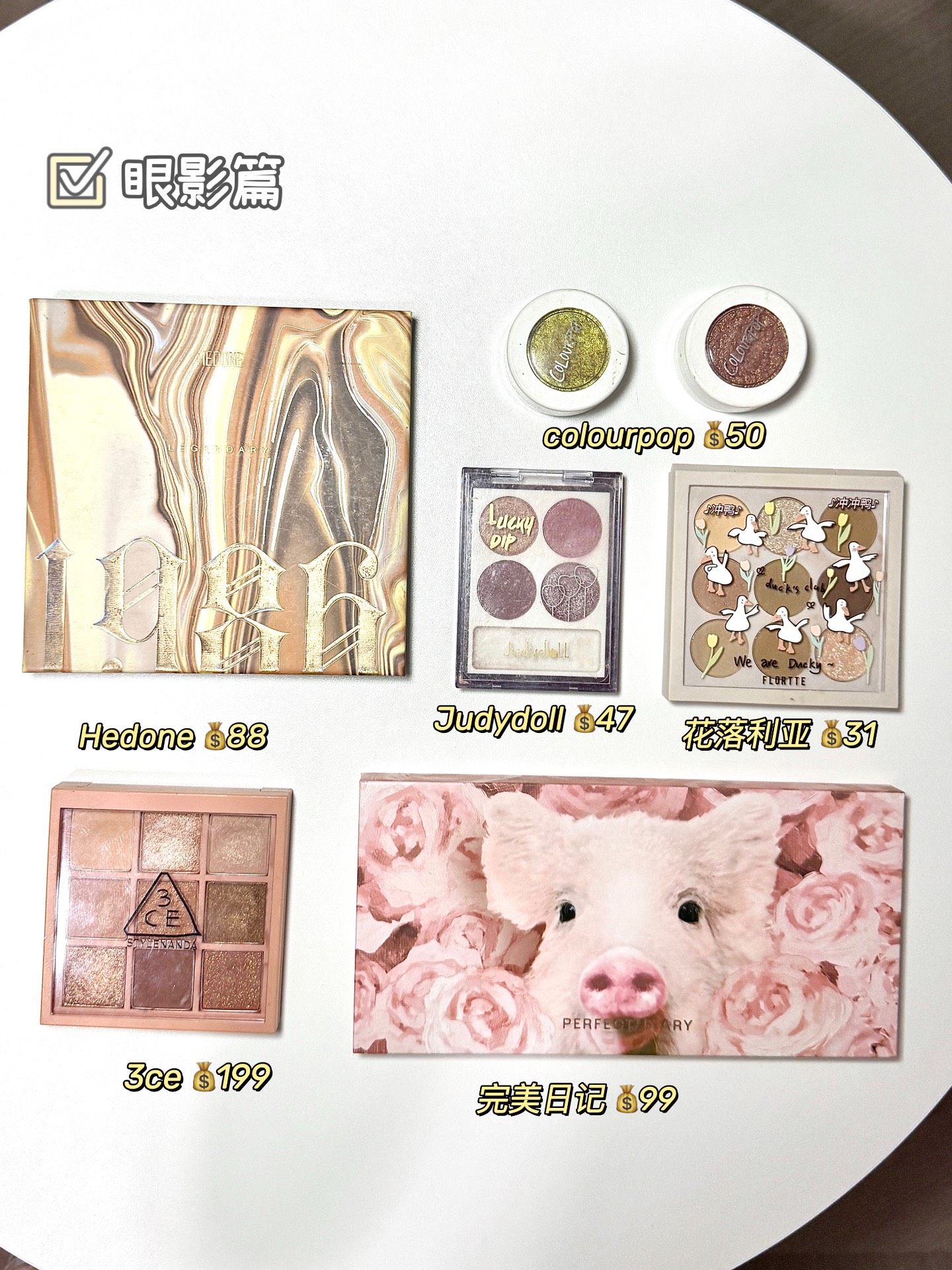 又到了双11囤货季节了 一如既往的还在买买买 女生的化妆桌总是缺一样美妆品 有木有!! 无广!盘点一下我的那些心头爱品类: 1️⃣腮红:3CE腮红 这个色号Momo pink卖爆啦!除非你是黑人皮肤,否则亚洲人皮肤,裸粉色一点都不挑皮,随心驾驭! 2️⃣眼影:完美日记小猪盘 新宠,它🔥有它的道理,粉棕盘整一个温柔住啦,亮片色也是超级显色和闪烁的 3️⃣修容:Oot of office双头修容笔 谁...