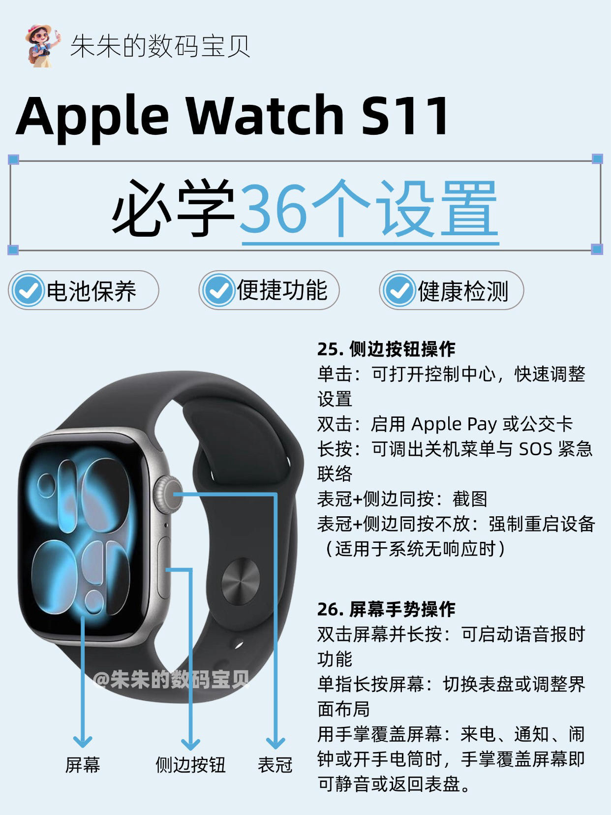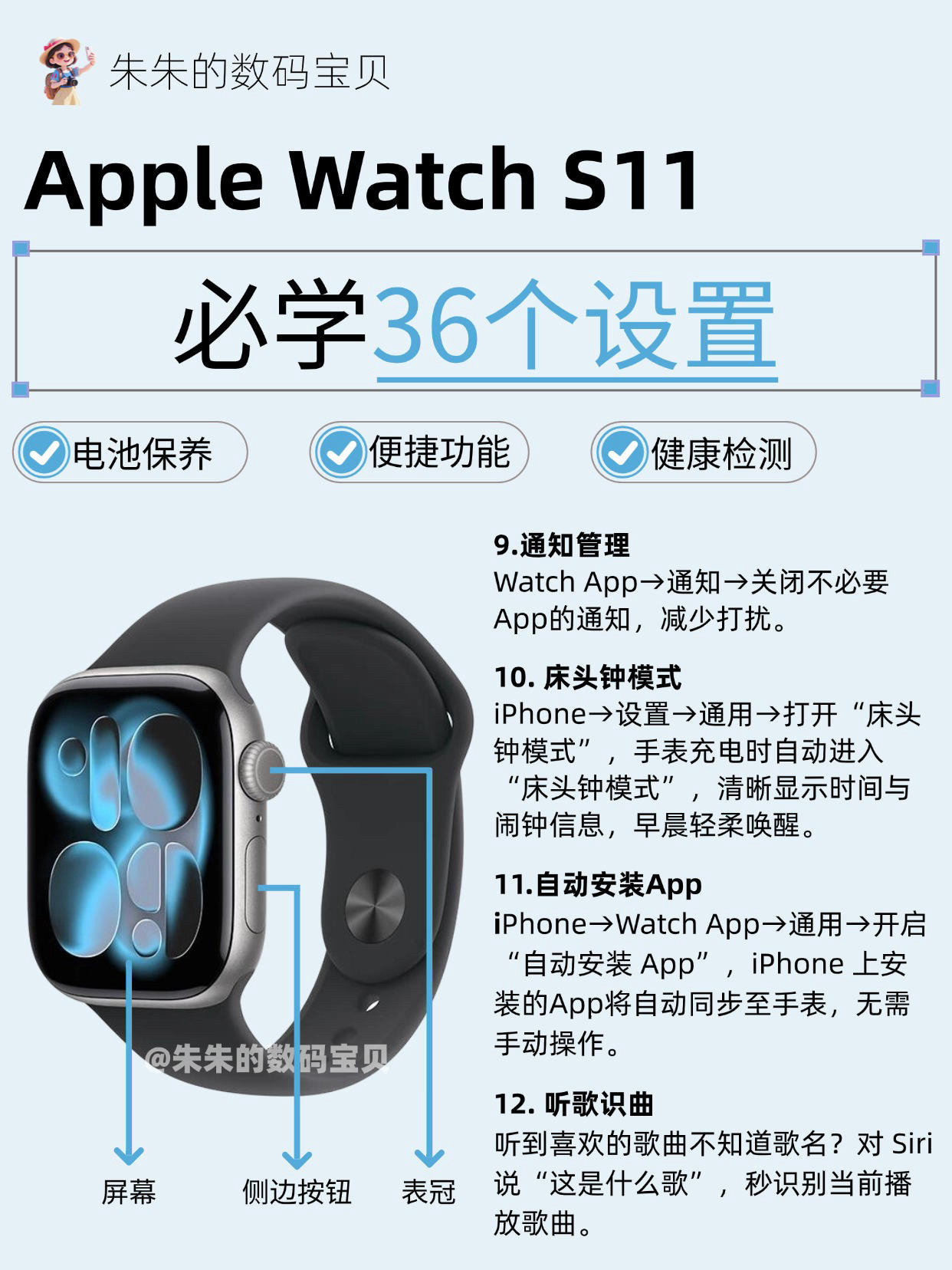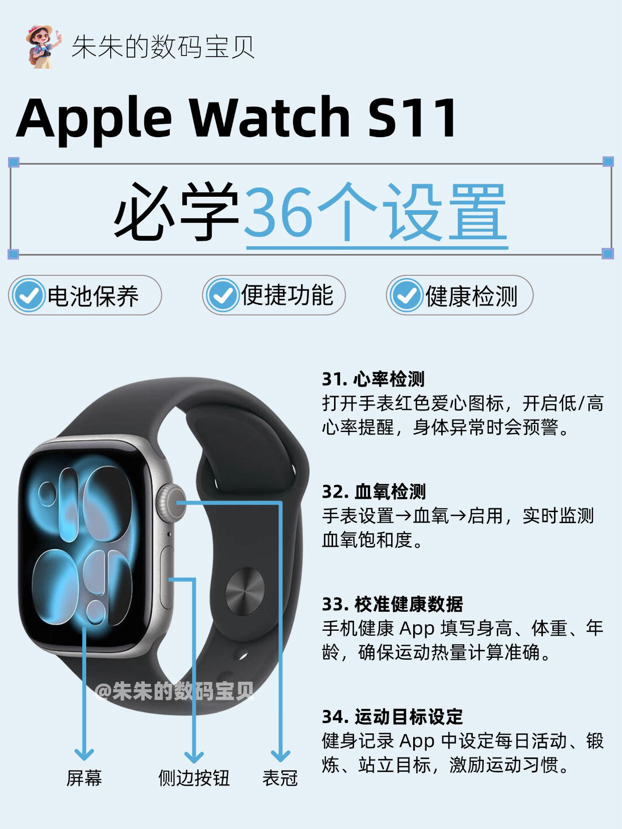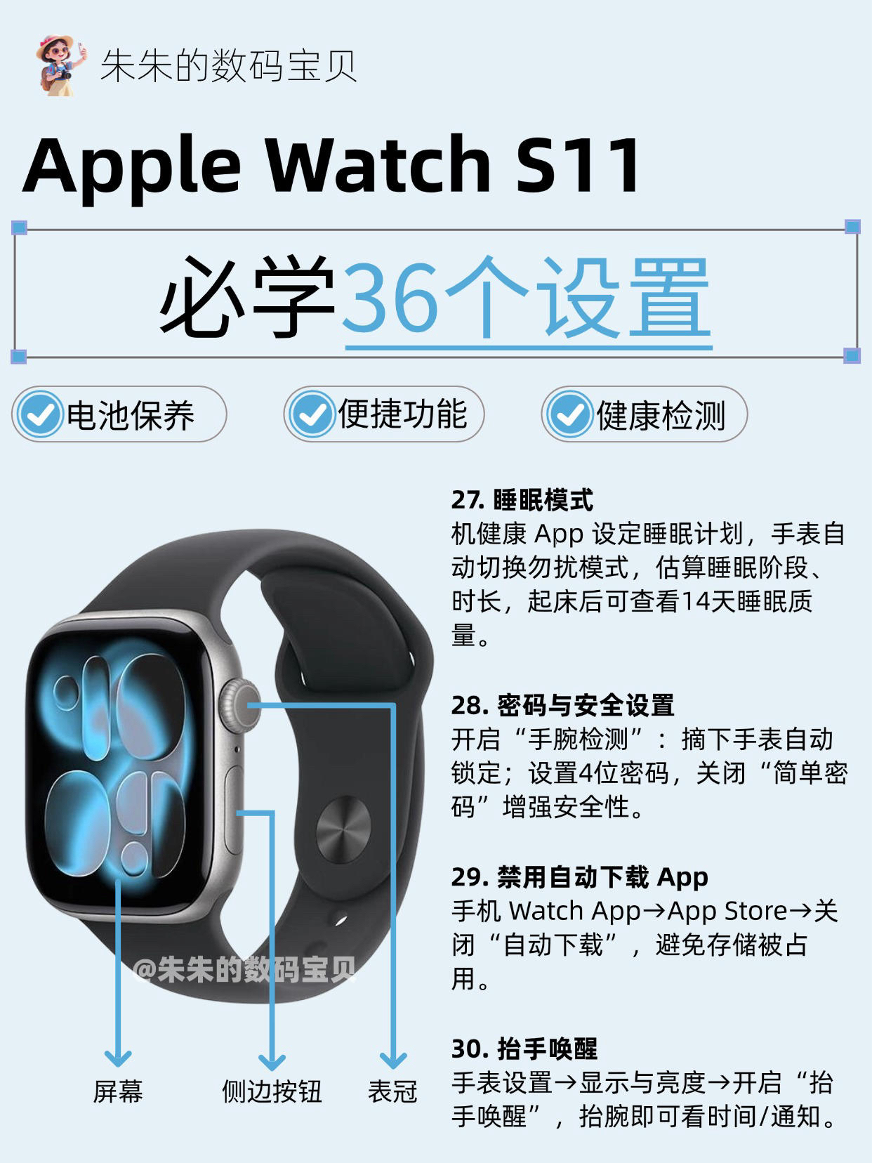 【Apple Watch S11必学36个设置,很难找全了🔥】,由用户 朱朱的数码宝贝 分享,来自湖北。这是一篇来自识货社区的真实用户分享笔记。
