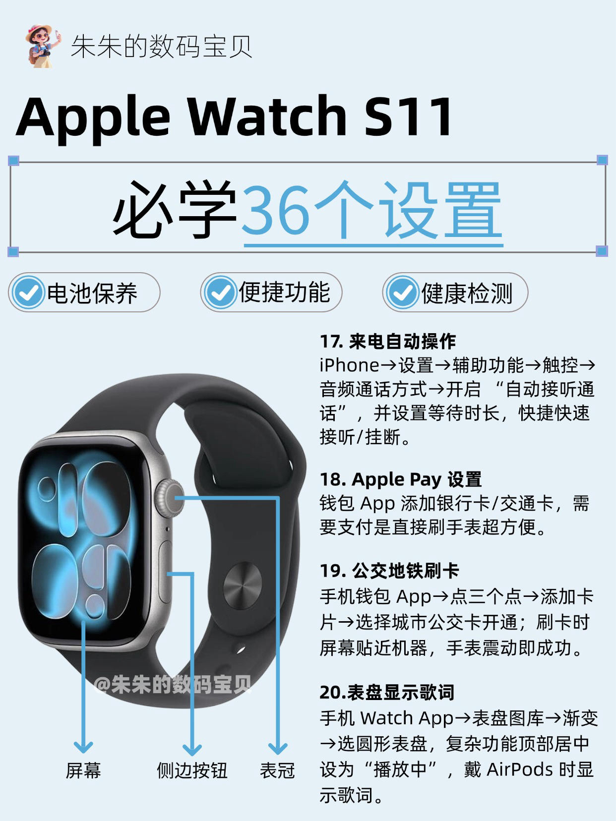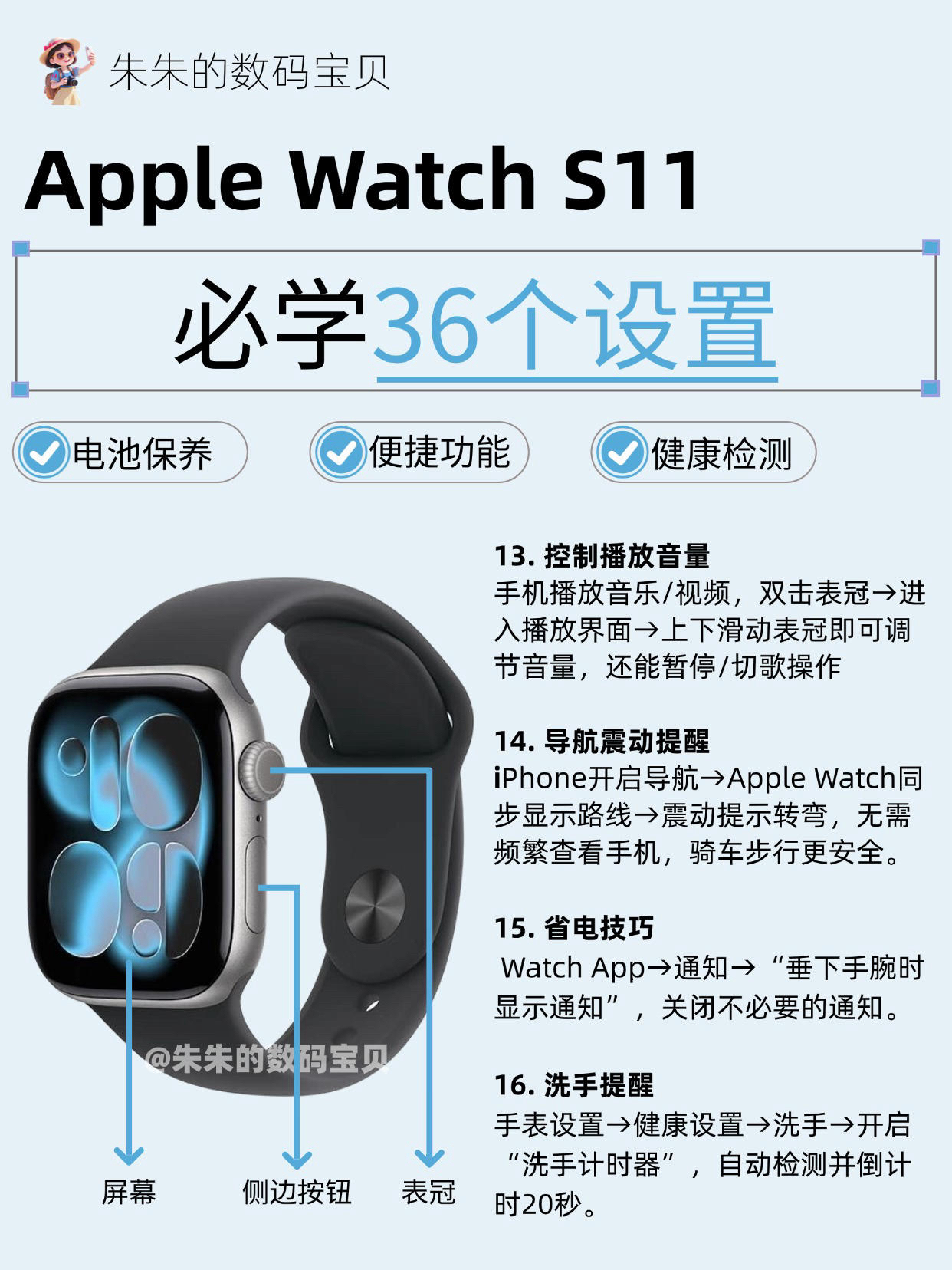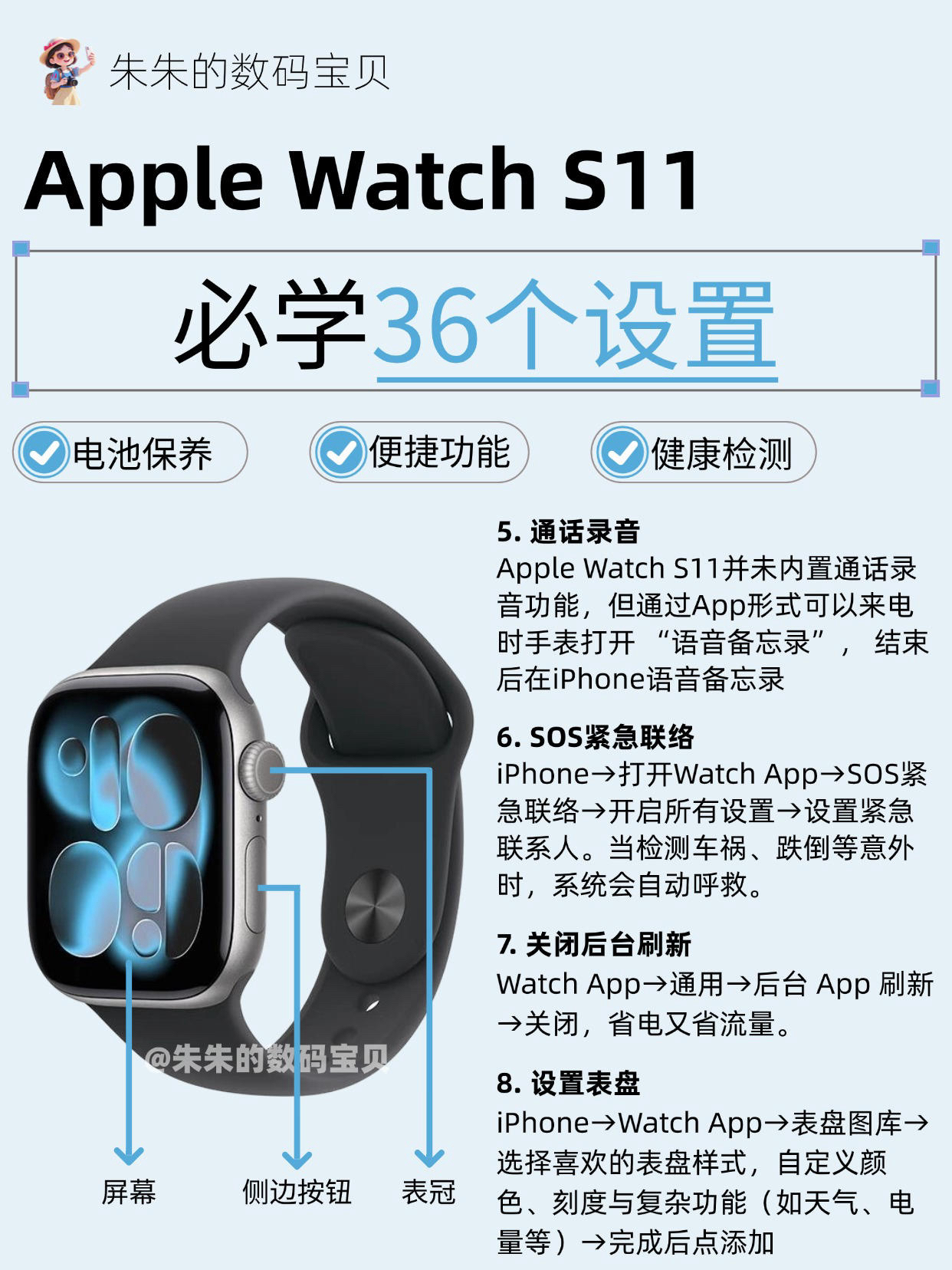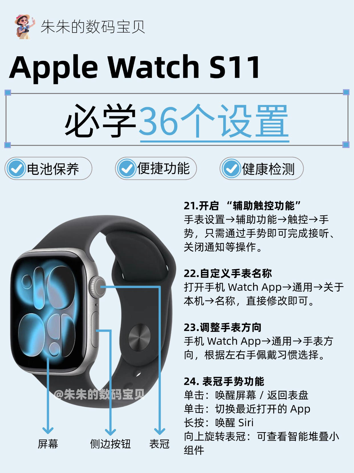 【Apple Watch S11必学36个设置,很难找全了🔥】,由用户 朱朱的数码宝贝 分享,来自湖北。这是一篇来自识货社区的真实用户分享笔记。