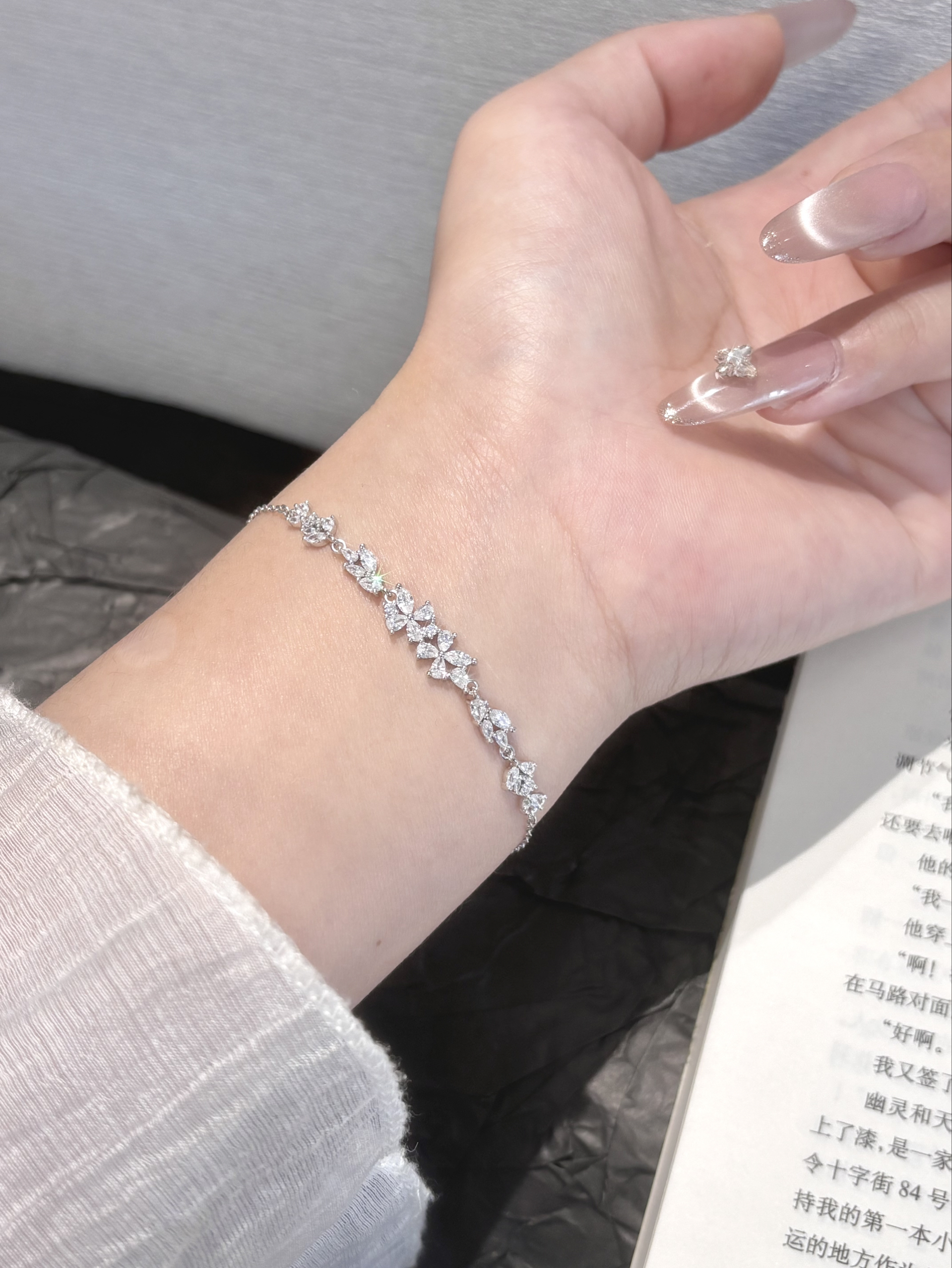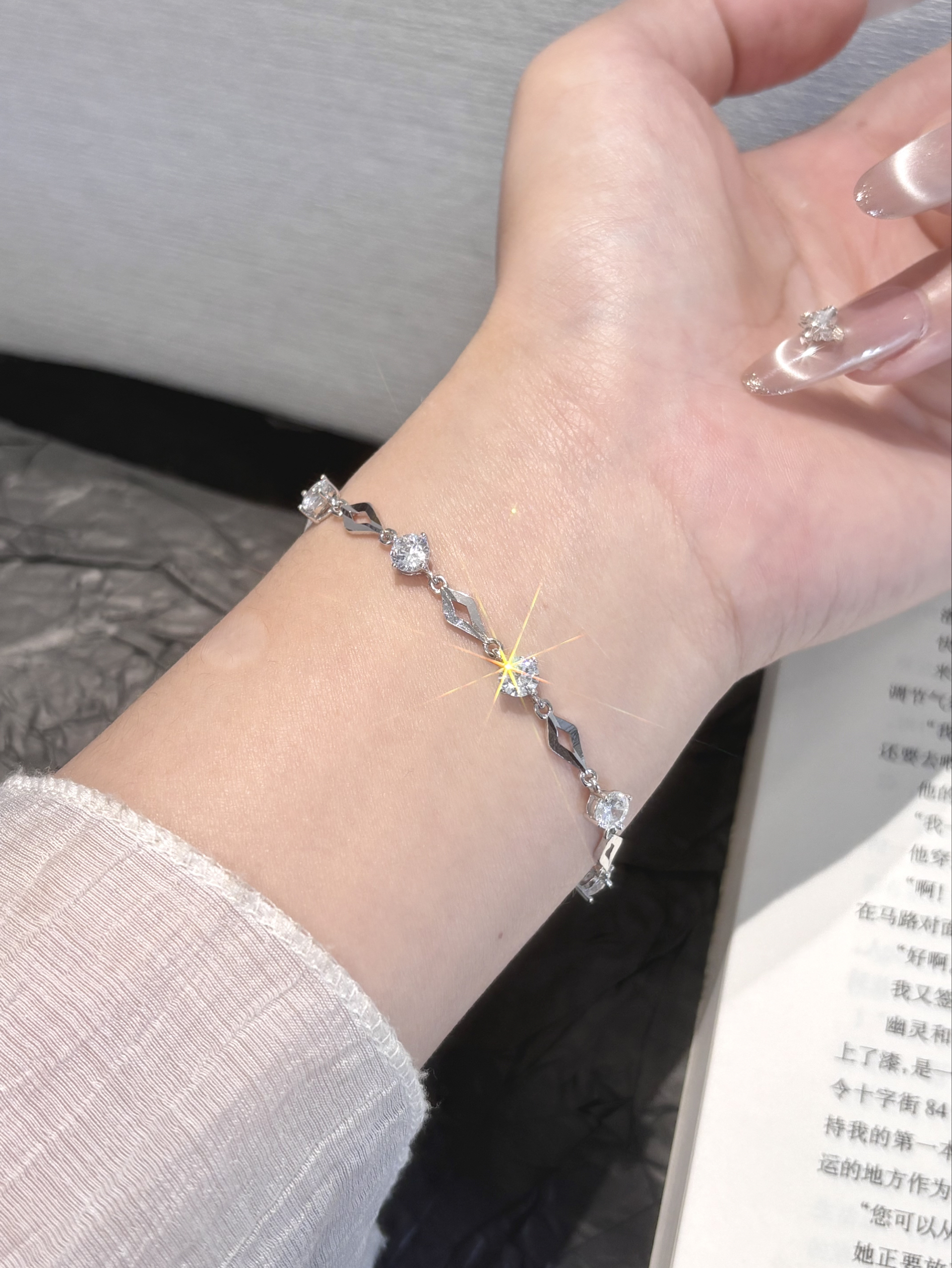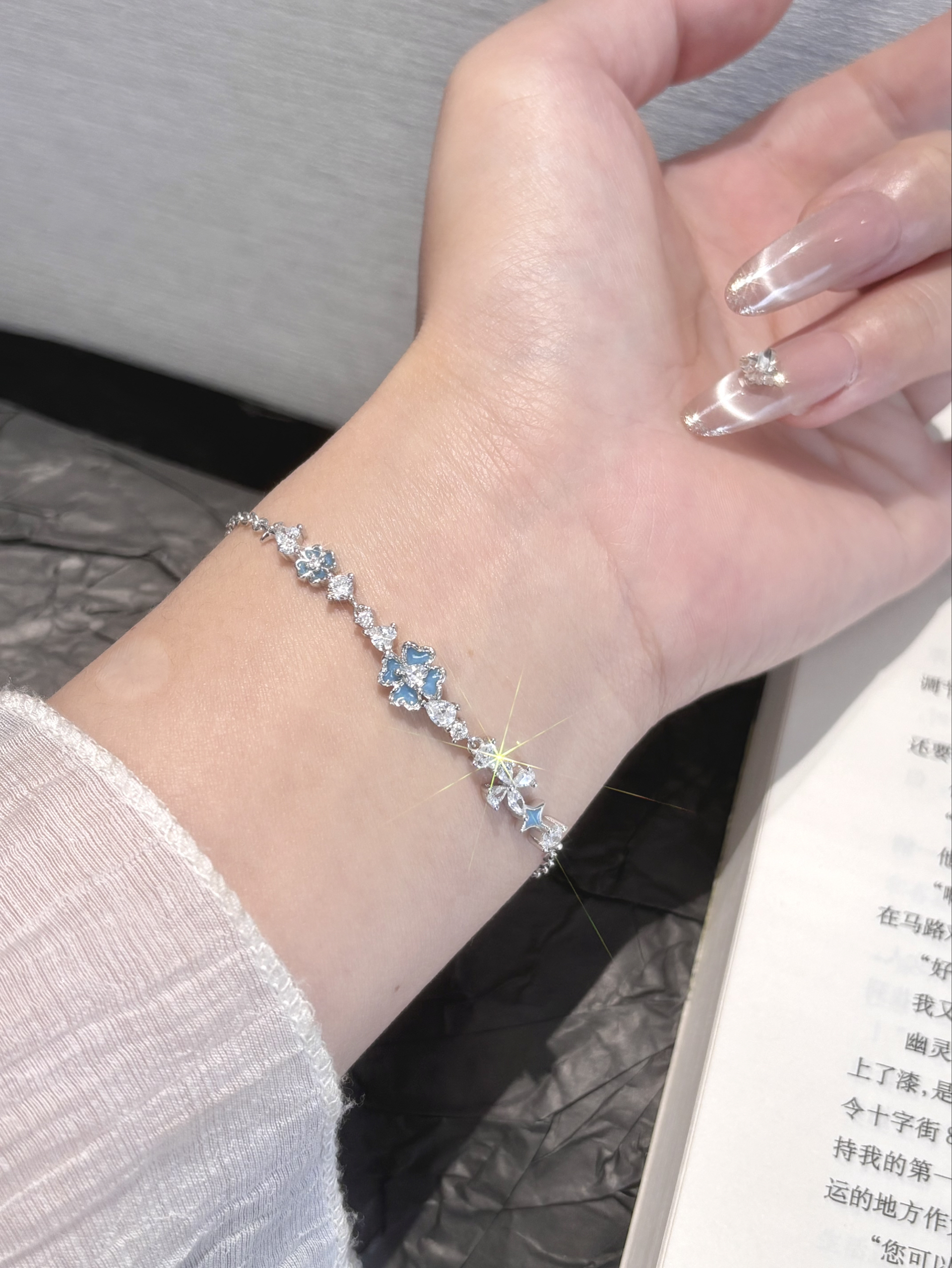 我日常的穿搭真的少不了这种小配饰 亮晶晶的在手上就很有存在感哎 每条的款式都在我的审美上了 还是足银的洗澡戴着也不掉色哦 我不管是上班还是约会都会戴的 给自己多攒几条手链还能换着戴耶~