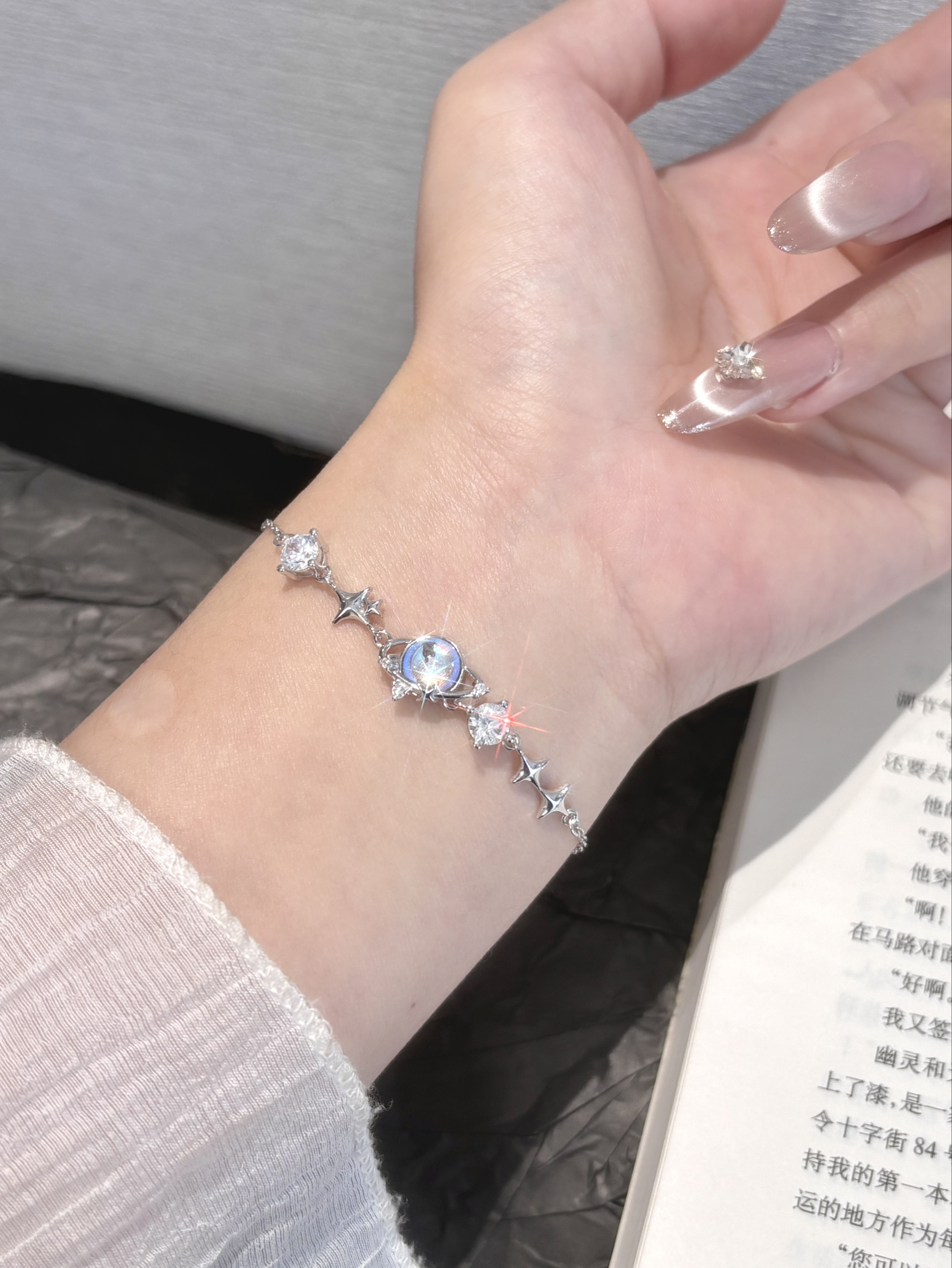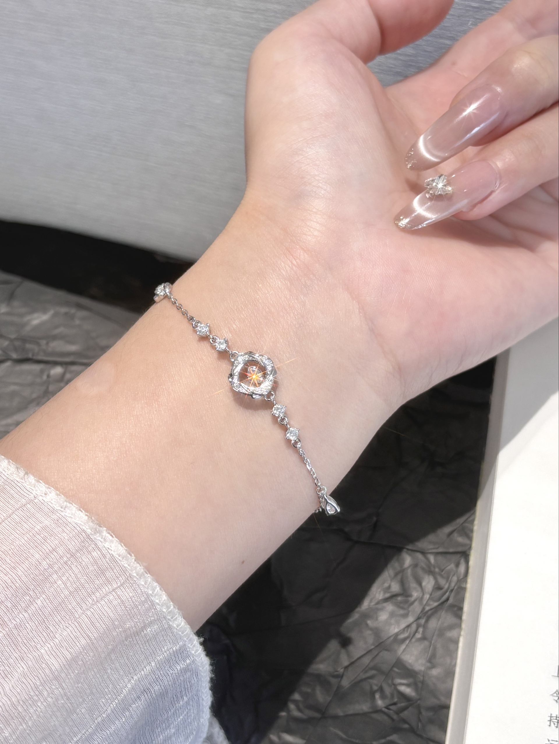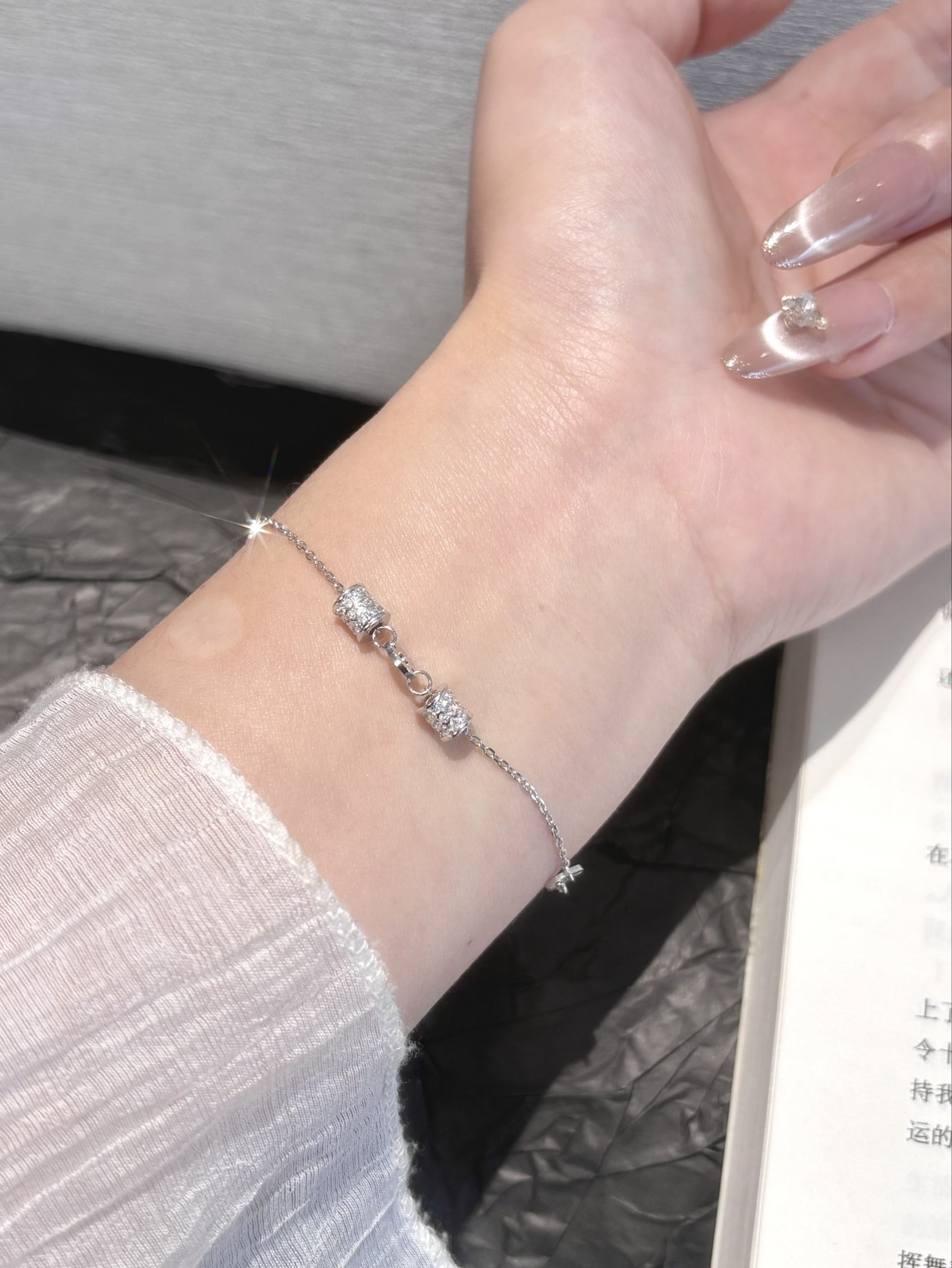 我日常的穿搭真的少不了这种小配饰 亮晶晶的在手上就很有存在感哎 每条的款式都在我的审美上了 还是足银的洗澡戴着也不掉色哦 我不管是上班还是约会都会戴的 给自己多攒几条手链还能换着戴耶~