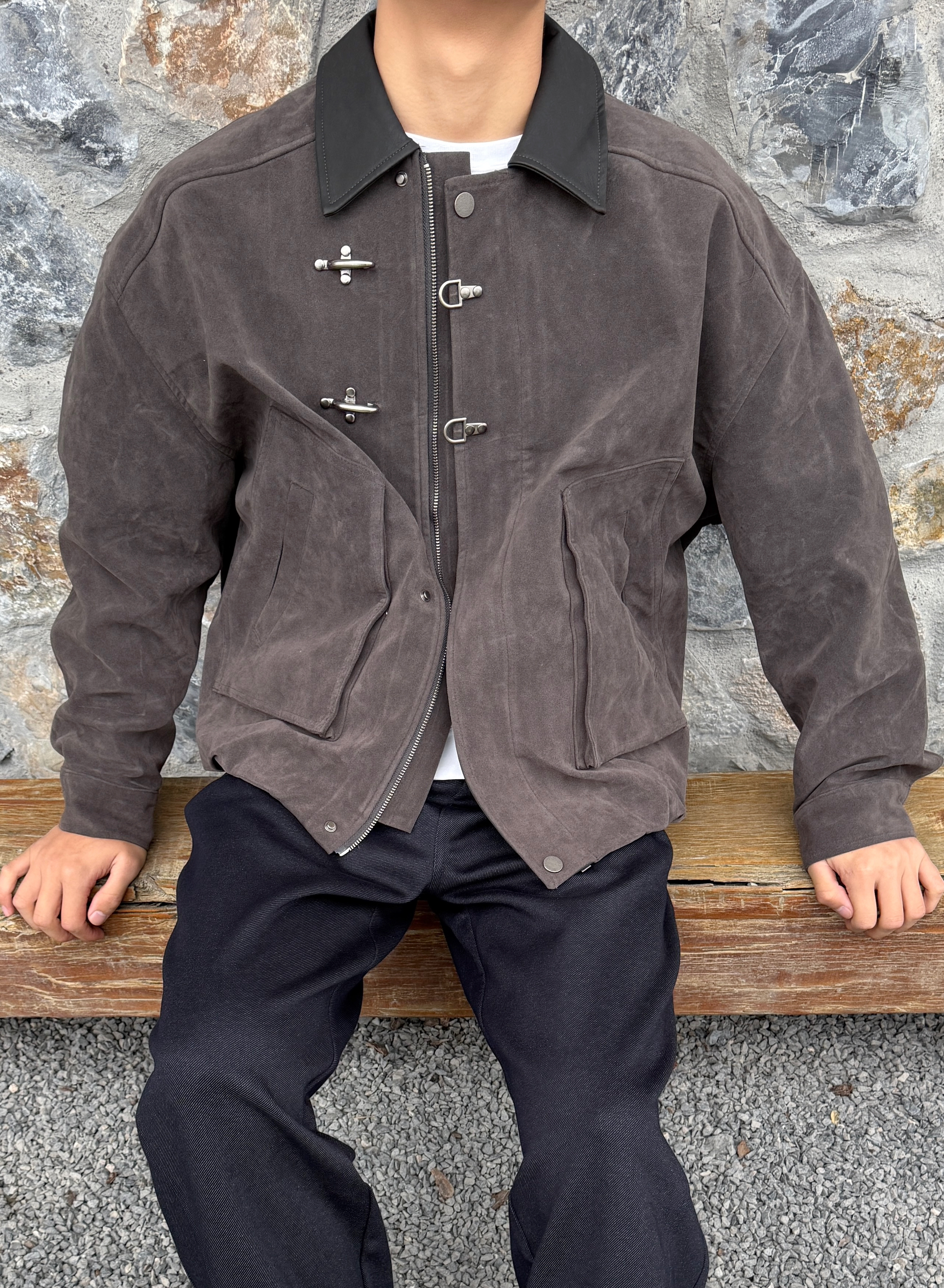 最近是真的喜欢翻领拼接夹克 关键是穿起来泰酷了🆒 今天我上身的是这件拼皮飞机扣夹克 面料是那种皮绒的看起来高级摸起来质感十足 我对这样的版型外套真没有抵抗力 微宽松短款的版型穿起来显高 飞机扣的时间真的是小众不简单 平常随便一穿都有个性,谁穿谁帅