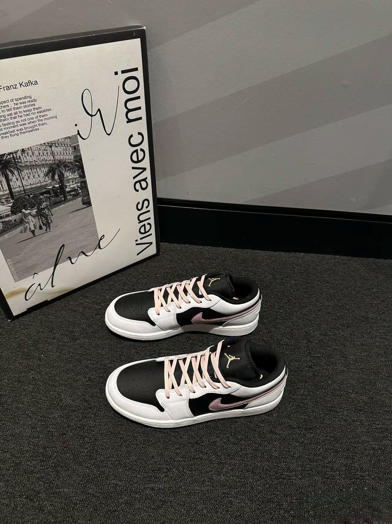 谁能拒绝这双把“甜酷”焊在鞋型上的AJ1黑白粉!黑白经典配色打底,点缀温柔烟粉色Swoosh与鞋带,撞色层次感直接拉满💥 鞋身采用优质皮革拼接,质感细腻又耐造;低帮设计清爽利落,搭配裙装甜妹感十足,配工装裤又酷飒随性,风格切换毫无压力~鞋舌处金色飞人Logo精致吸睛,细节控狂喜✨ 不管是日常出街、校园通勤还是和小姐妹逛展,它都能稳稳hold住C位,让你在人群中轻松脱颖而出。这样一双...