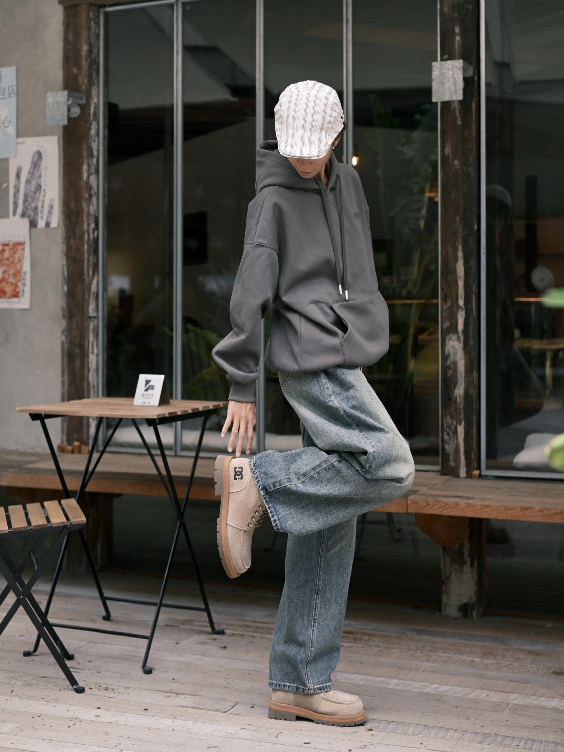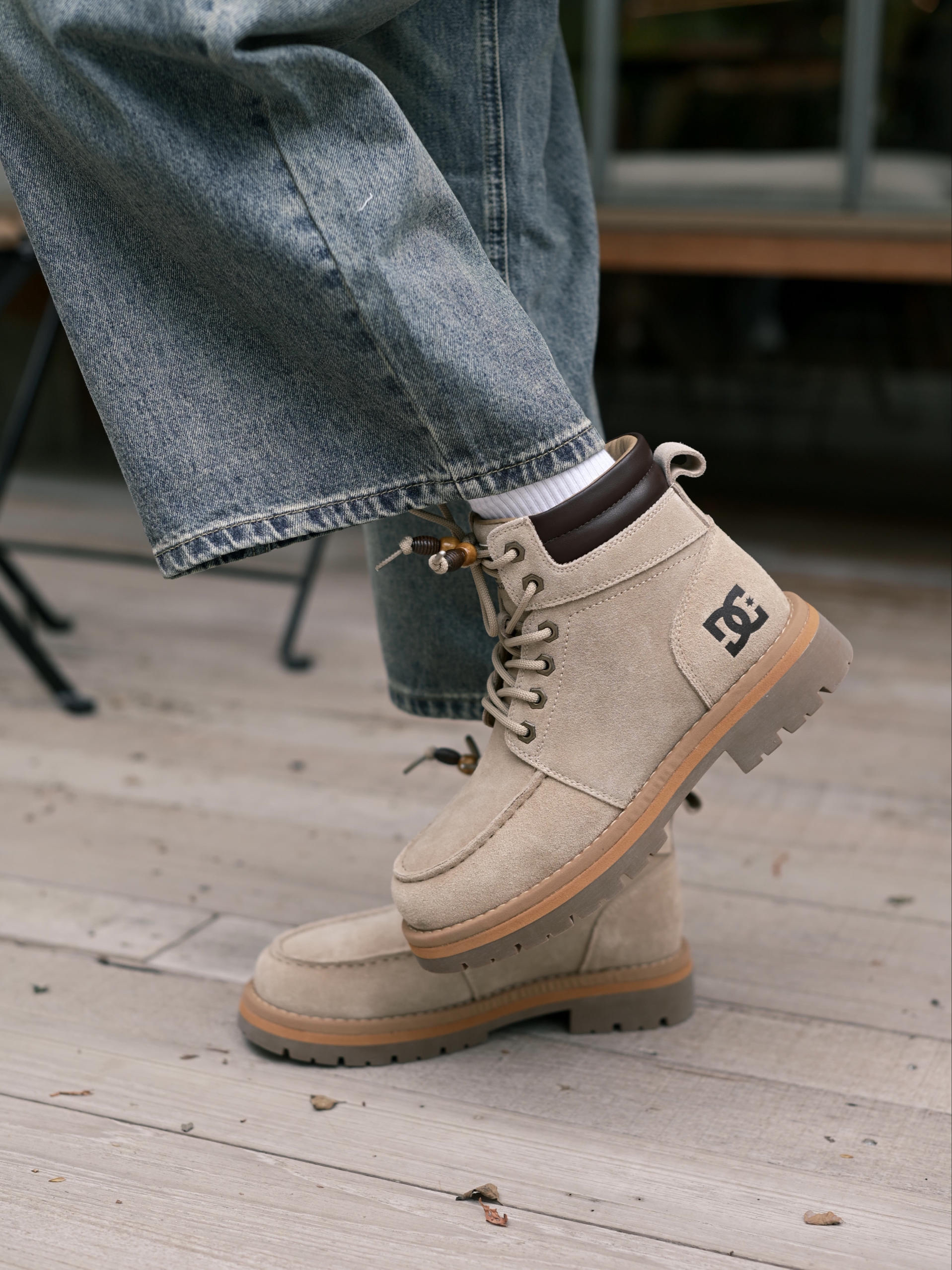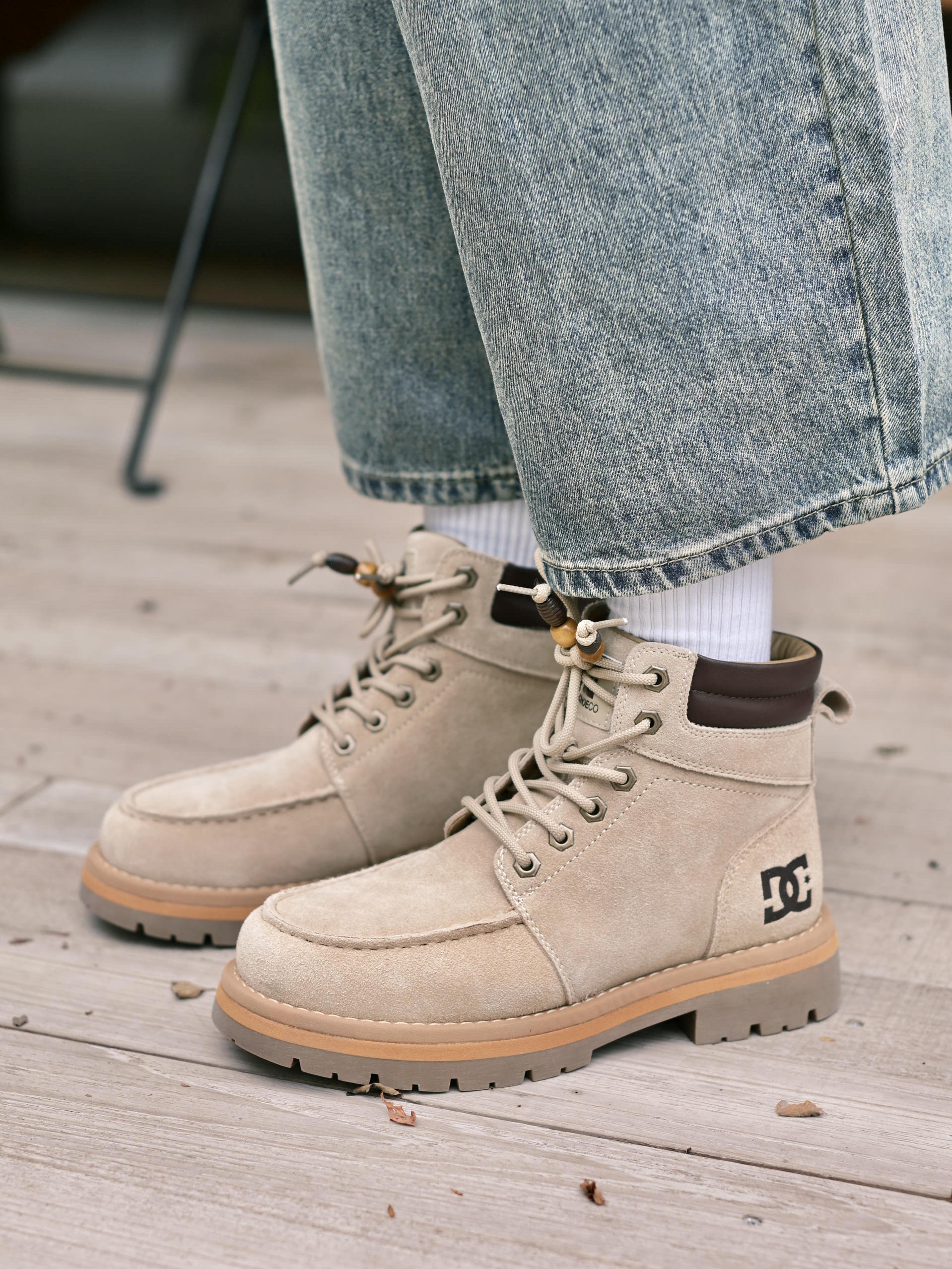 欢迎进入哇哇哇的穿搭分享频道 172CM|55KG 👔:m👖:m|👟:39码 上脚DC Shoes大黄靴秋冬搭配的宝藏单品耶✌️ 绒面材质质感在线,加上个性木质珠扣 ! 细节处处都是亮点。✨ 上身灰色系卫衣➕复古牛仔裤 整体慵懒又时髦的呀! 轻松打造不费力的秋冬潮流感。