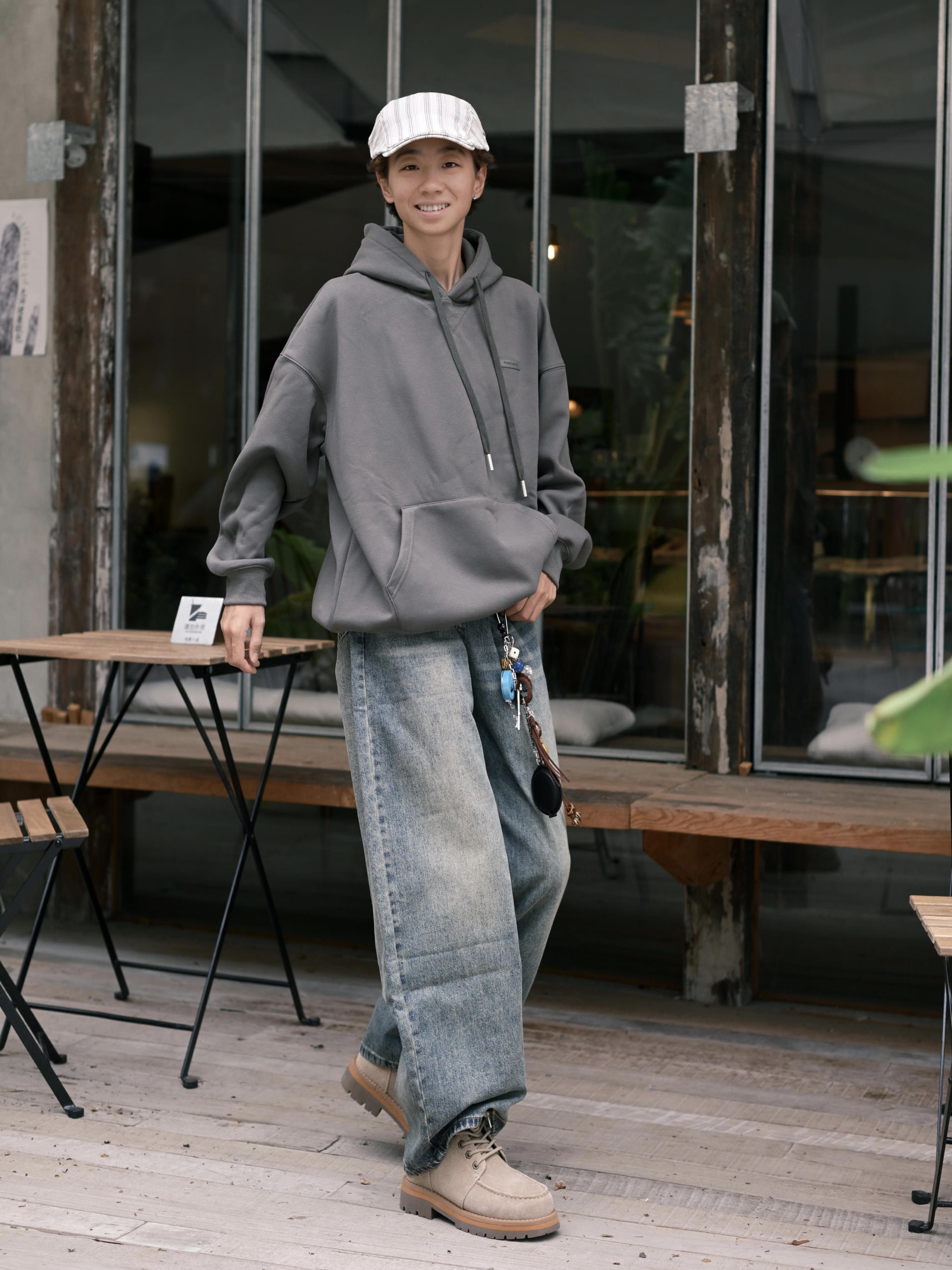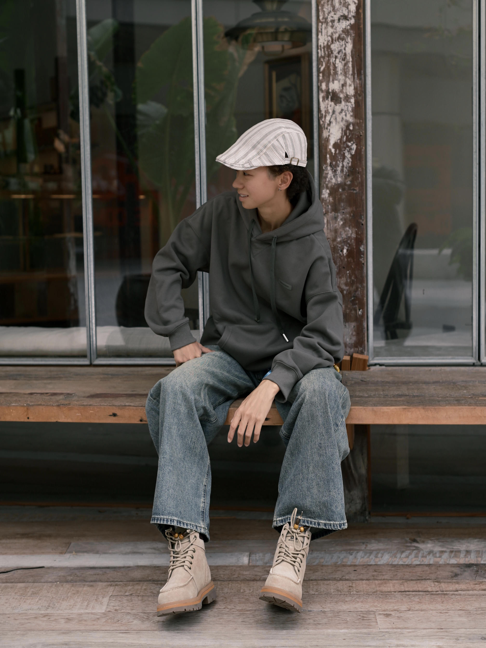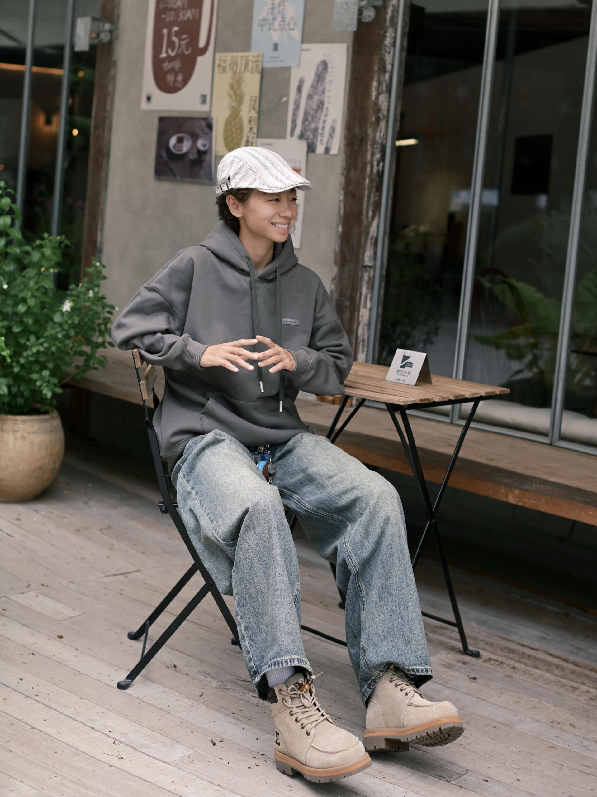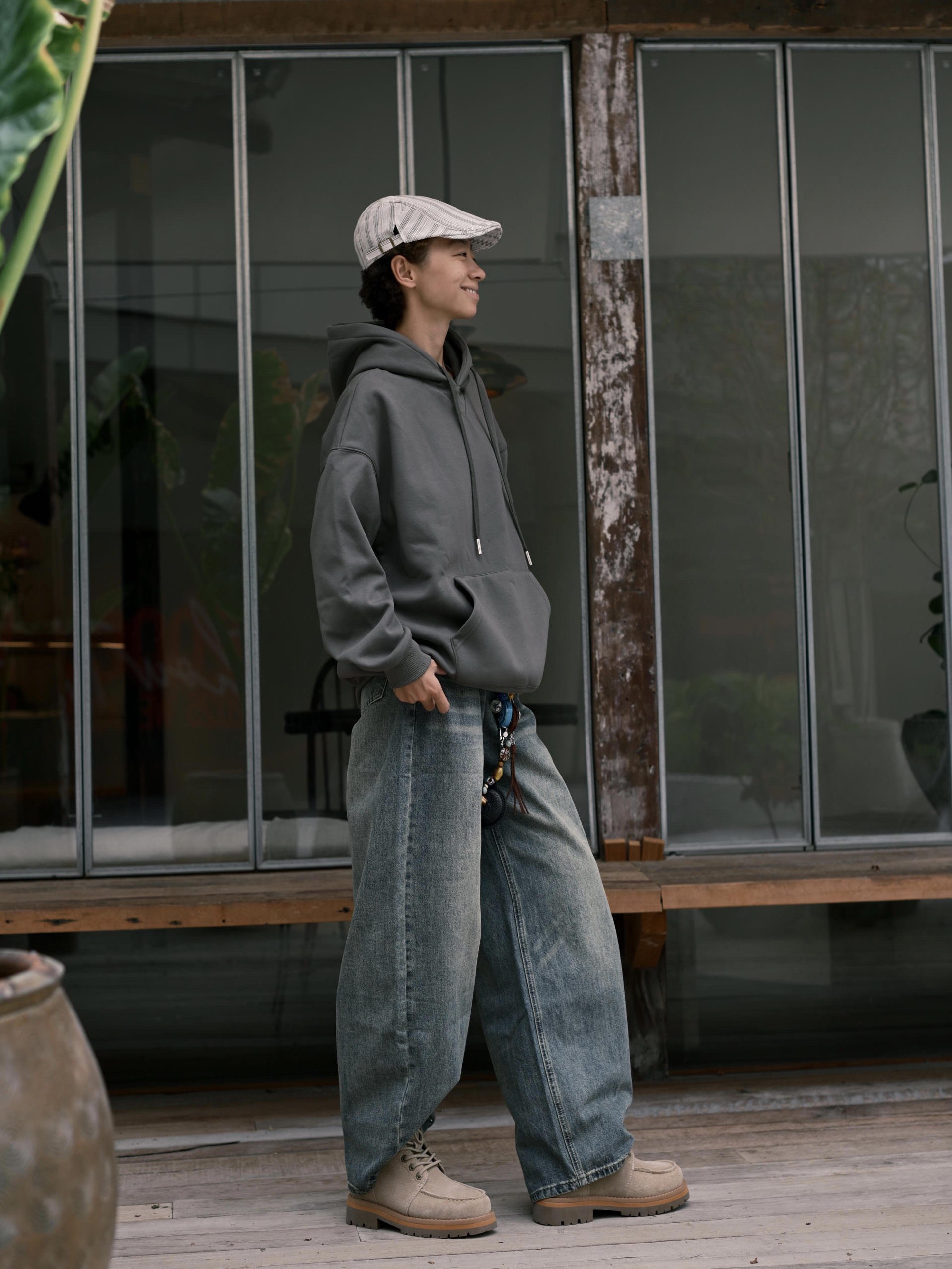 欢迎进入哇哇哇的穿搭分享频道 172CM|55KG 👔:m👖:m|👟:39码 上脚DC Shoes大黄靴秋冬搭配的宝藏单品耶✌️ 绒面材质质感在线,加上个性木质珠扣 ! 细节处处都是亮点。✨ 上身灰色系卫衣➕复古牛仔裤 整体慵懒又时髦的呀! 轻松打造不费力的秋冬潮流感。