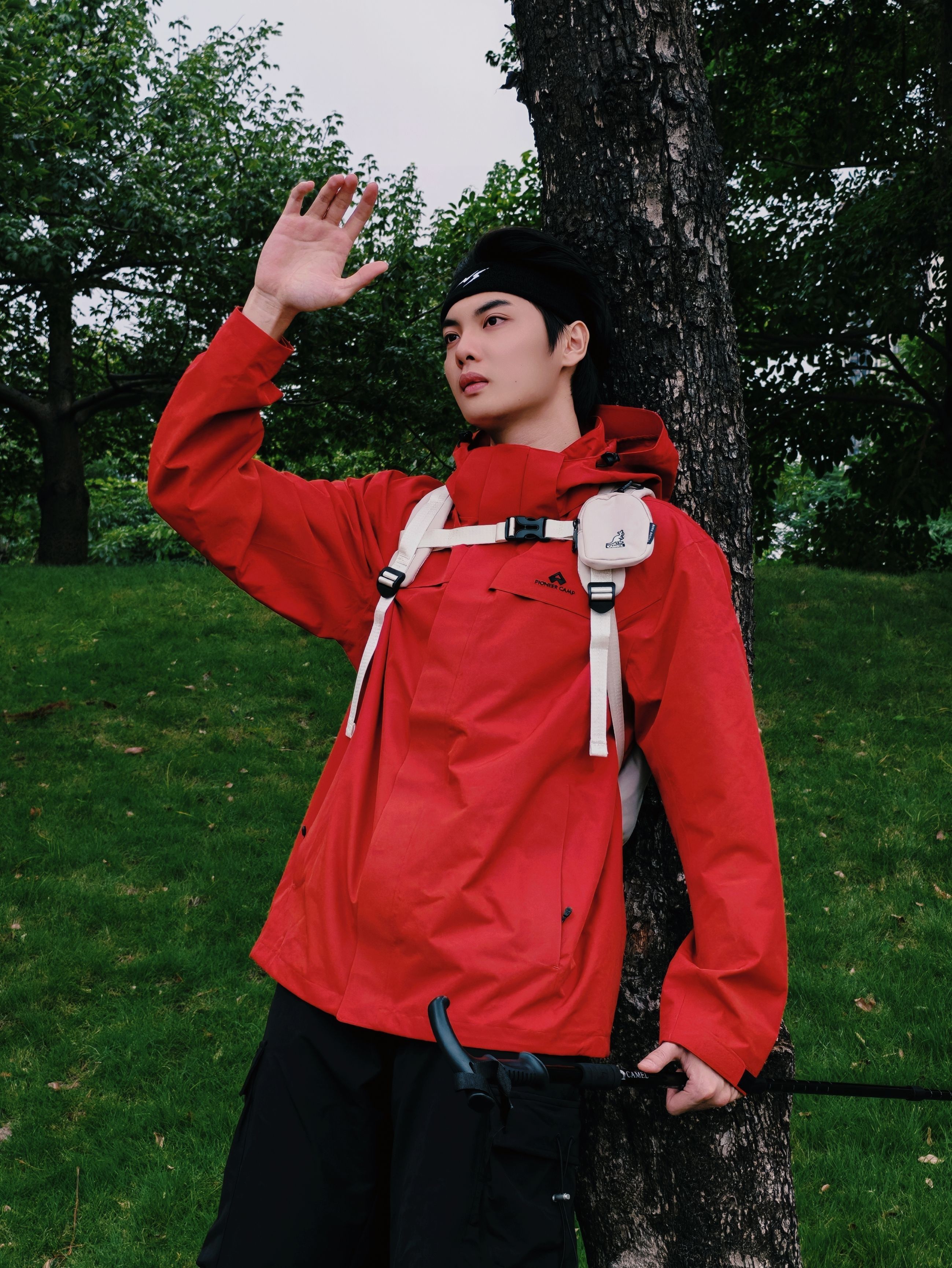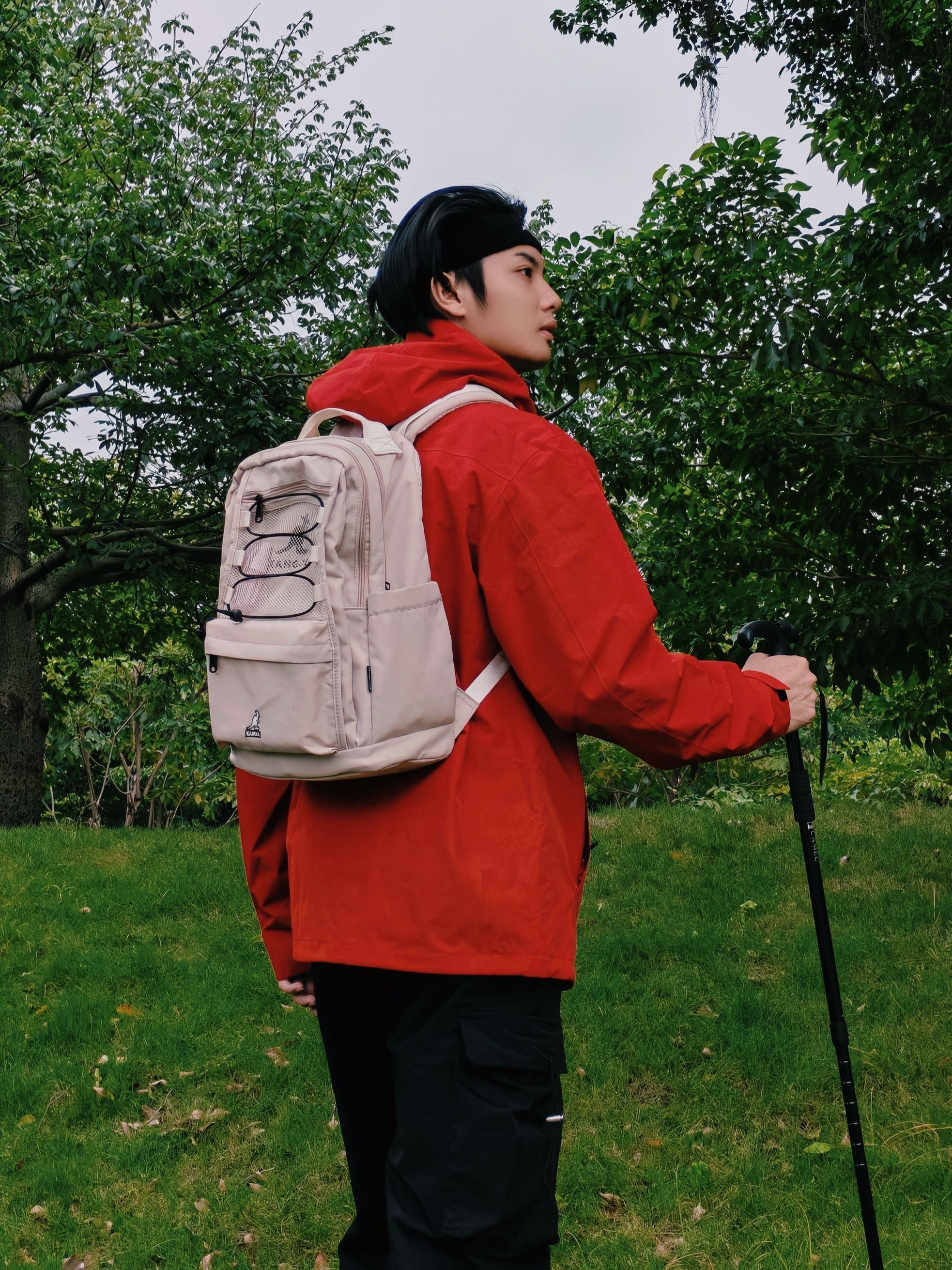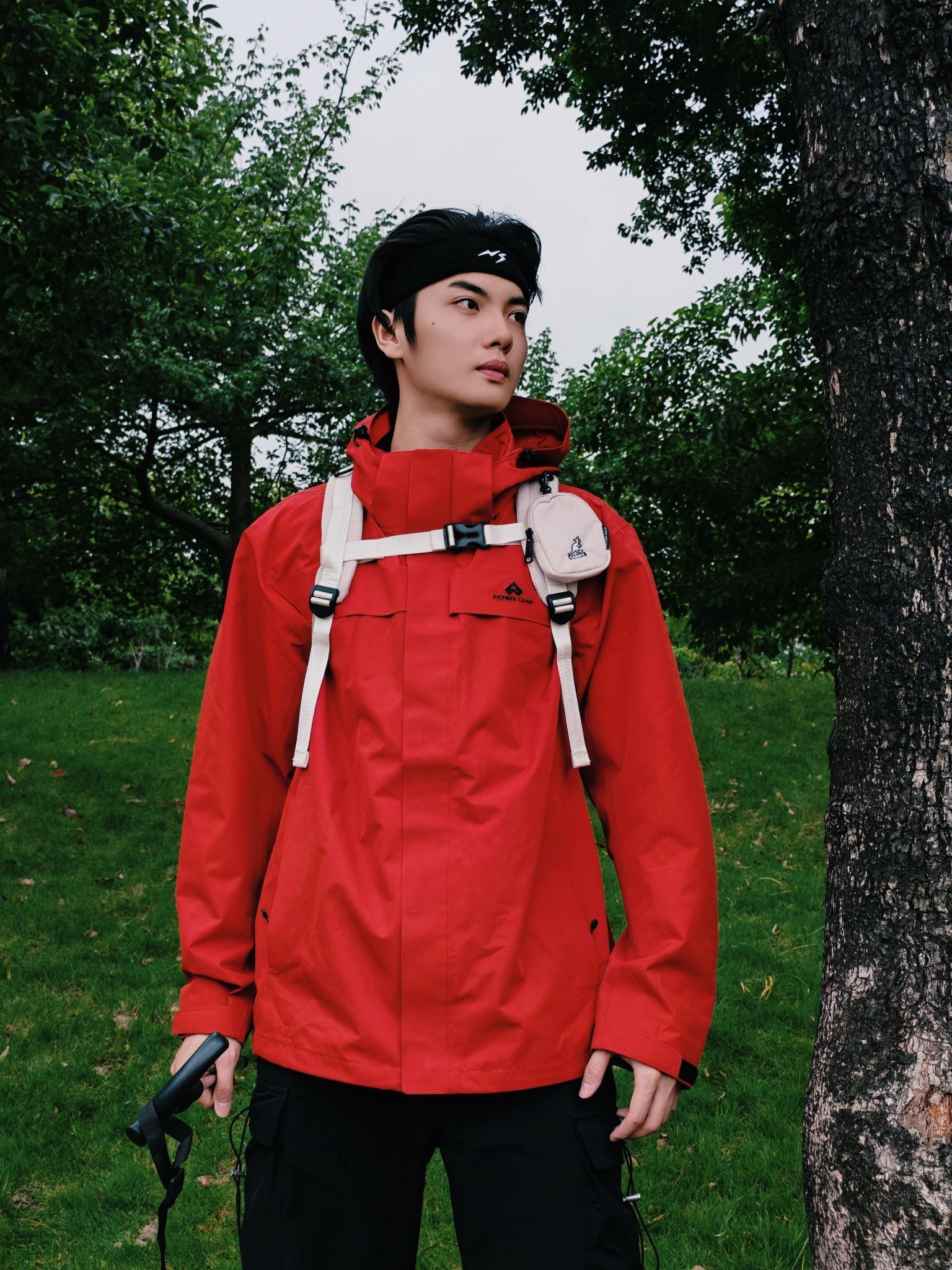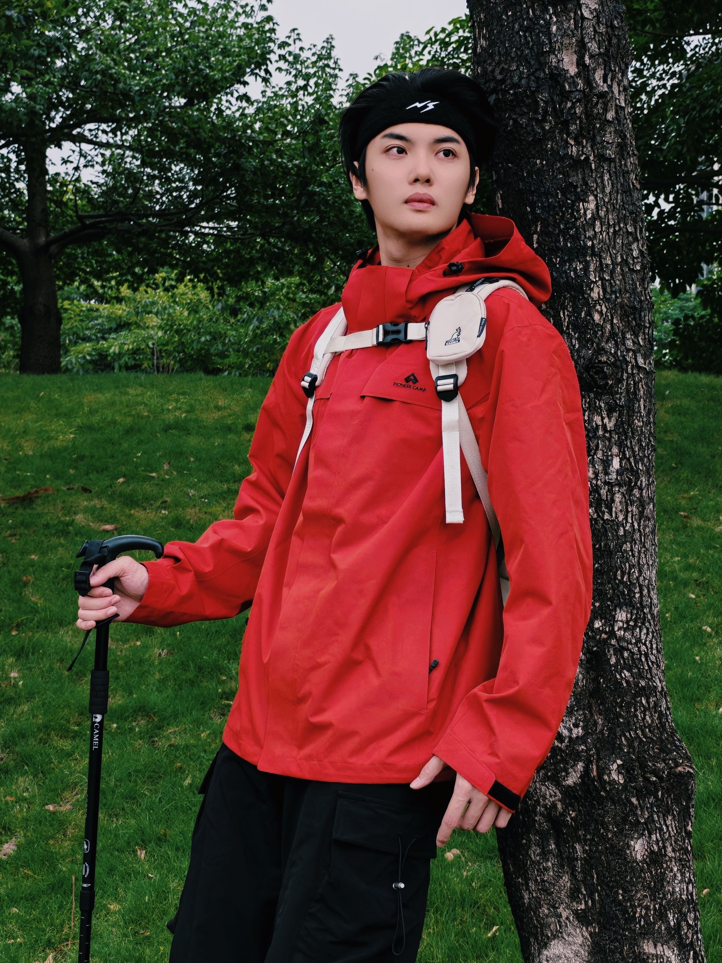 这套山系机能风穿搭把户外实用性和潮流感结合得绝绝子! 亮红色冲锋衣是视觉焦点,高饱和度色调在户外场景超吸睛,防风防水的材质应对多变天气很靠谱~ 搭配黑色多袋工装裤,功能性口袋+利落剪裁,山系感拉满。 配饰也很有心思:黑色闪电发带增加潮酷细节,米色机能小包+骆驼登山杖,实用又契合风格,徒步时放个手机、钥匙很方便~ 这种穿搭不管是周末近郊徒步,还是城市户外风出街,都能轻松hold住,喜...