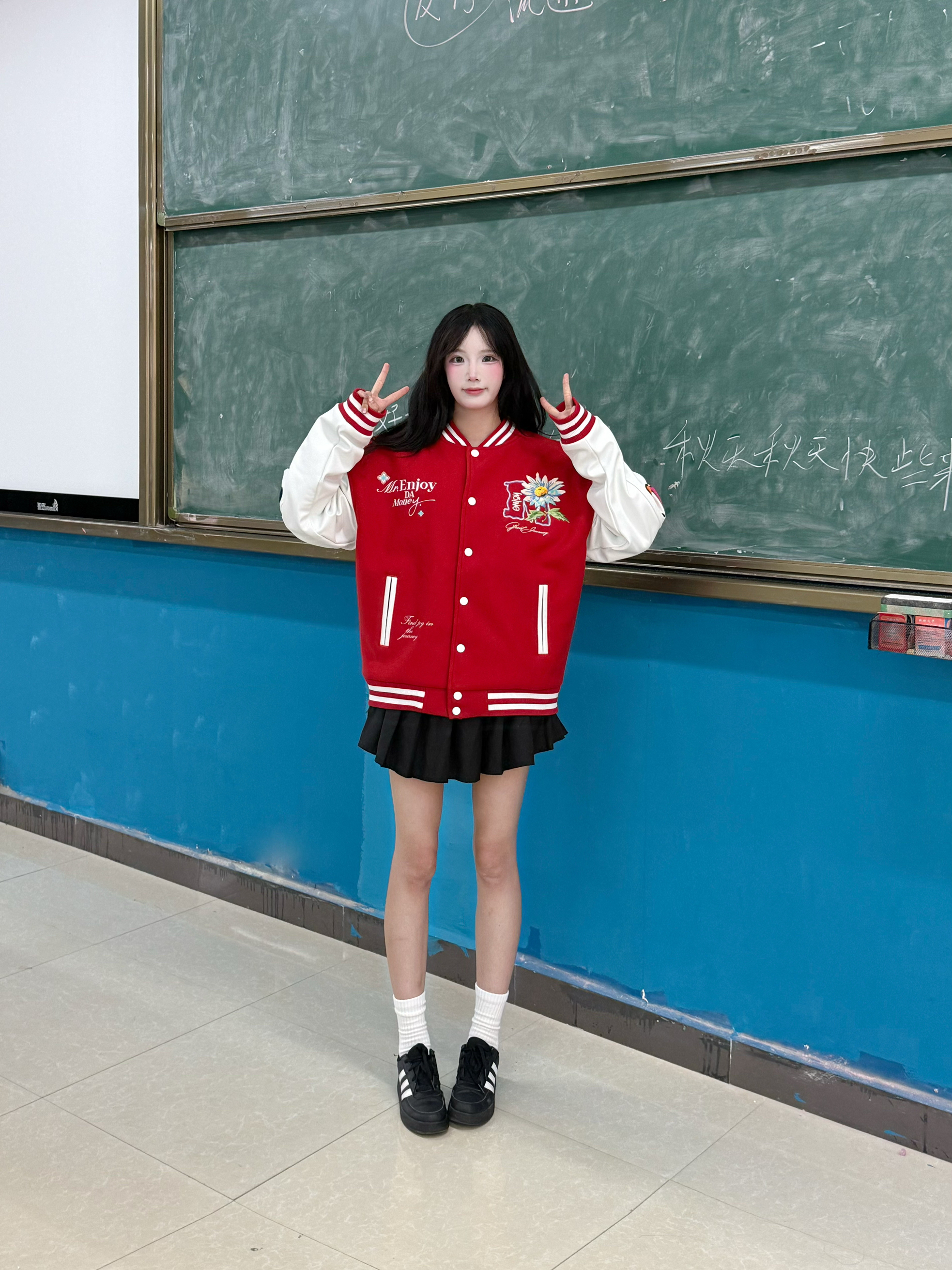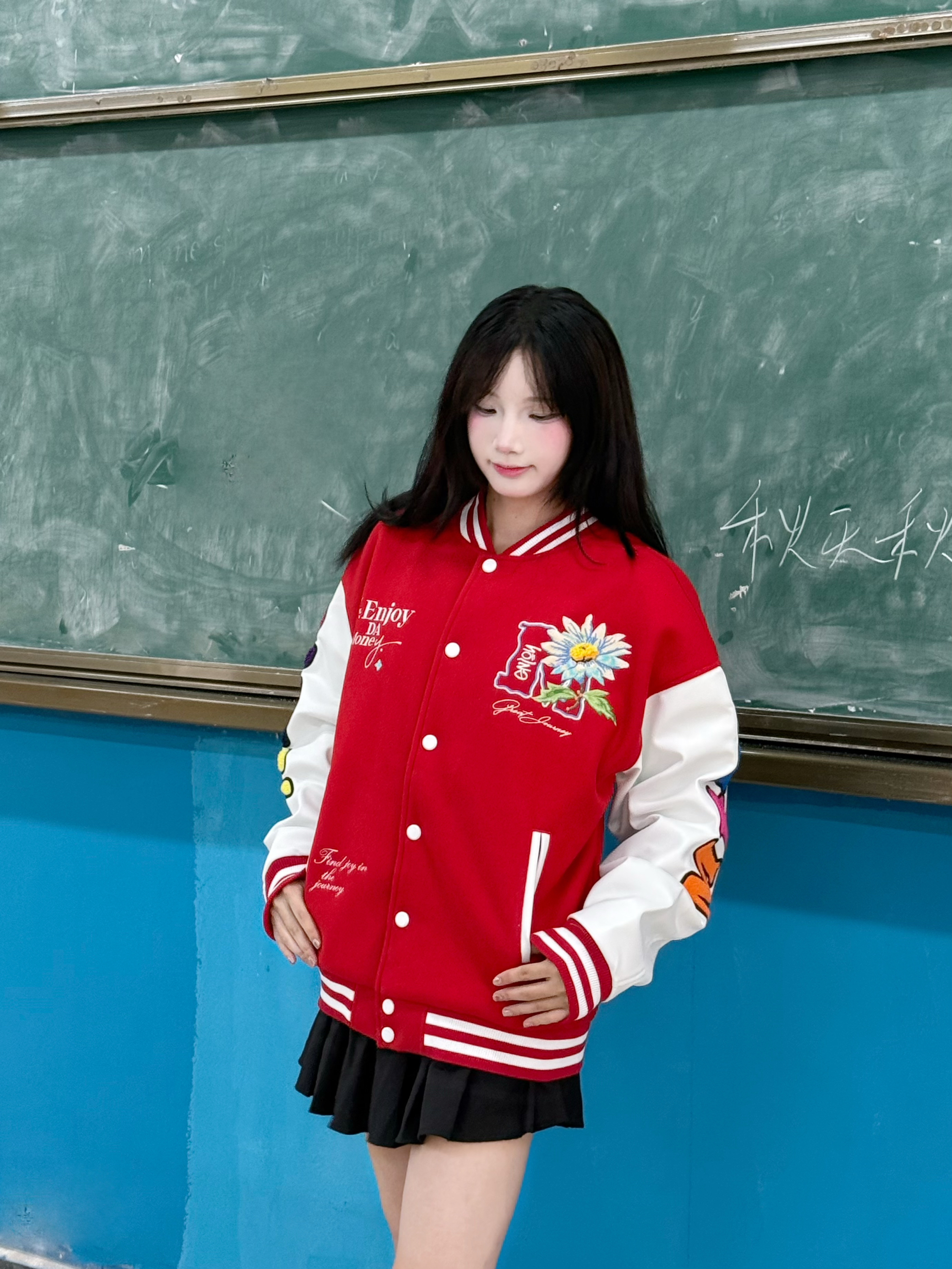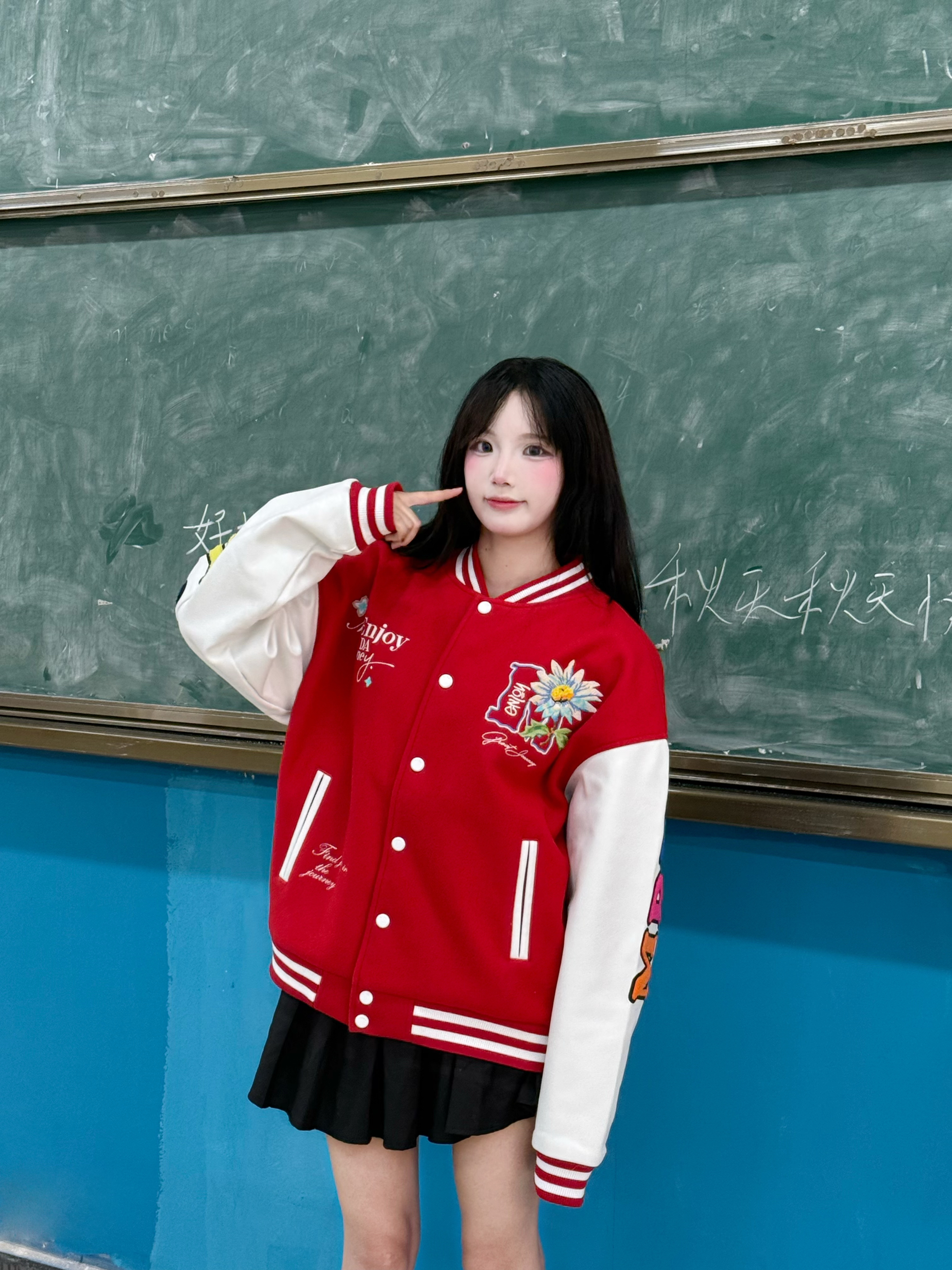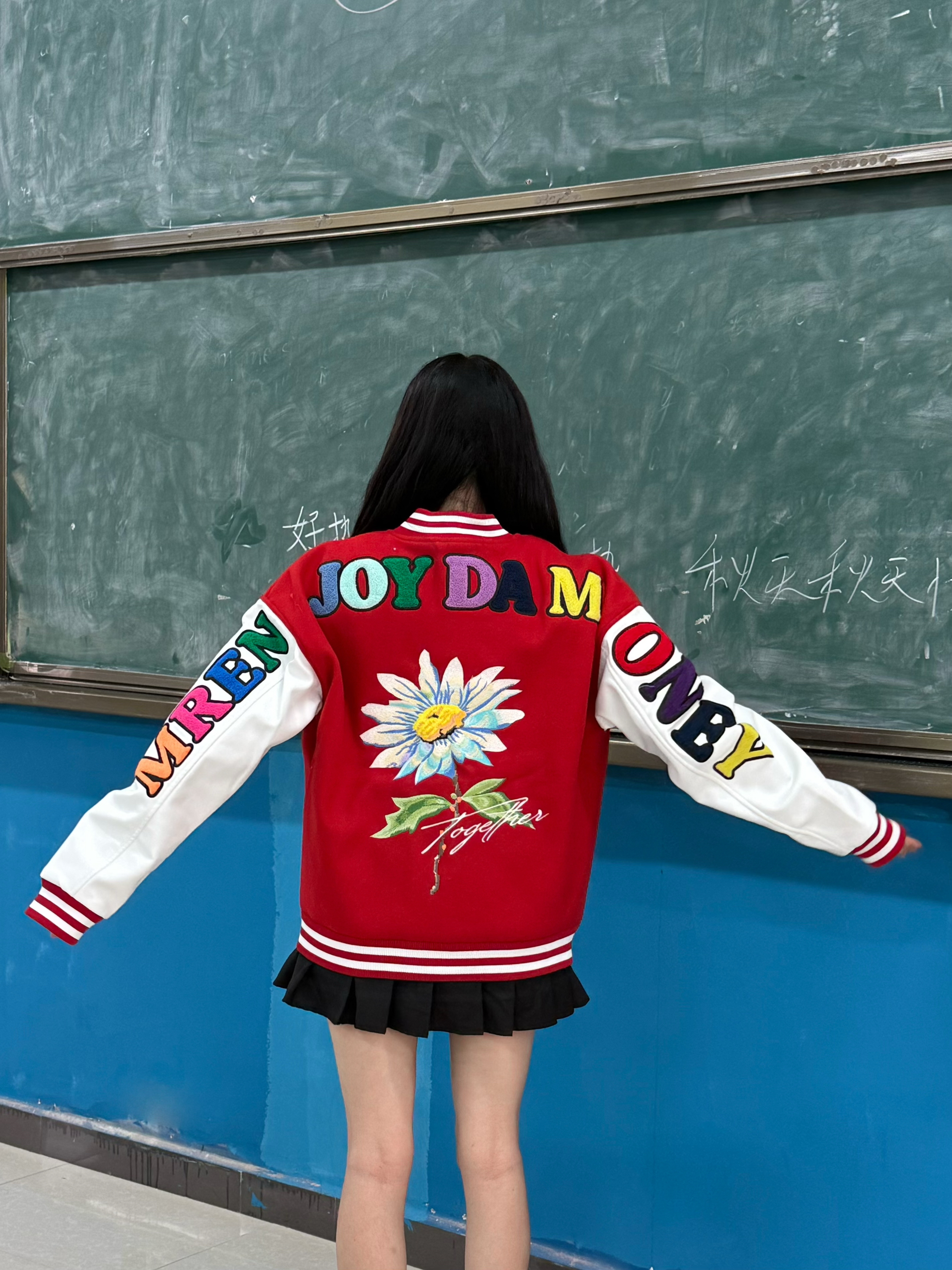 今天穿什么 今天穿 MEDM FW25 花卉雏菊 红色棒球服外套 ➕ 黑色短裙 今日份秋日甜酷穿搭 ☆*:.。. o(≧▽≦)o .。.:*☆ 秋季穿红色外套更有少年感 一整个活力满满呢 衣服的刺绣工艺 洗衣服也不会洗掉而且很好看 秋冬穿在身上防风还暖和 160:90穿的m