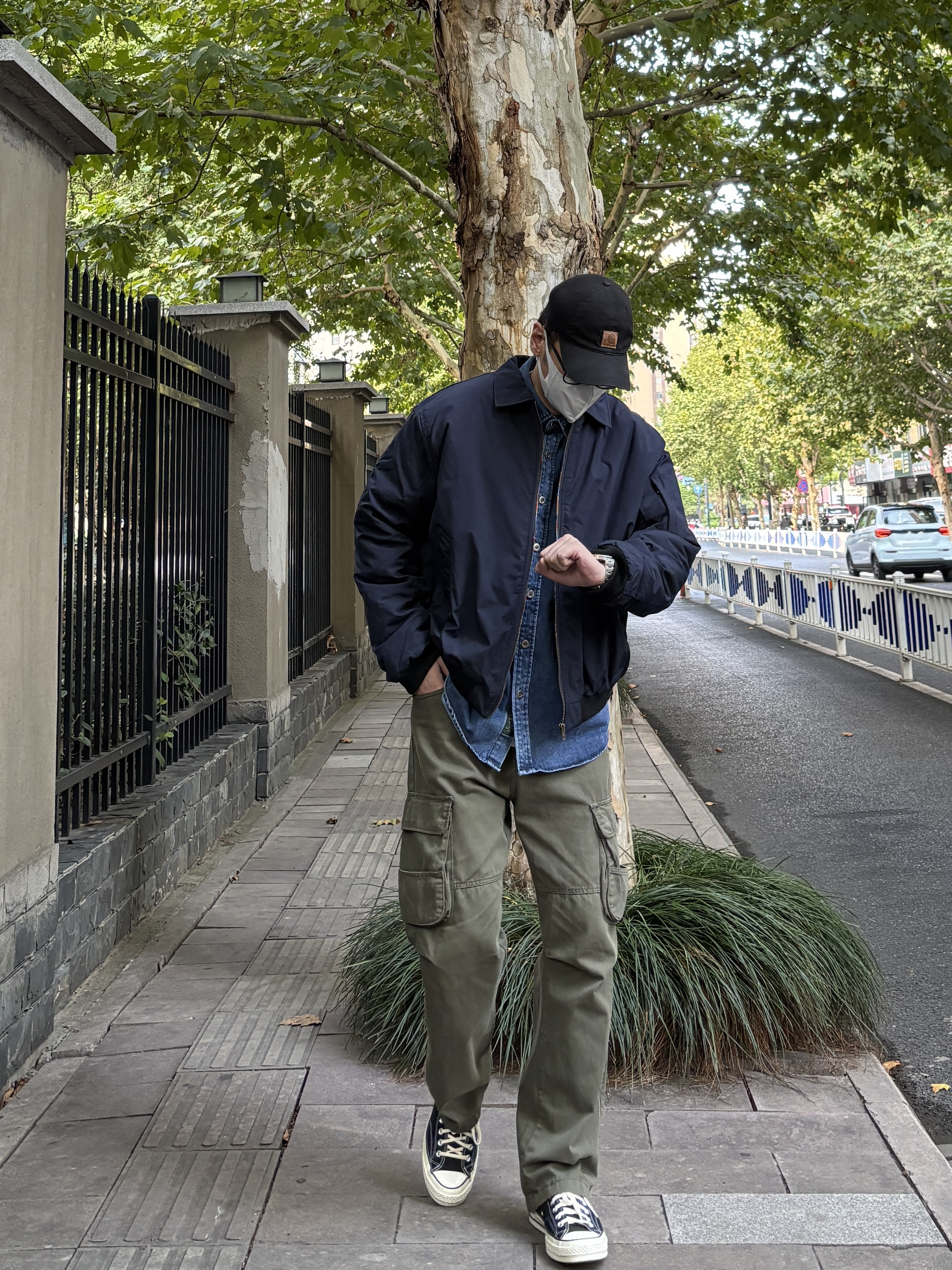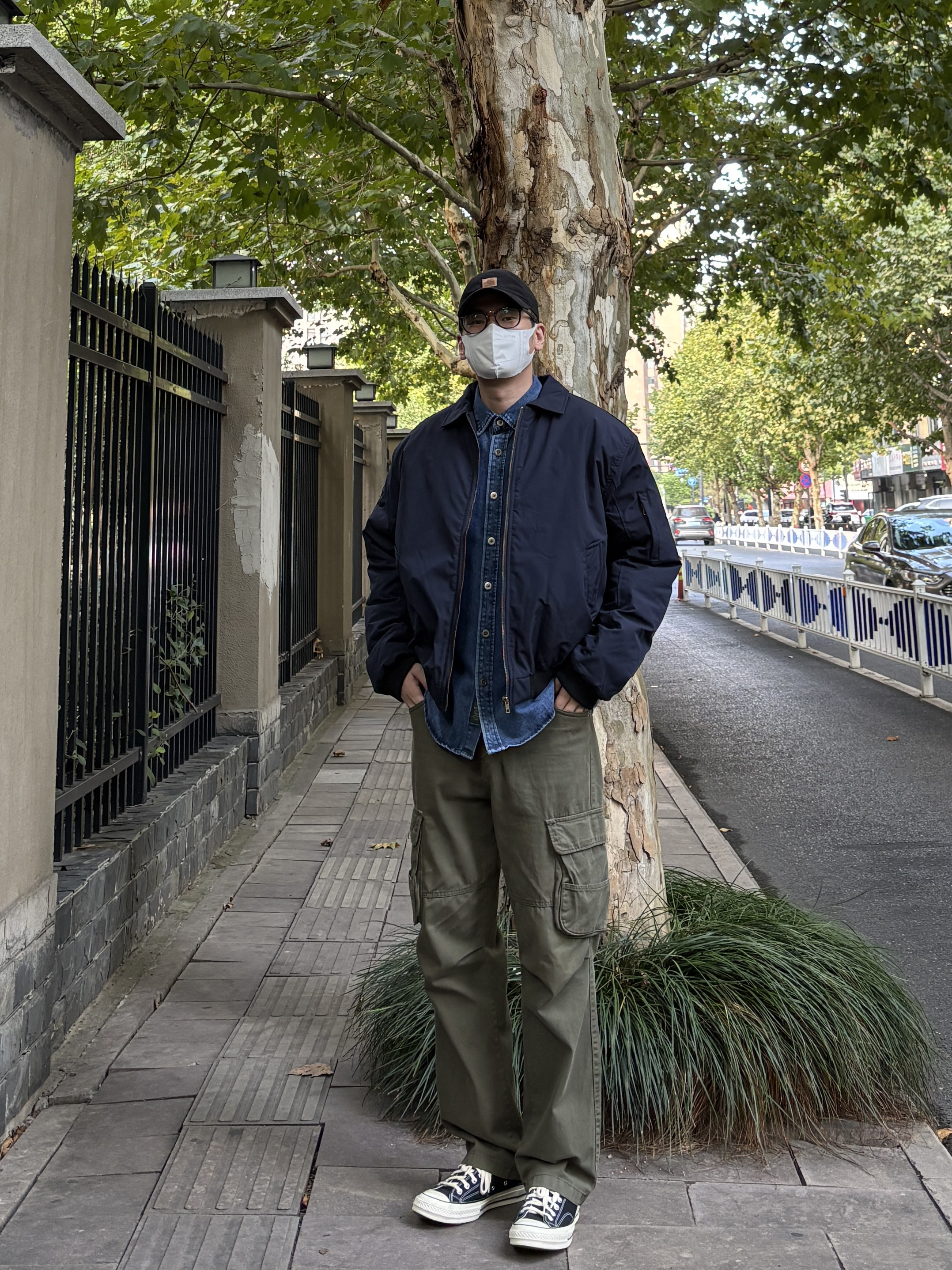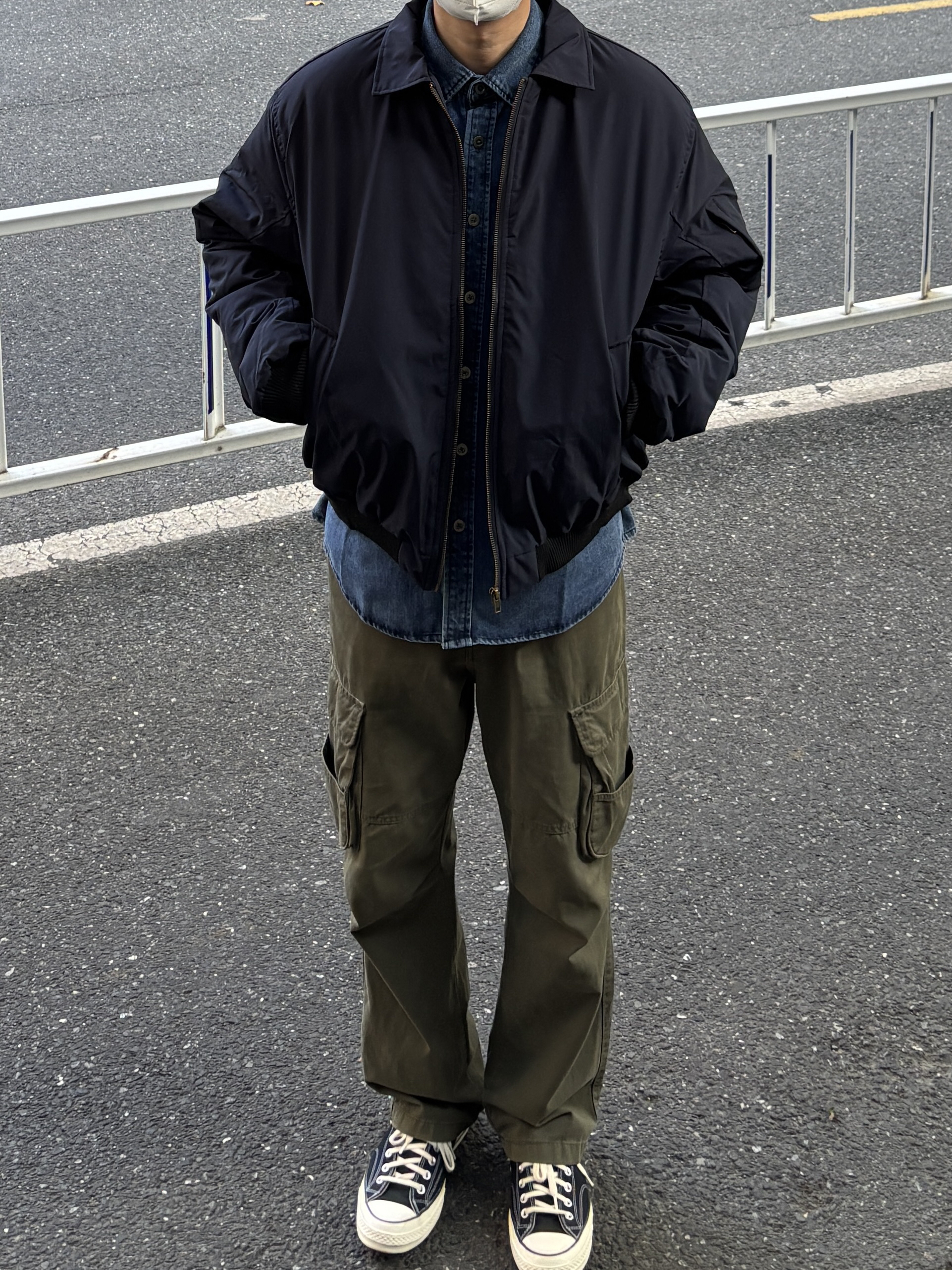 秋冬叠穿一定离不开一件牛仔衬衫。 蓝色牛仔衬衫搭配同色系藏青色飞行员棉服夹克,再选一条军绿色多口袋直筒工装裤,最后穿双黑白帆布鞋。 太喜欢这种复古工装outfit了,经典不过时!怎么穿都很帅。 - 今日穿搭 衣服裤子:NICE LILI 鞋子:匡威1970s黑白