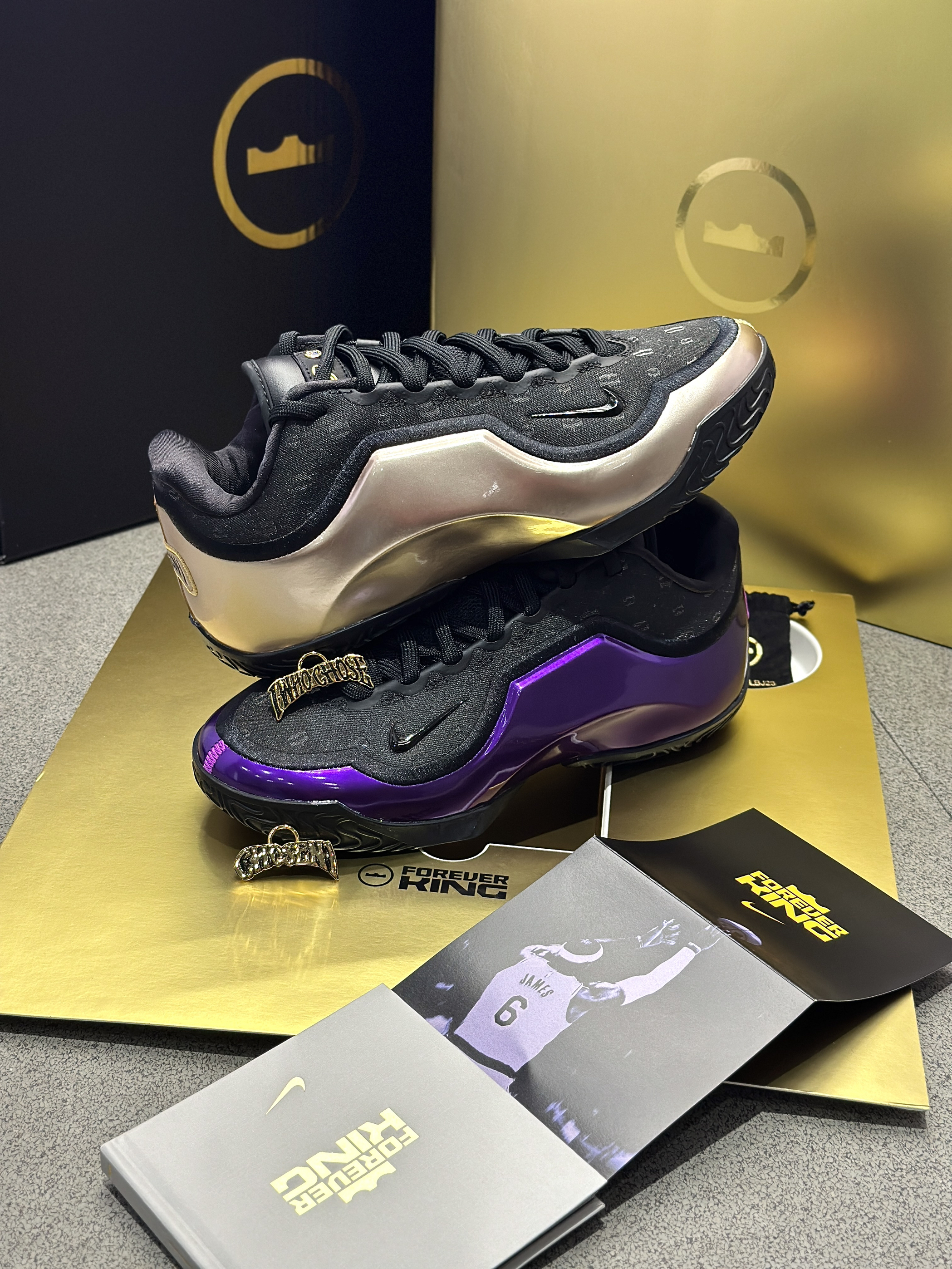 勒布朗詹姆斯23代战靴更新!🆕 金色礼盒,依旧是詹皇的规格!天意与决意配色灵感~ 为了纪念詹姆斯亲儿子布朗尼也被湖人队选中,父子同台竞技!🏀 紫金湖人鸳鸯配(天意詹姆斯:金色|决意布朗尼:紫色) 詹蜜别错过~😍