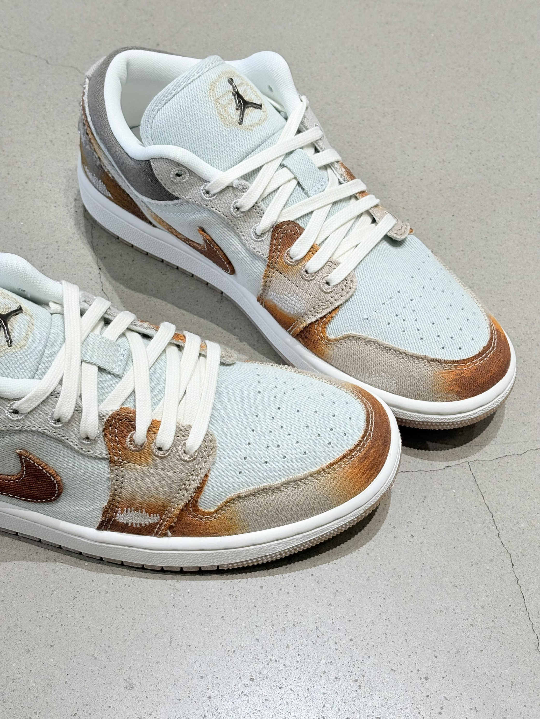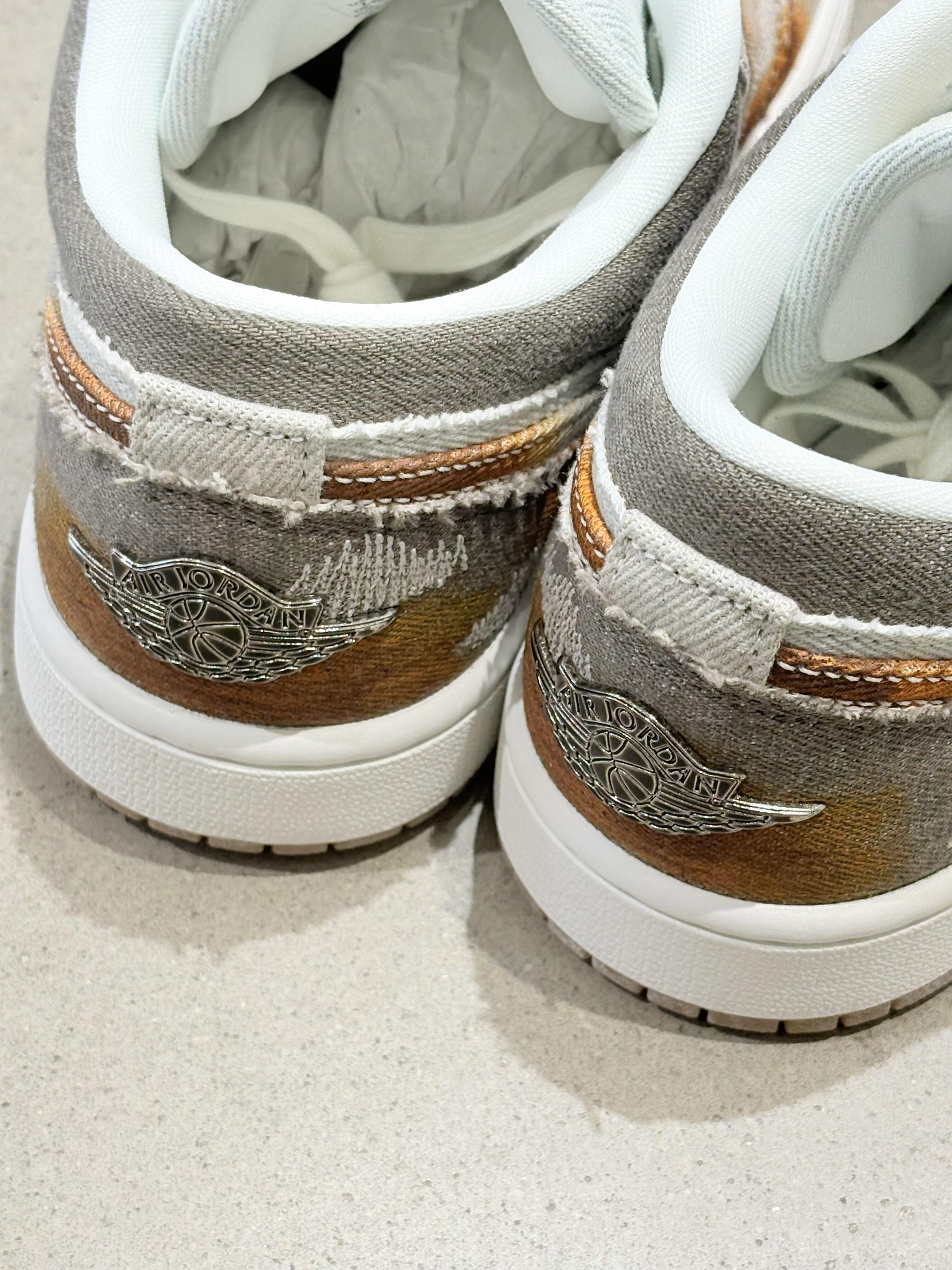 家人们谁能信,我蹲点抢的这双鞋,逛潮牌店被老板拽着问:“这做旧牛仔纹是你自己改的?比我家限定款还对味”! 上周穿这鞋逛潮牌街,刚摸了件牛仔外套,老板凑过来盯我脚:“你这鞋的蓝棕做旧,像把90年代牛仔裤穿脚上了!这飞人标都透着复古劲”!(社死但爽:我穿它走了一下午老街,牛仔面料软到没磨脚踝,鞋头的做旧纹越踩越有质感,回家擦灰时才发现浅色牛仔面居然没脏!) 有没有和我一样的“复古潮人党”?想穿得有...