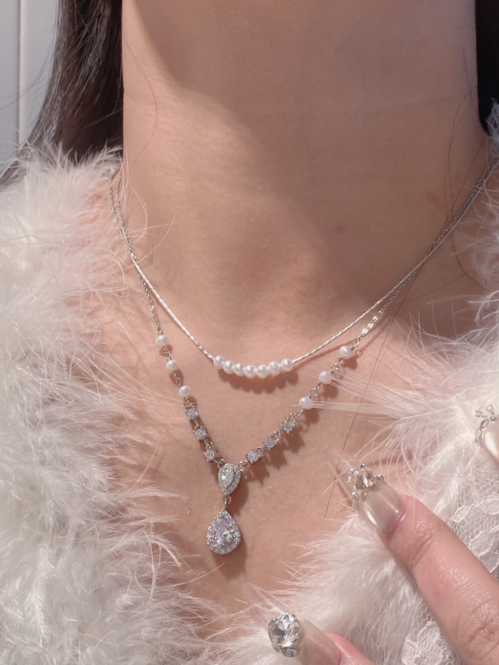 老凤祥这条叠戴双层项链应该人手一条吧~ 珍珠➕钻尊嘟爆闪啊 灯光下blingbling的好有少女心啊 我觉得初秋搭配上一些气质衣服好适合捏 约会我挺喜欢戴的,感觉挺耀眼的 礼盒也是挺精致的,送人尊嘟不要泰合适了