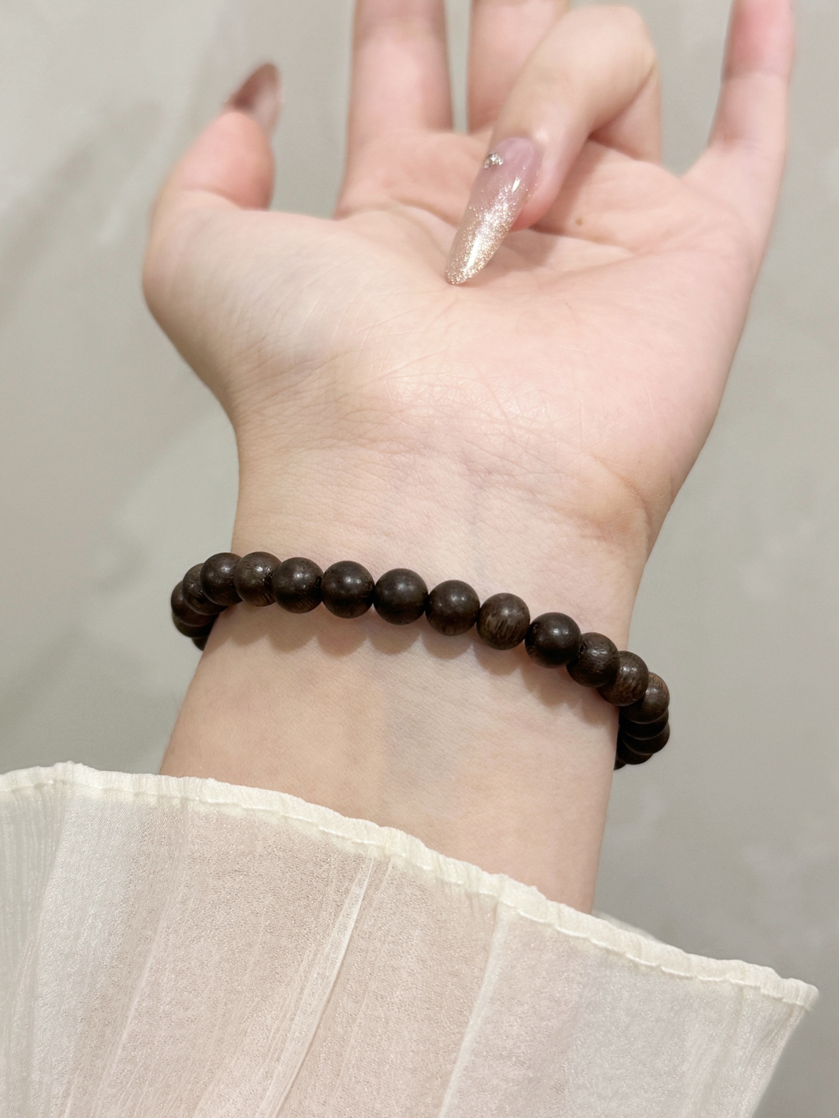 文玩的尽头当然是沉香啦~可以说这个味道事越闻越上头了! 很自然的高级香 戴了之后完全不用喷香水啦 特别治愈的味道 感觉戴上它心情都平和了很多呢 而且日常也很百搭呢 低调又很有质感 随便一件短袖也能新中式感满满呢 刚入文玩坑的一定不要错过这一条哇!