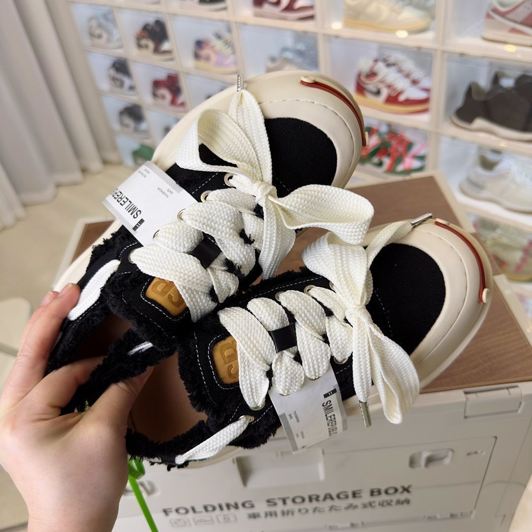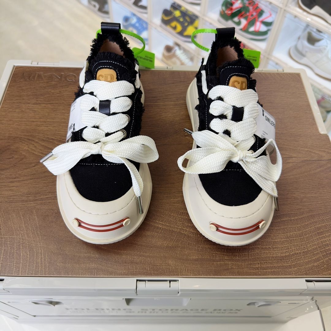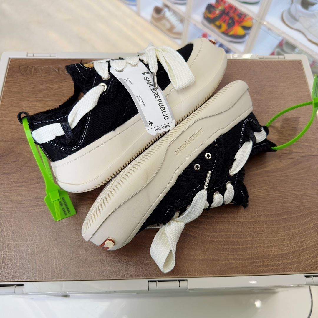𝐒𝐌𝐈𝐋𝐄𝐑𝐄𝐏𝐔𝐁𝐋𝐈𝐂檀健次同款经典新款起司猫低帮开口笑厚底帆布鞋 新晋街头鞋履品牌𝐒𝐌𝐈𝐋𝐄𝐑𝐄𝐏𝐔𝐁𝐋𝐈𝐂 𝐂𝐚𝐧𝐯𝐚𝐬 系列 以 𝐒𝐌𝐈𝐋𝐄 为灵感来源 捕捉潮流 主打柔软的帆布设计 有裁切的羊毛流苏与独特编织技艺 超软水染牛皮内里 注塑成型鞋垫 𝟒𝐜𝐦厘米外增高效果橡胶鞋底