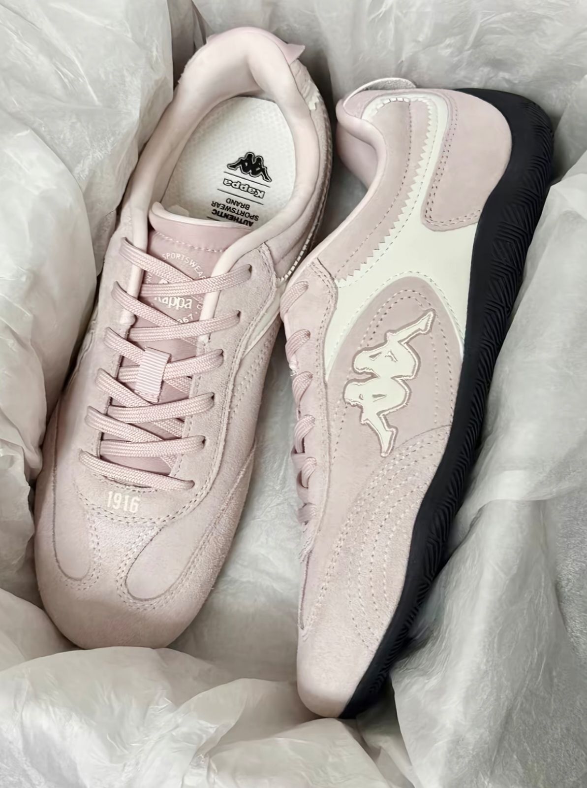 Kappa粉调鞋太温柔!麂皮质感+同色系标,粉白黑撞色清爽不腻,脚感软乎还百搭~