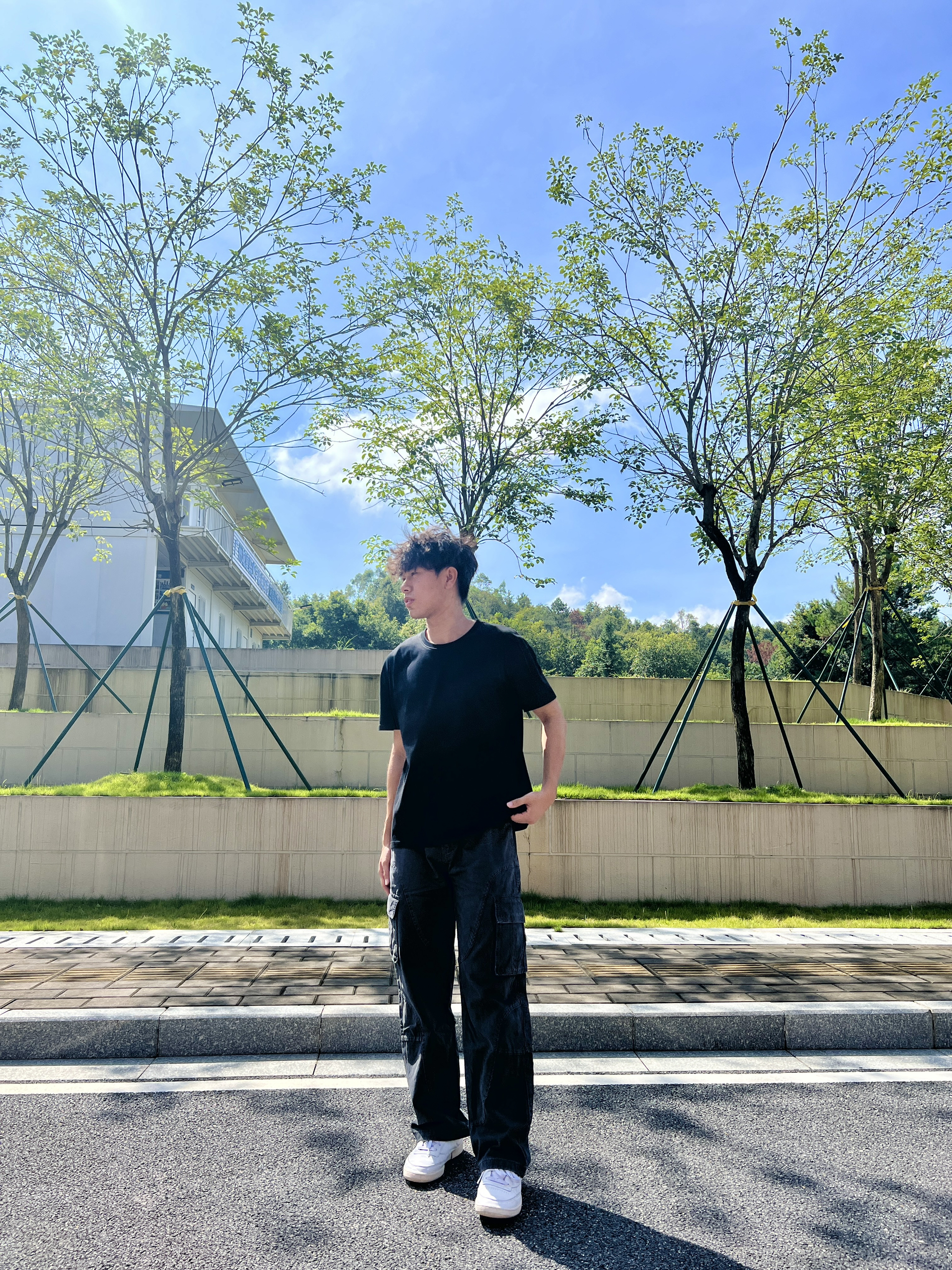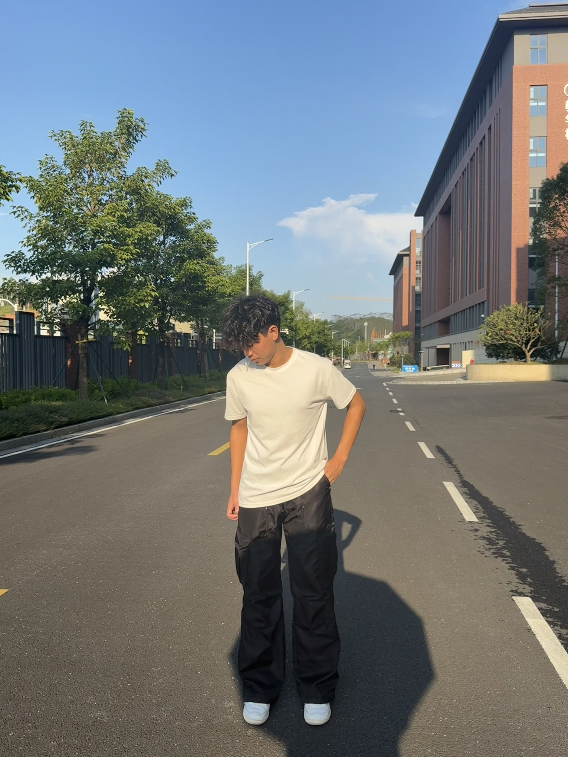 总以为时间很慢 可下一个冬天就要来了 白色基础款T恤:选重磅棉材质更挺括,可单穿或内搭,搭配时衣角微塞凸显腰线。 黑色工装阔腿裤:大口袋设计增加机能感,阔腿版型拉长腿部线条,裤脚盖住鞋跟显随性。 白色休闲鞋:与T恤形成色彩呼应,平衡工装裤的厚重感,整体打造简约又不失层次的日常穿搭风格。 评论区分享分享你们的穿搭吧