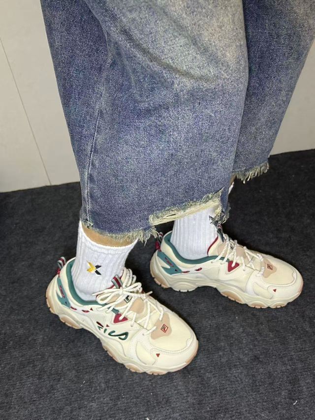 今天穿的是斐乐猫爪4老爹鞋🐾#FILA 我选的米色,还挺基础百搭的 它是厚底,但我穿起来没觉得笨重