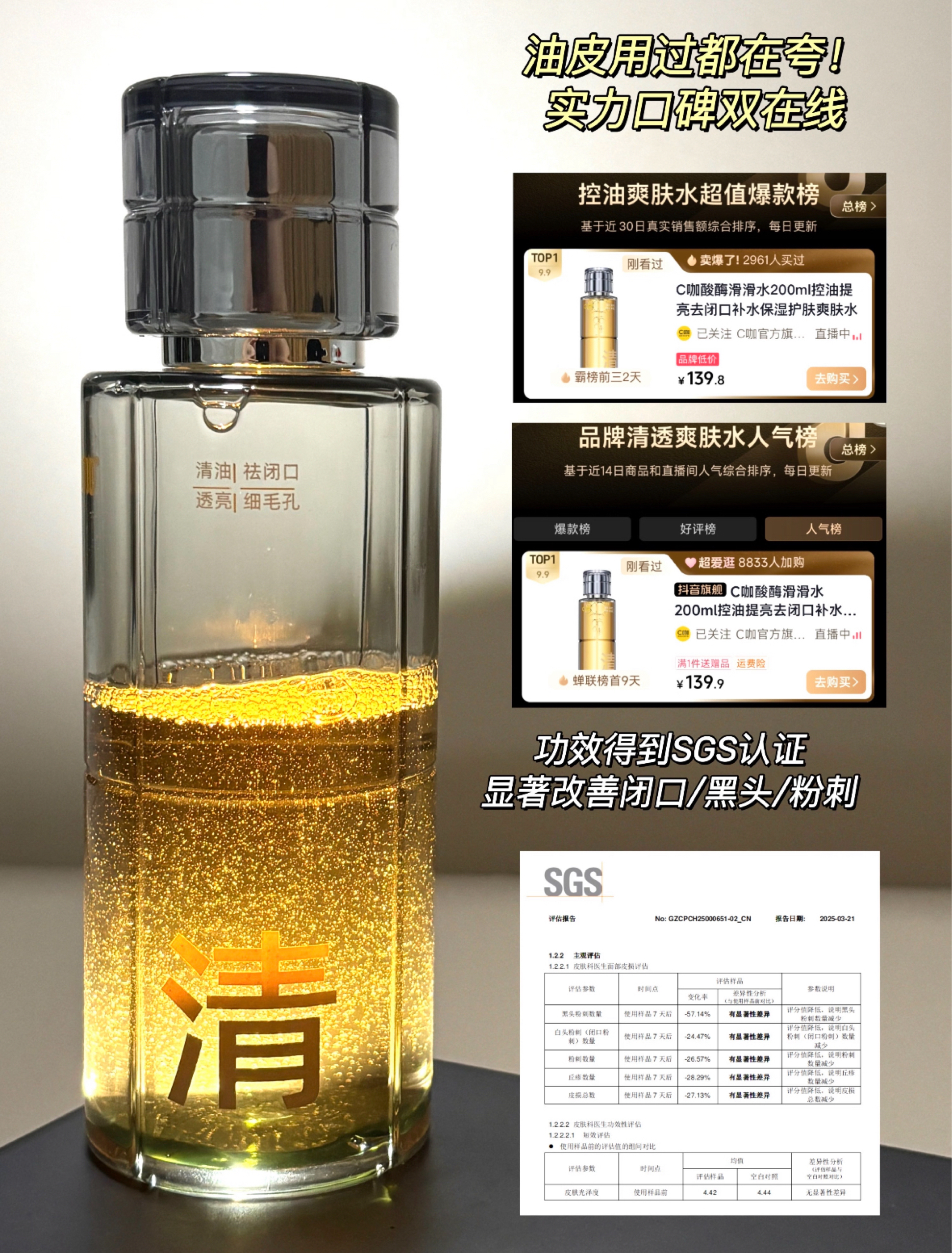 1. C咖酸酶水 特点:三酸三酶黄金配比(大小分子酸协同),外剥脱内养肤,搭配控油+修护成分。 使用感:水感质地,湿敷后皮肤肉眼可见光滑,闭口和油光一周内改善明显,角质代谢提速但温和不刺激。 适合肤质:油皮、混油皮、糙皮症人群(尤其适合闭口反复、毛孔粗大者),敏感肌建议先耳后测试。 笔记:“一周湿敷2-3次,闭口原地消失!酸酶协同剥脱老废角质的同时修护屏障,油皮也能养成嫩豆腐肌。” 2....
