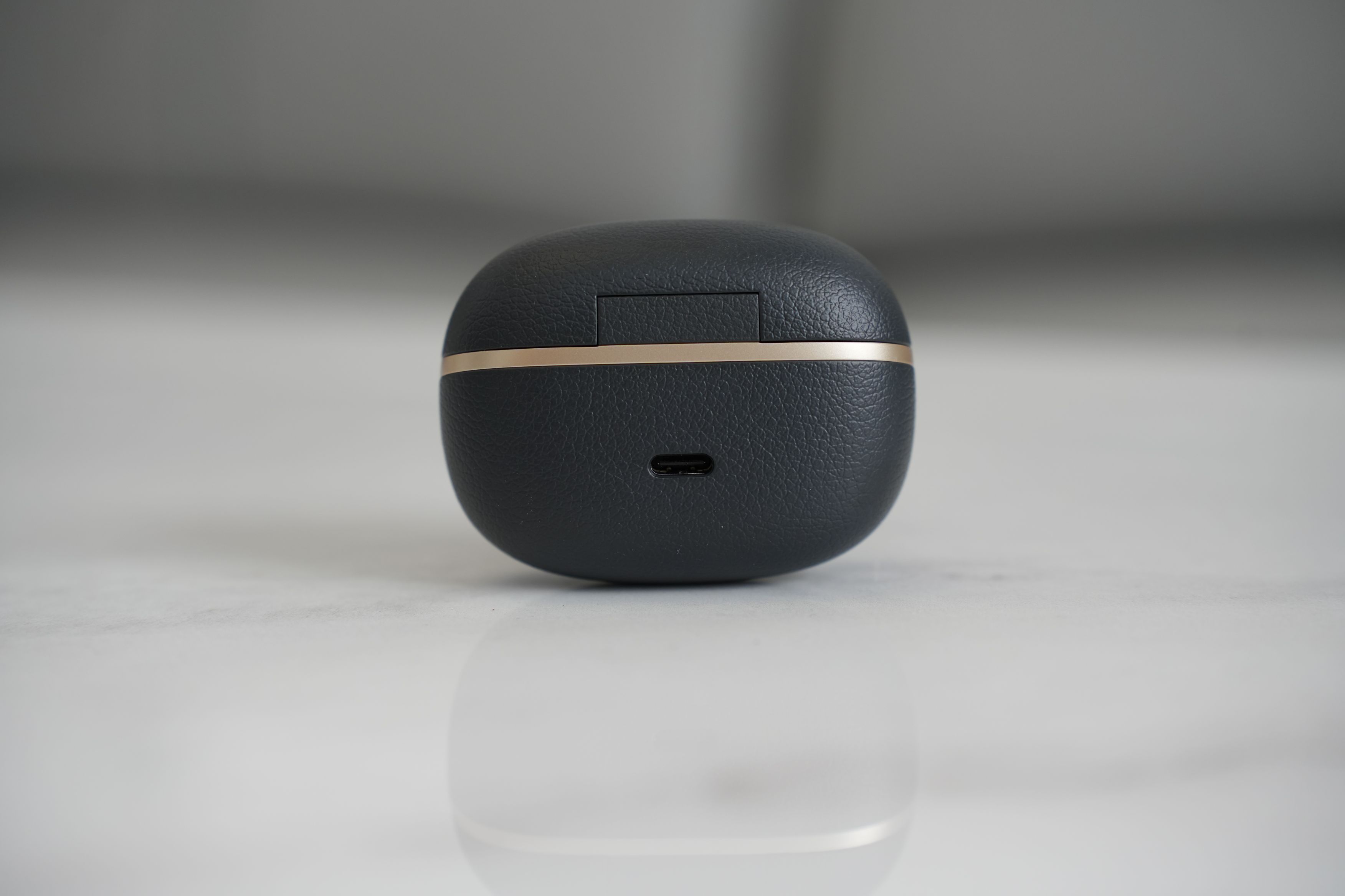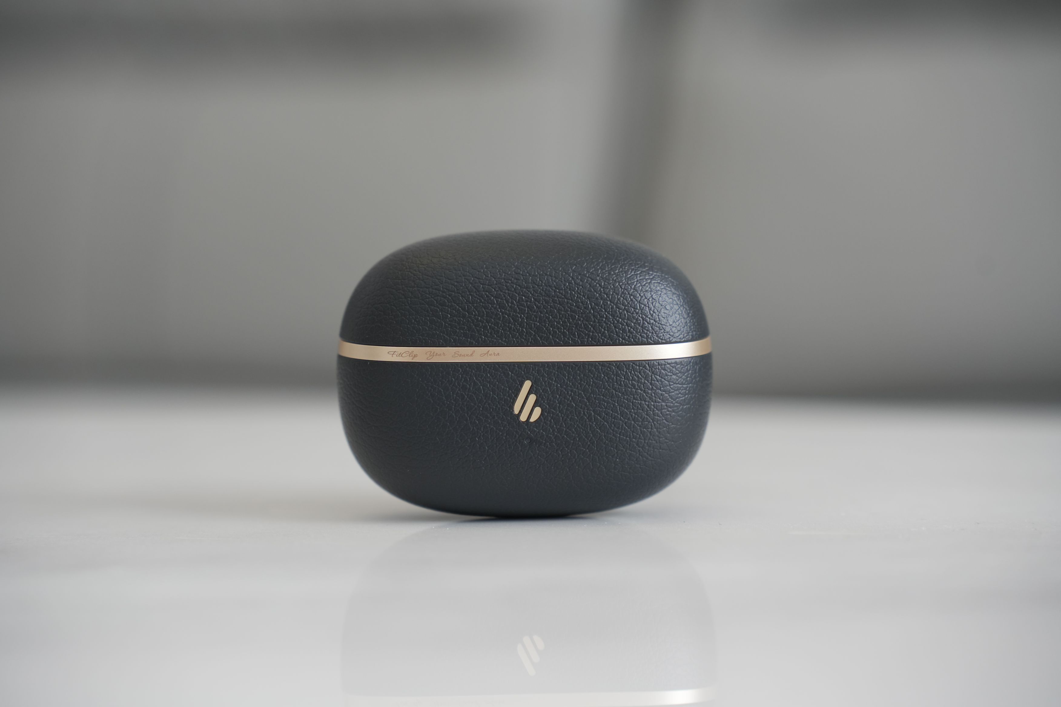 耳机上手很有质感,充电仓荔枝纹素皮设计,配合中间金色的线条点缀,漫步者金标,简单高级,我手里这款是黑色,还有白色和粉色可选。